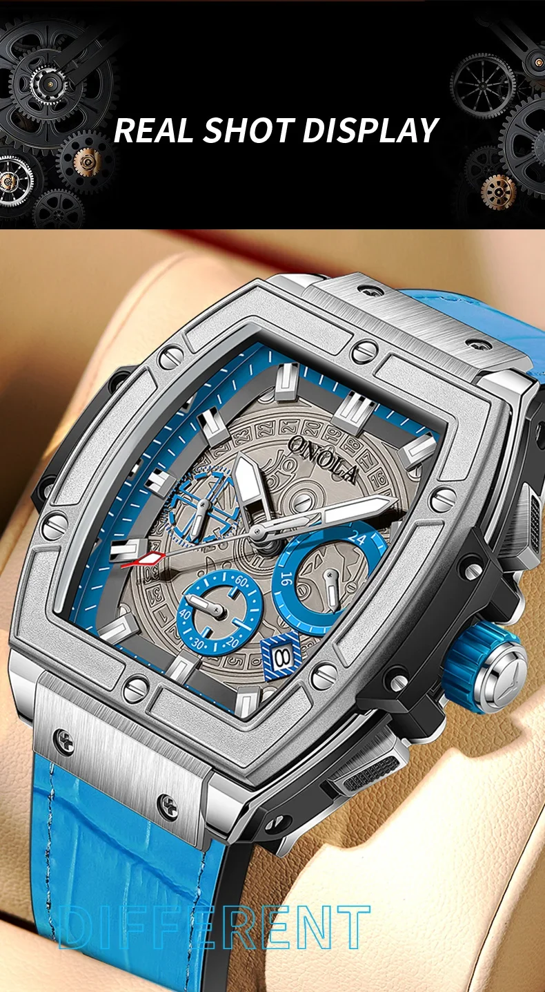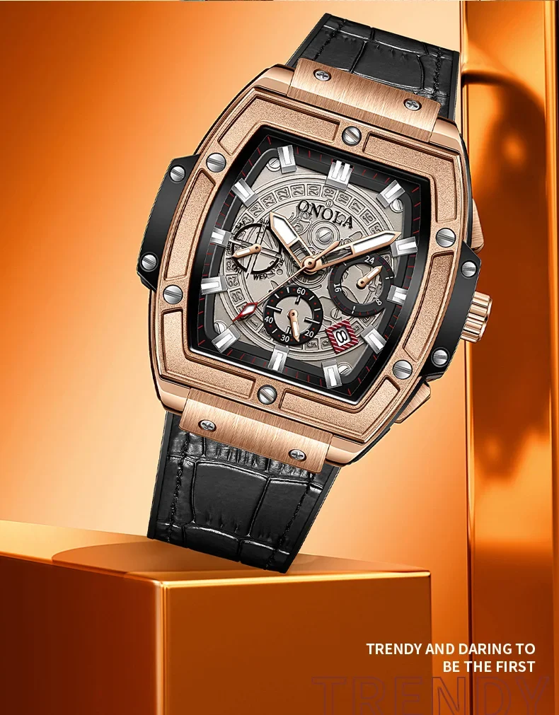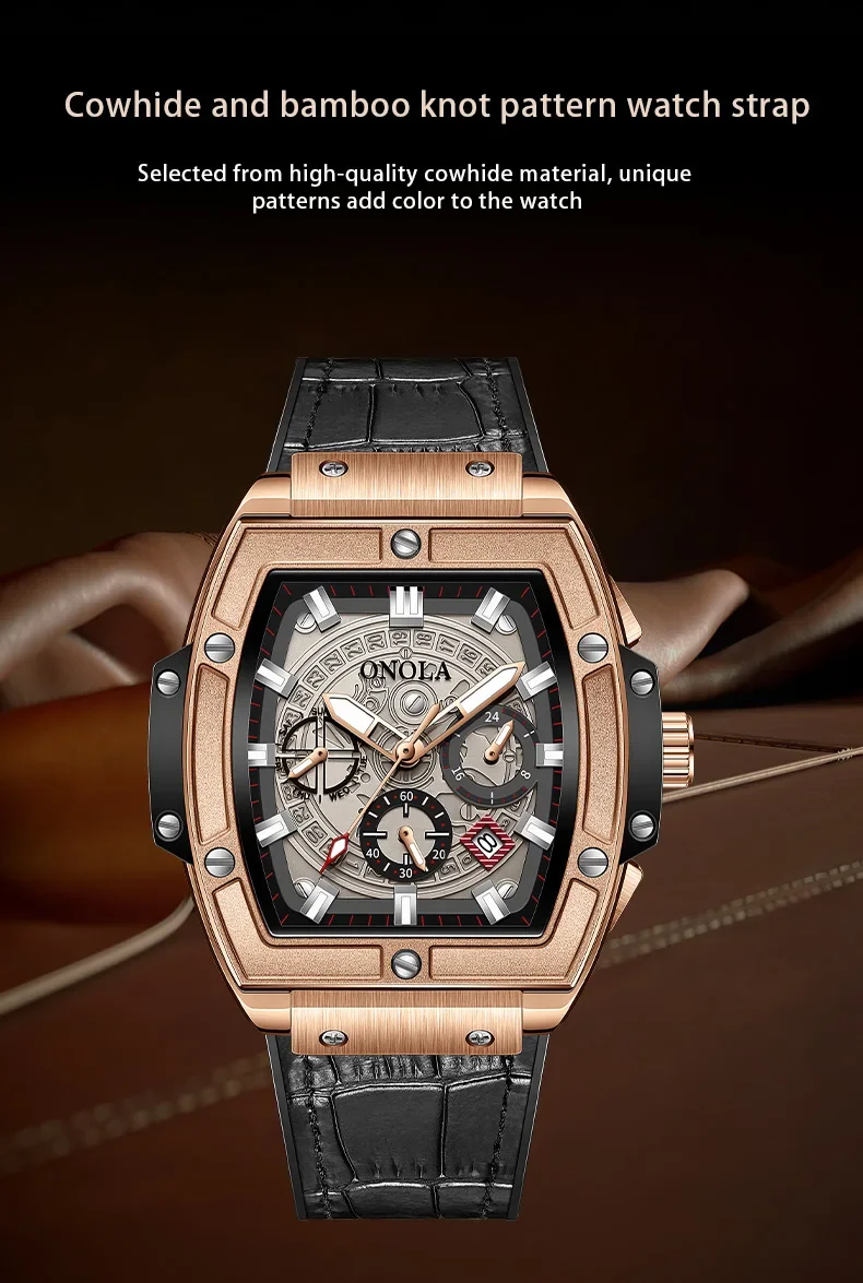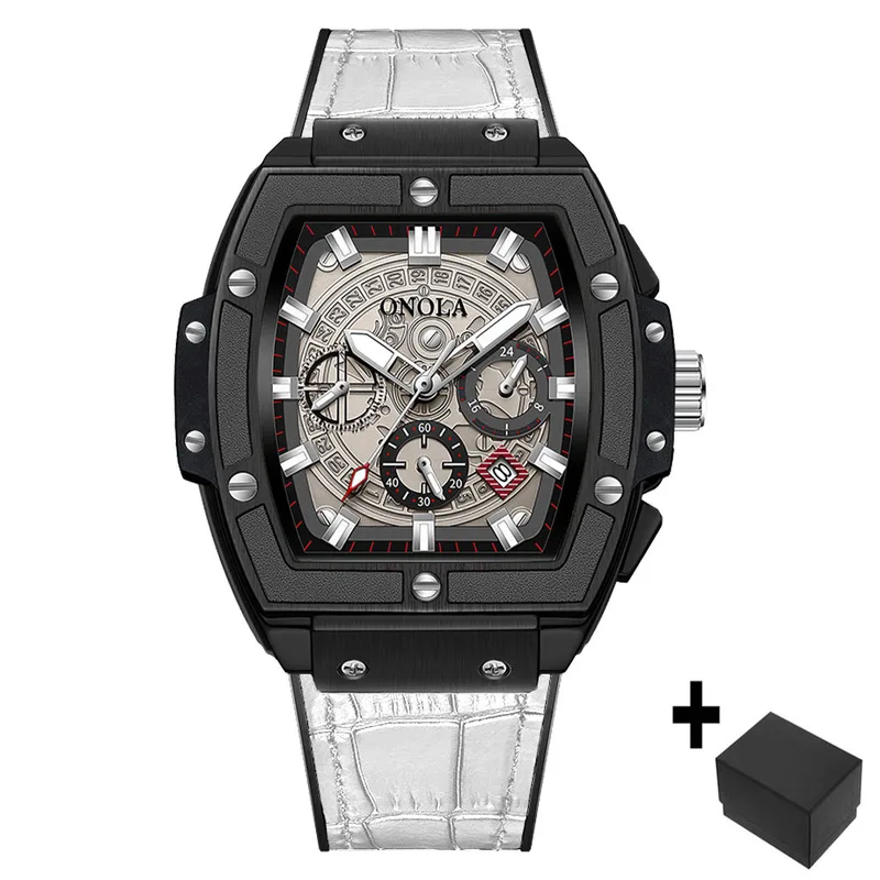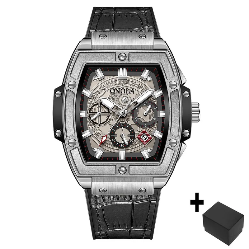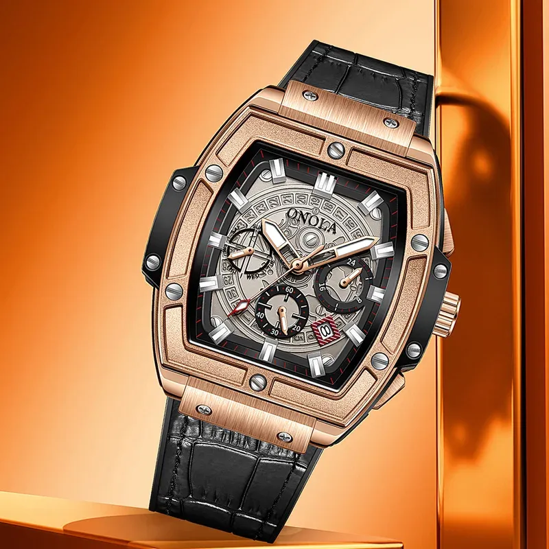 Onola casual red watch for men Sports multifunctional quartz clock fashion leather strap tonneau AAA wristwatch boy Reloj Hombre
