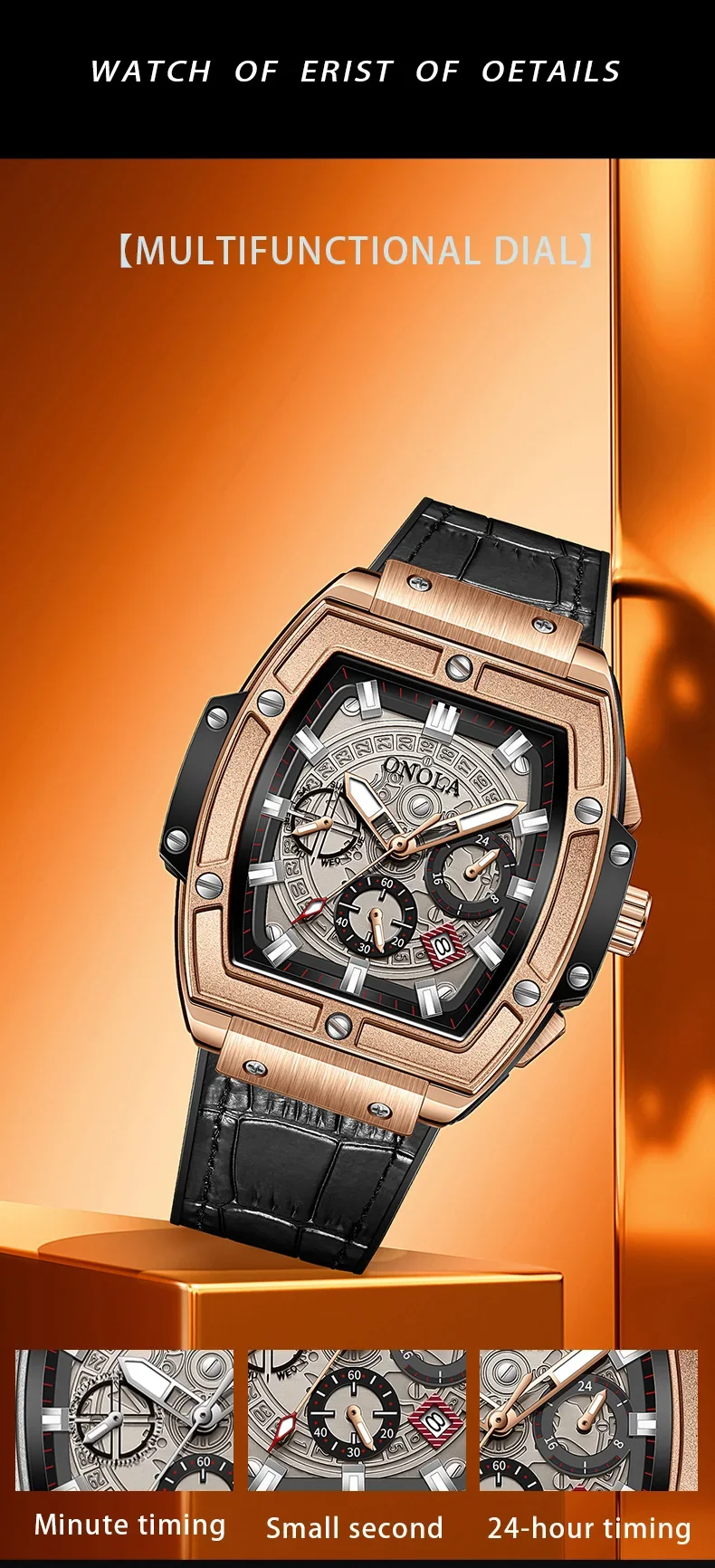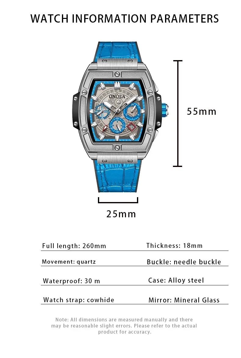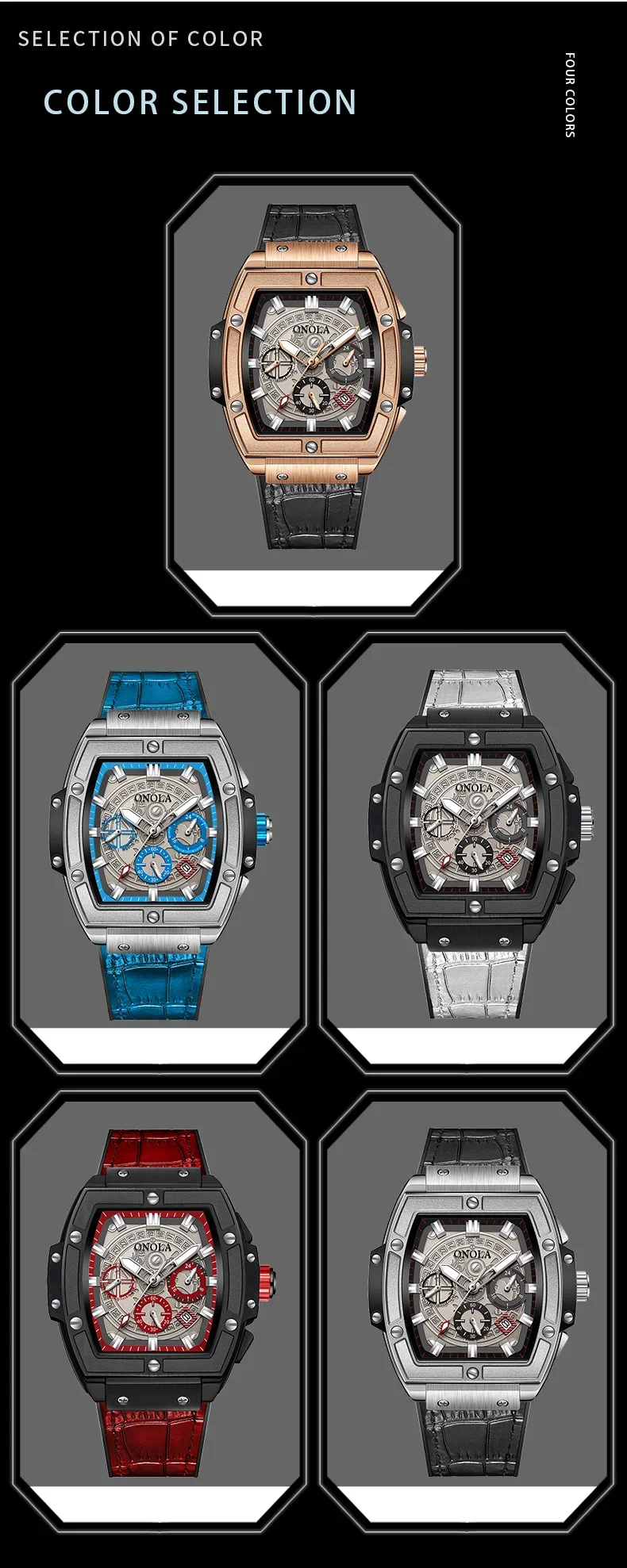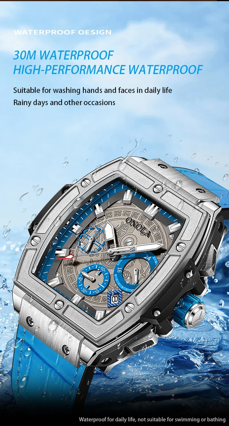 Onola casual red watch for men Sports multifunctional quartz clock fashion leather strap tonneau AAA wristwatch boy Reloj Hombre