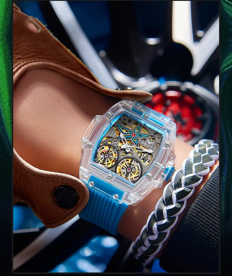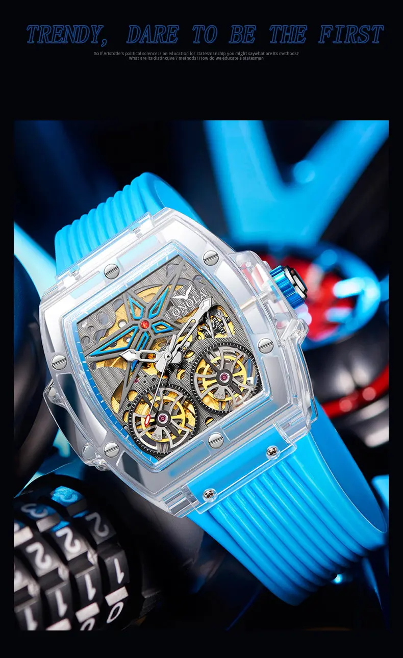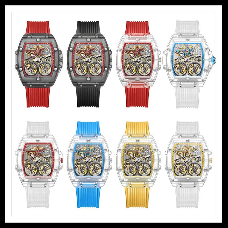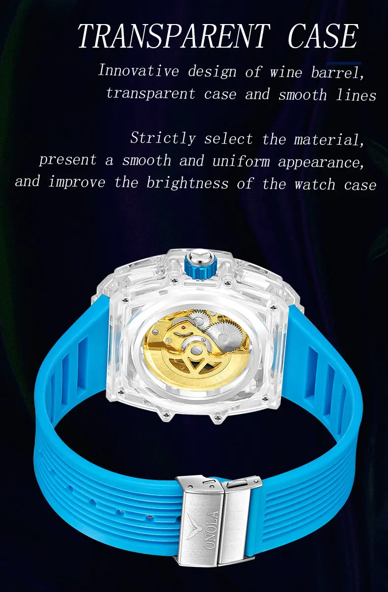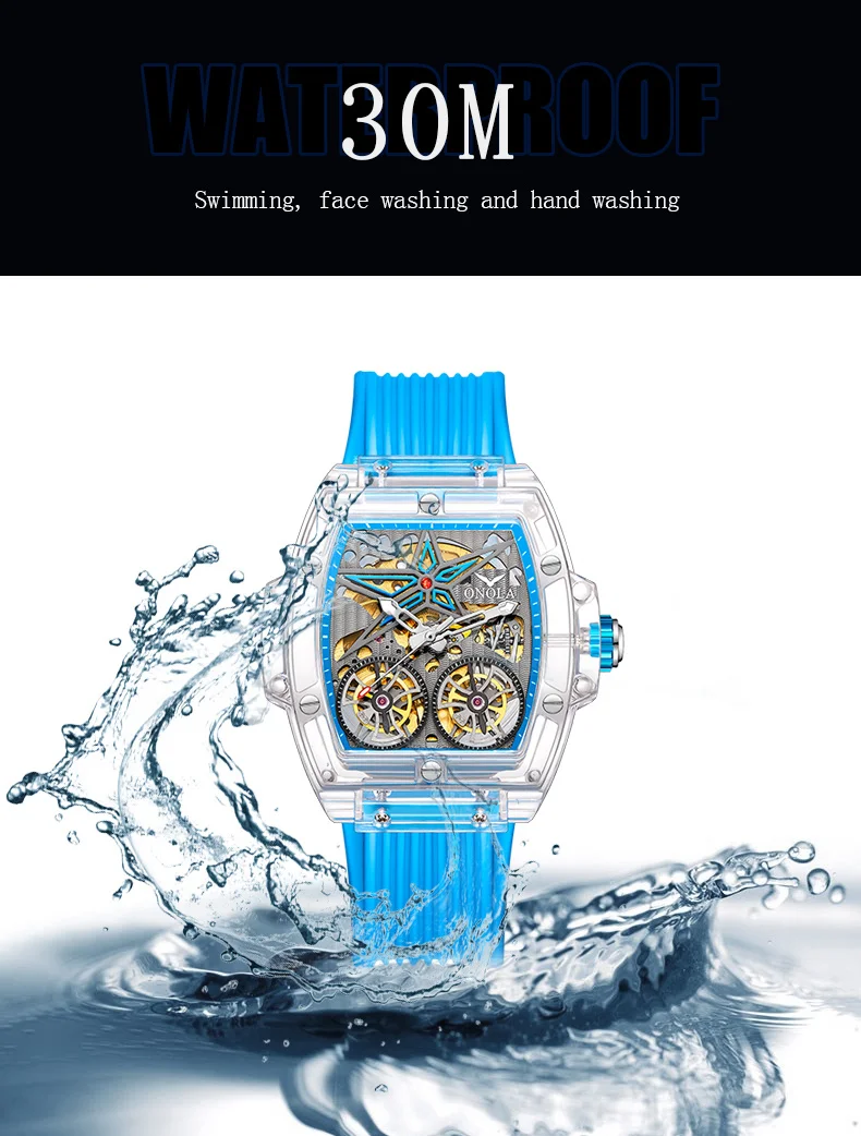 Onola watches for men double tourbillon transparent case waterproof automatic mechanical silicone tape Mens Watch montre Homme