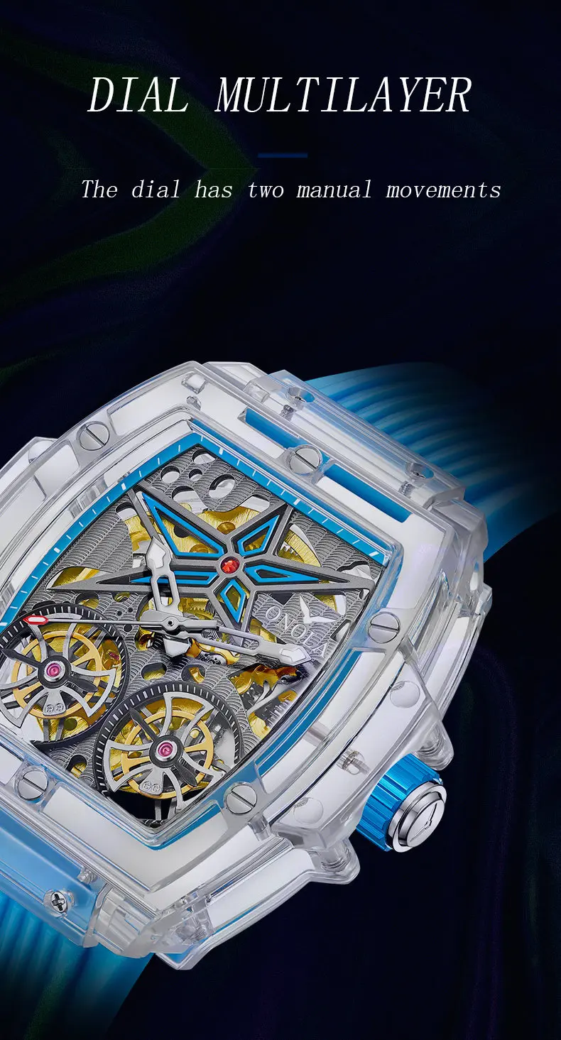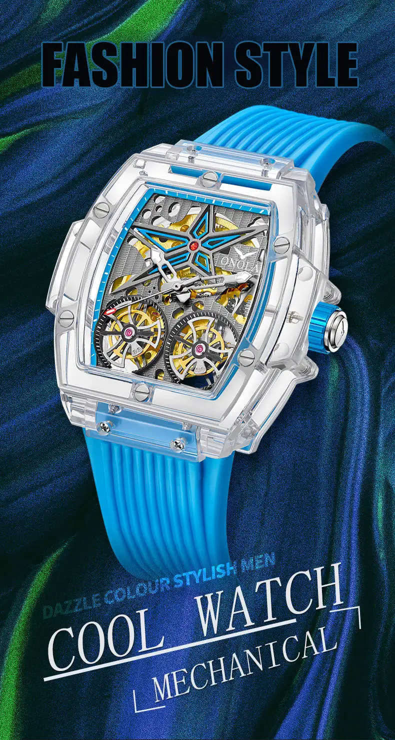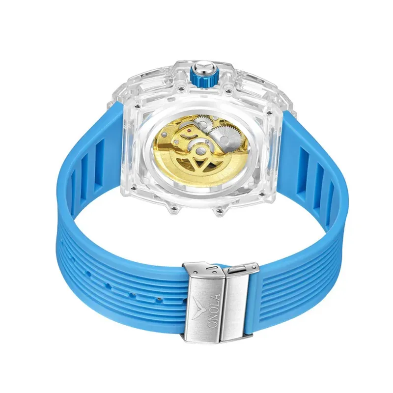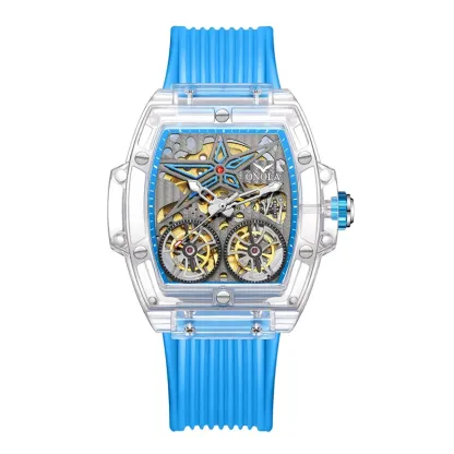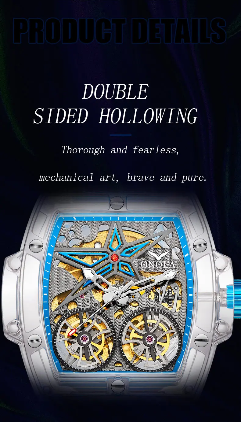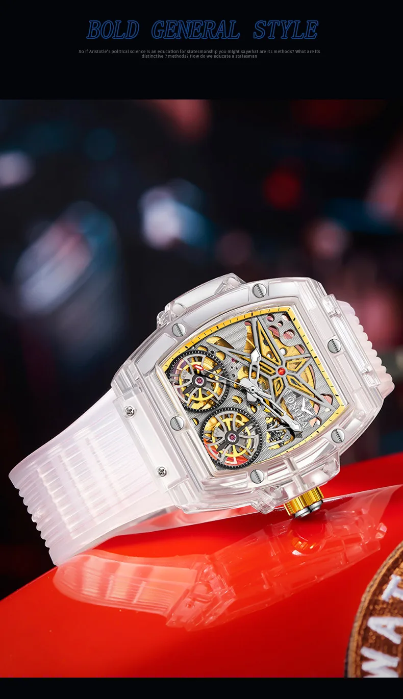 Onola watches for men double tourbillon transparent case waterproof automatic mechanical silicone tape Mens Watch montre Homme