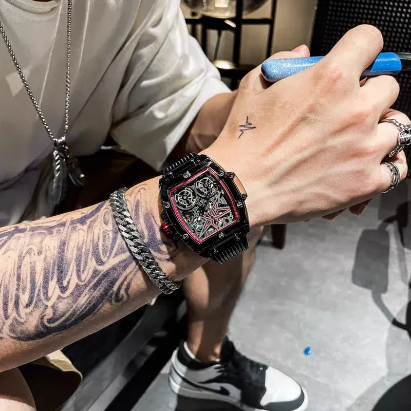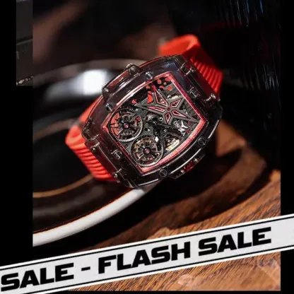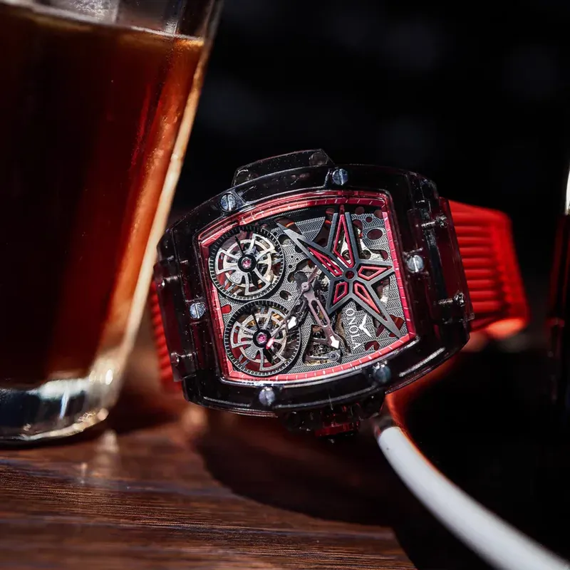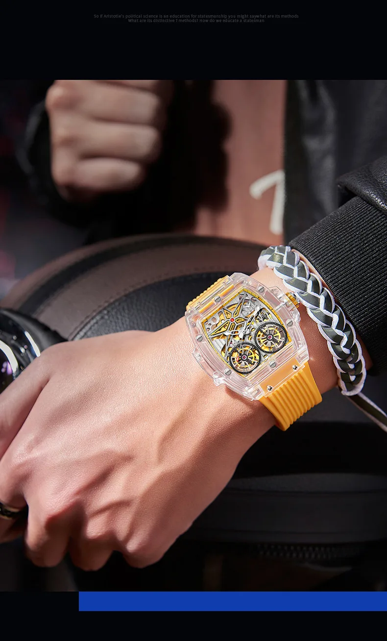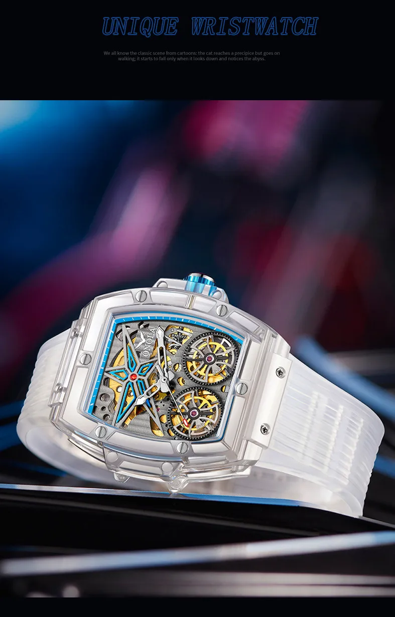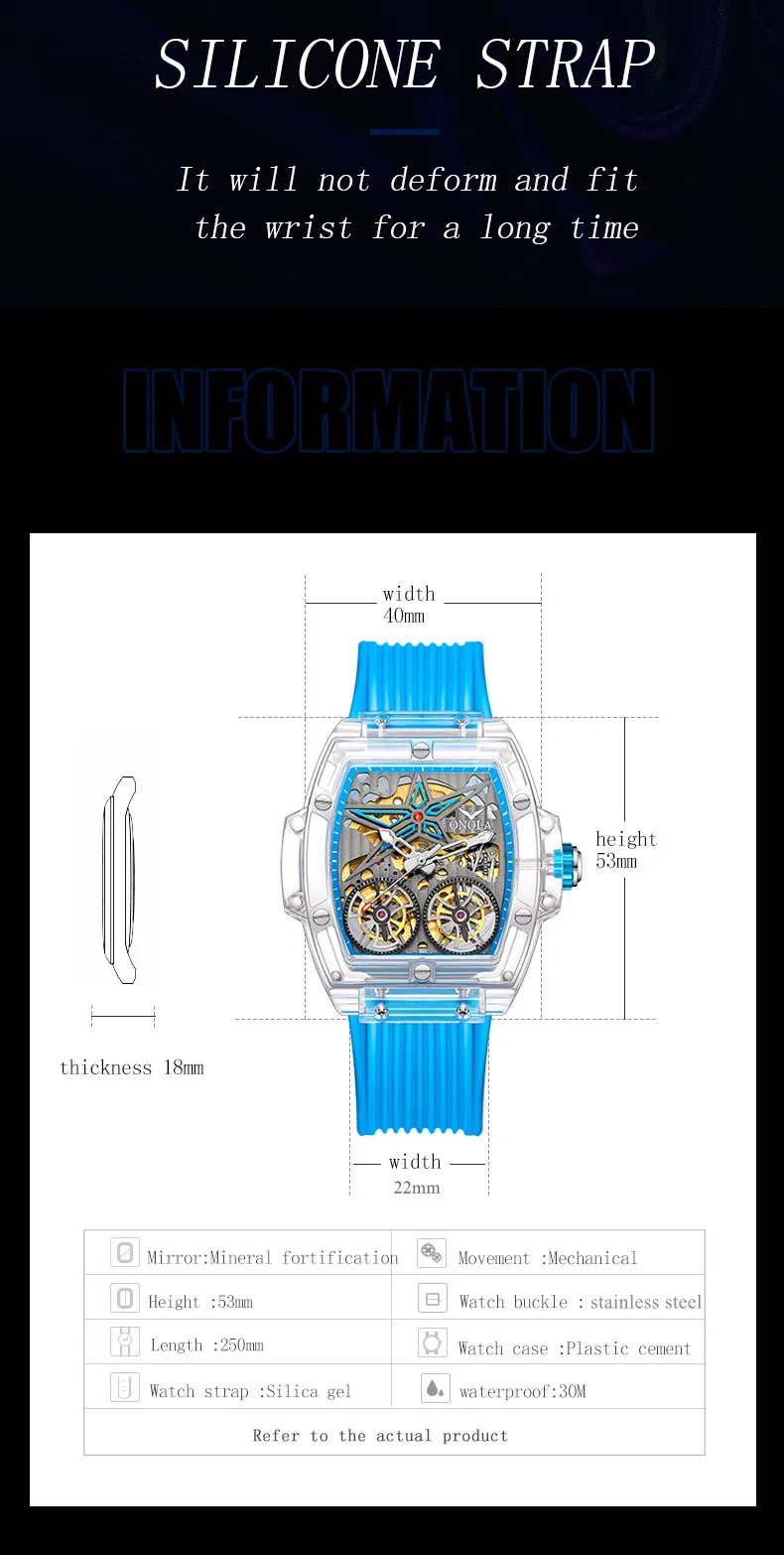 Onola watches for men double tourbillon transparent case waterproof automatic mechanical silicone tape Mens Watch montre Homme