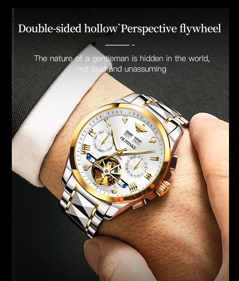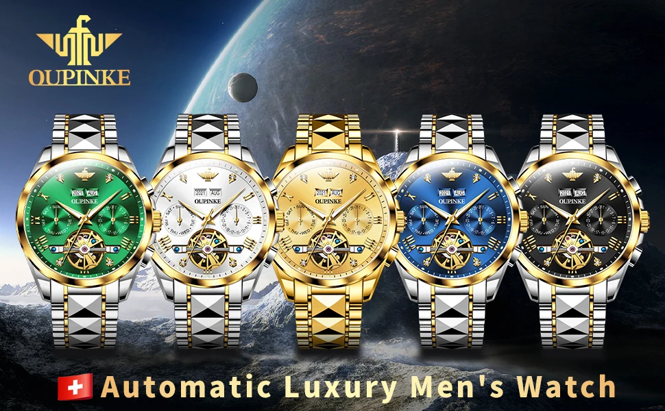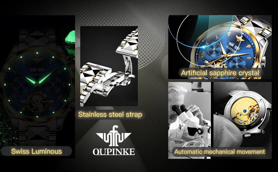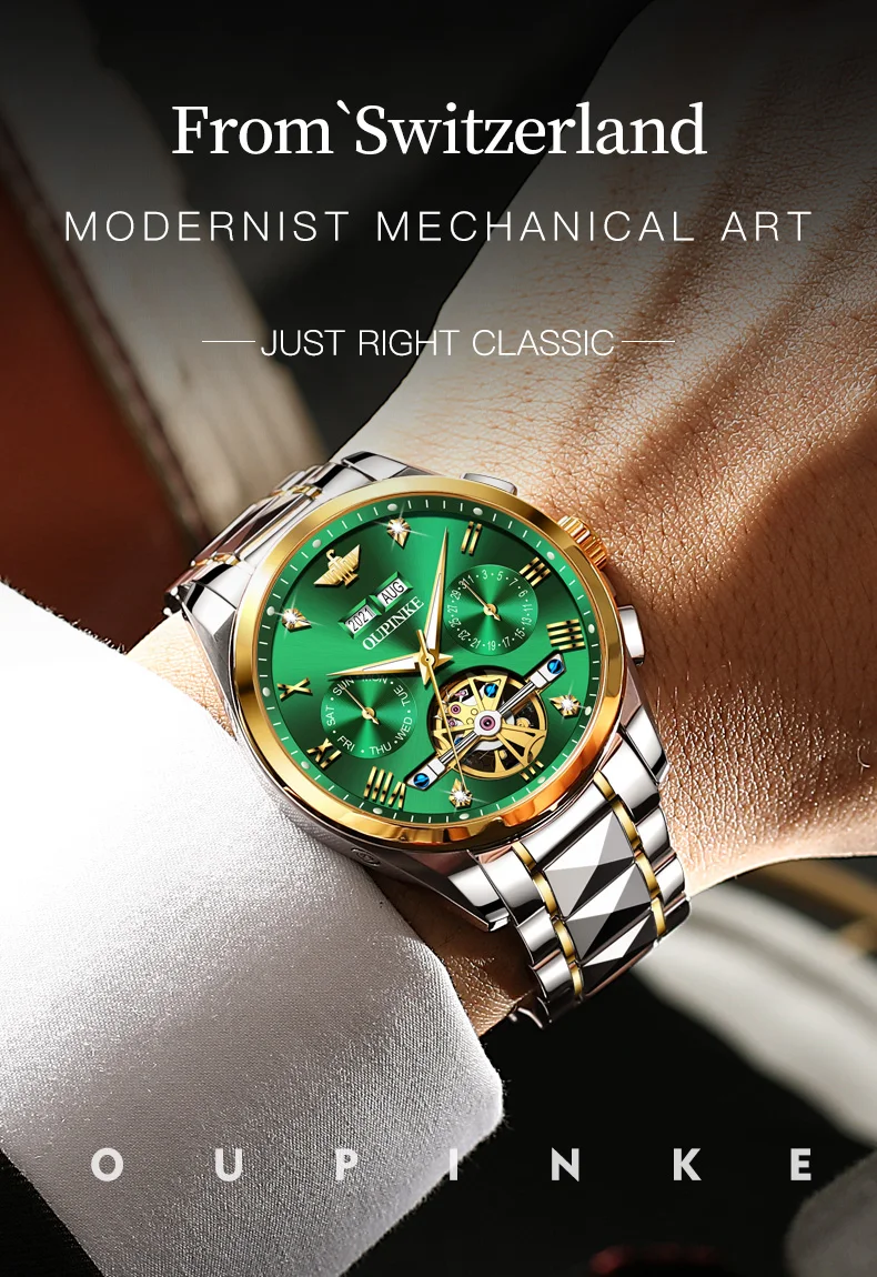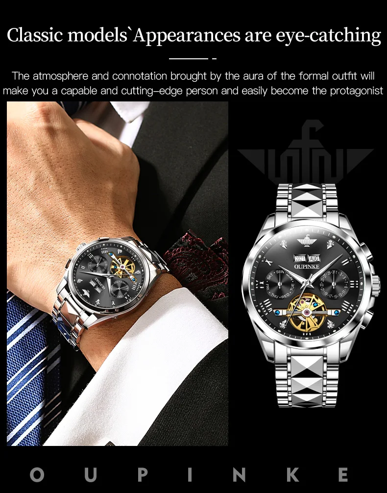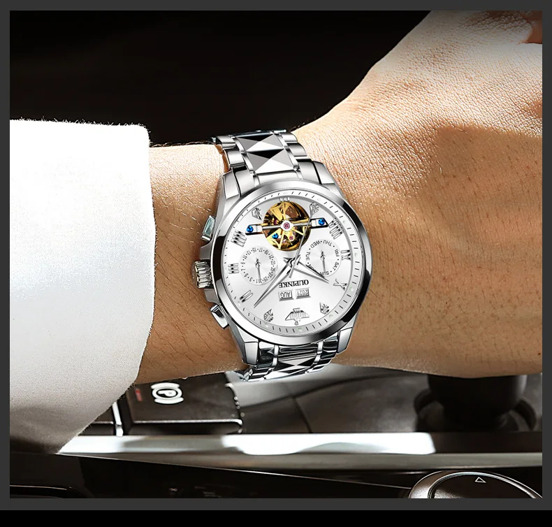 OPINKE Luxury Brand Automatic Watch Men Mechanical Tourbillon Sapphire Crystal Tungsten Steel Skeleton Waterproof Wrist Watches