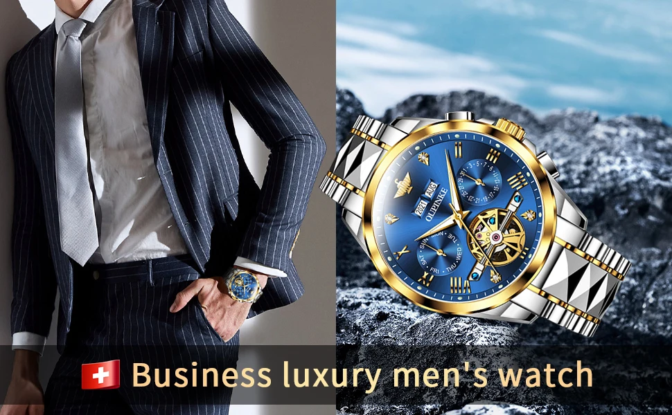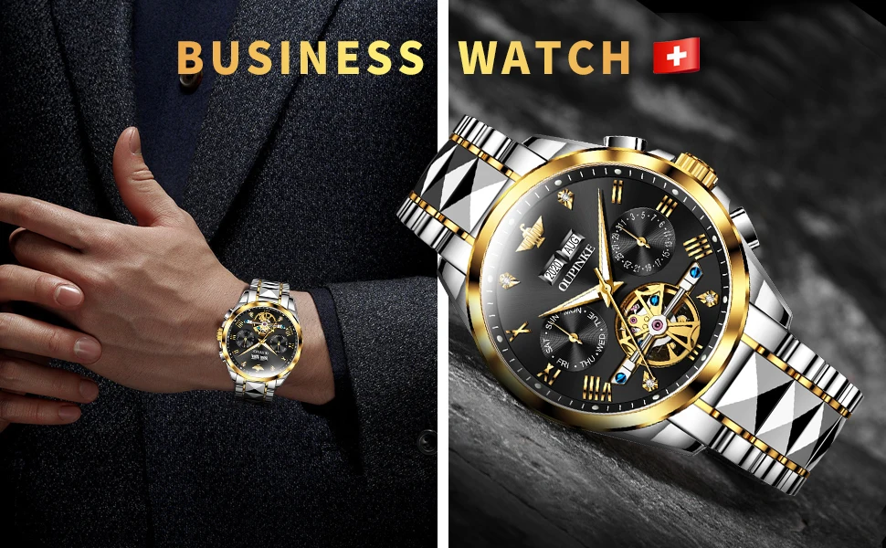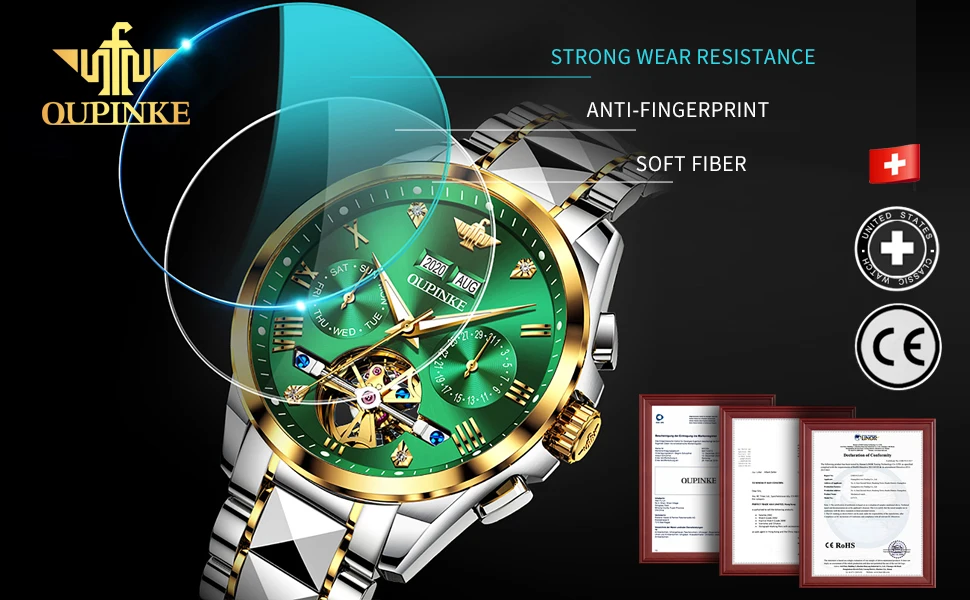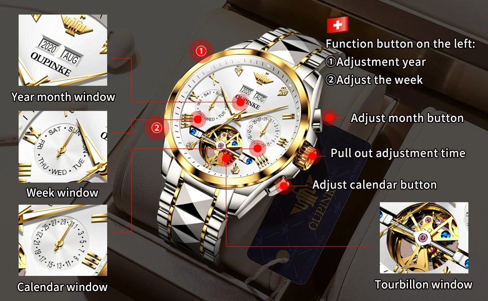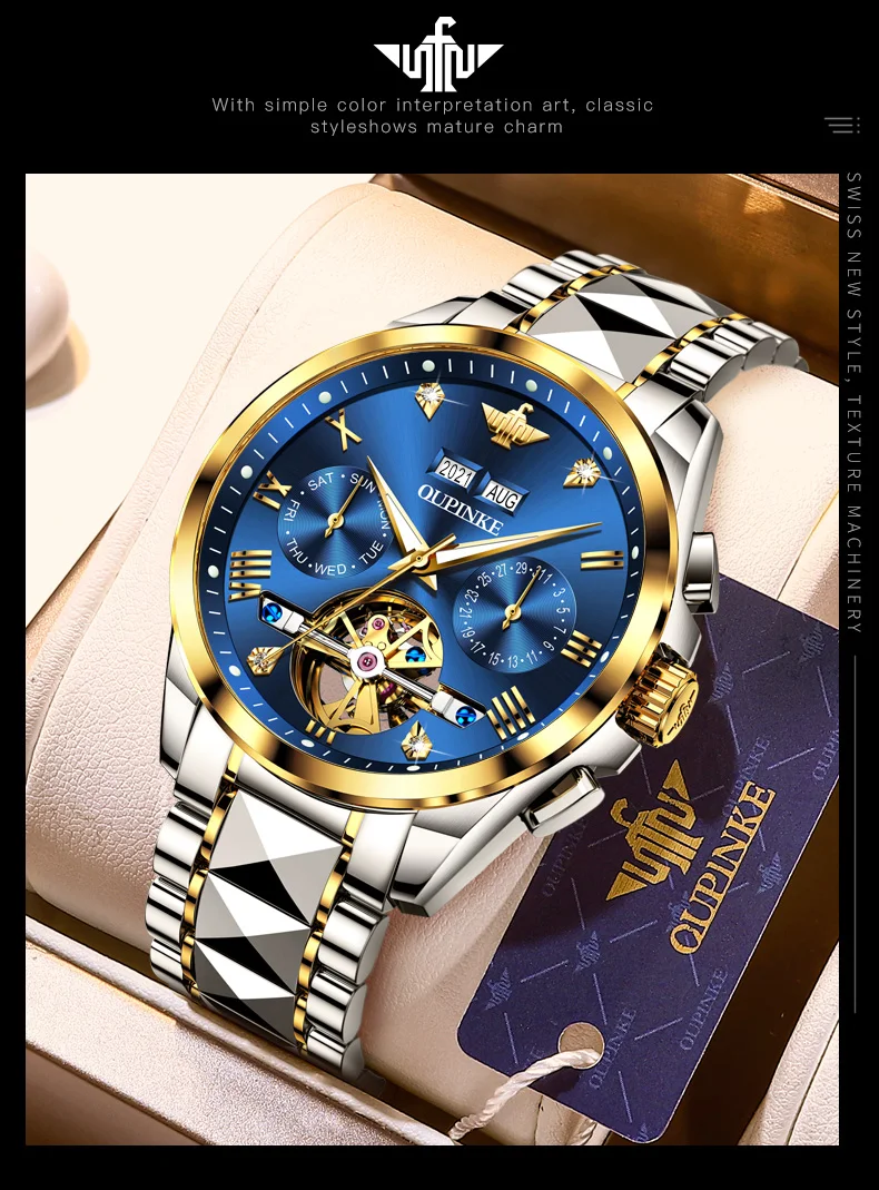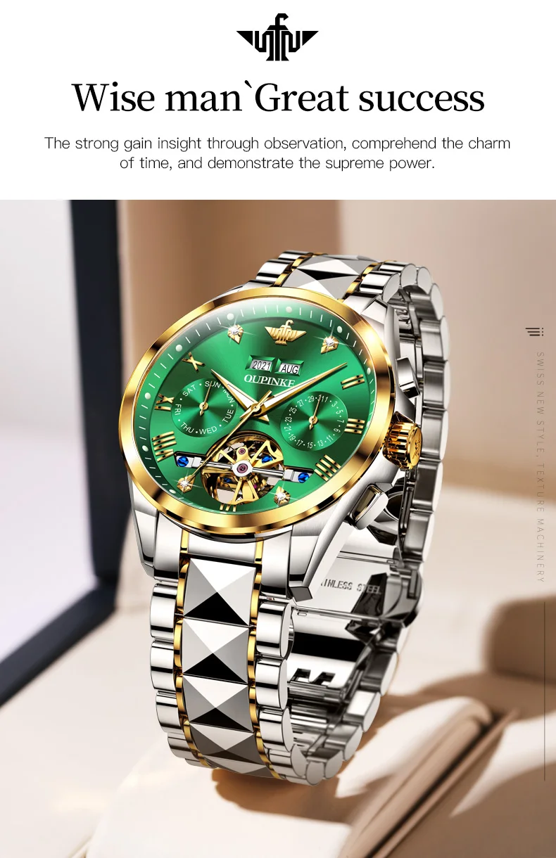 OPINKE Luxury Brand Automatic Watch Men Mechanical Tourbillon Sapphire Crystal Tungsten Steel Skeleton Waterproof Wrist Watches