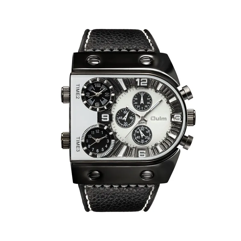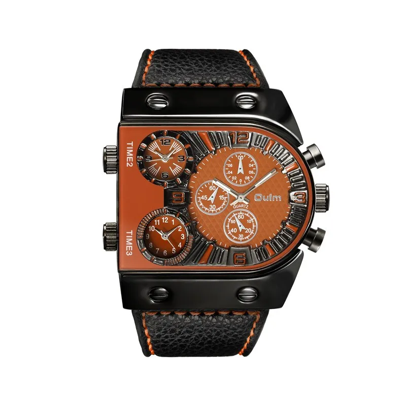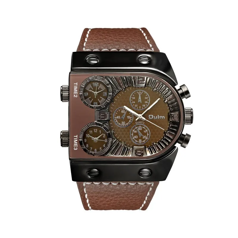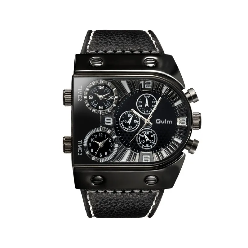 Oulm Men's Watches Mens Quartz Casual Leather Strap Wristwatch Sports Man Multi-Time Zone Military Male Watch Clock relogios