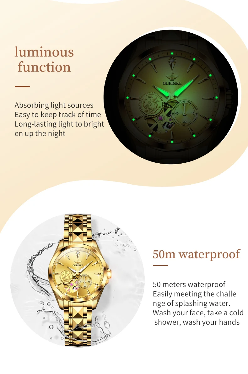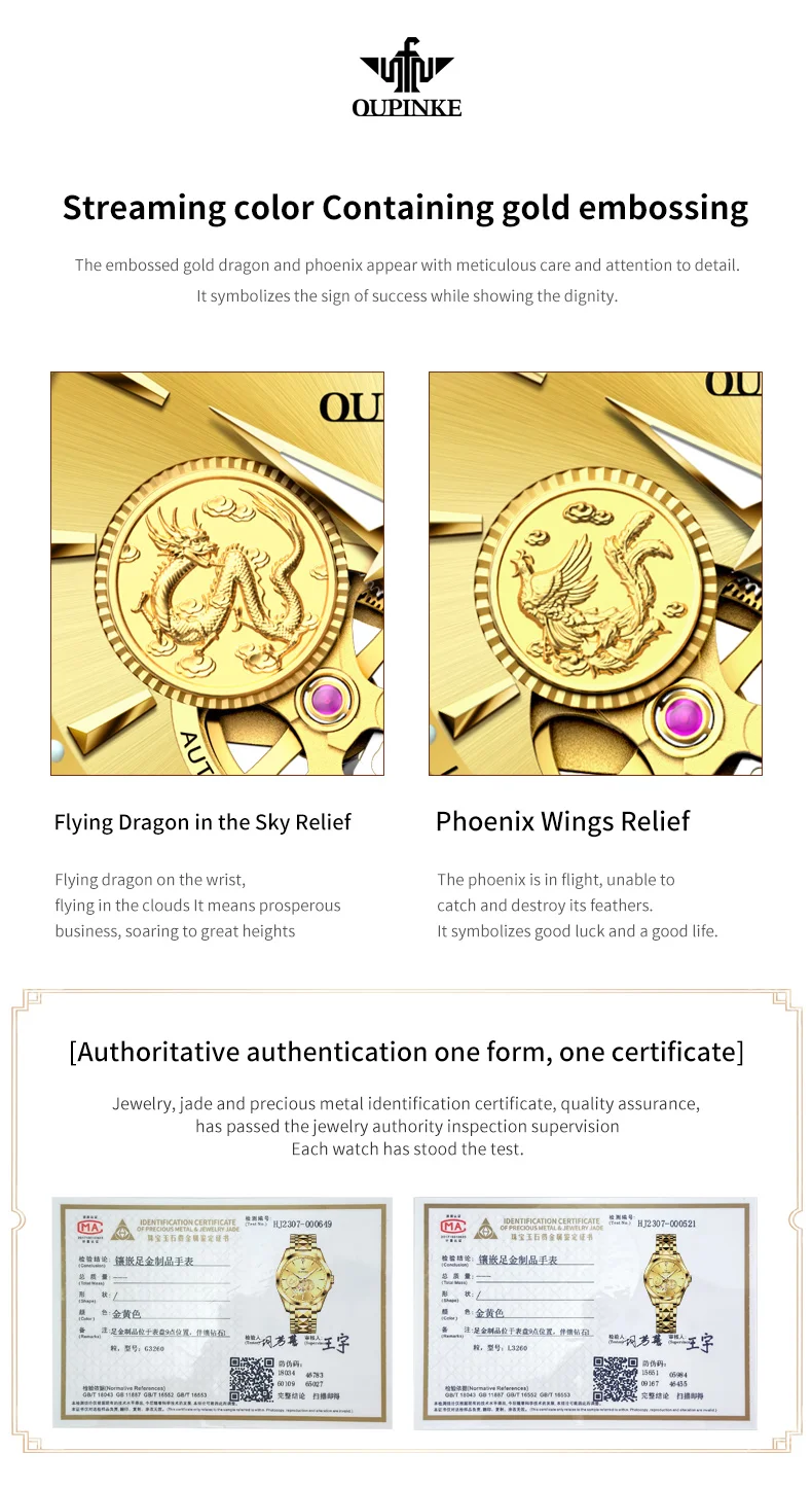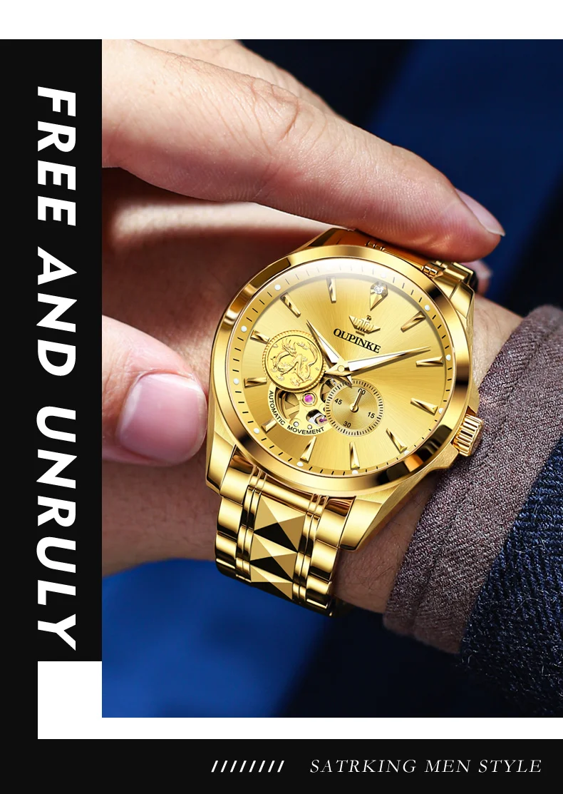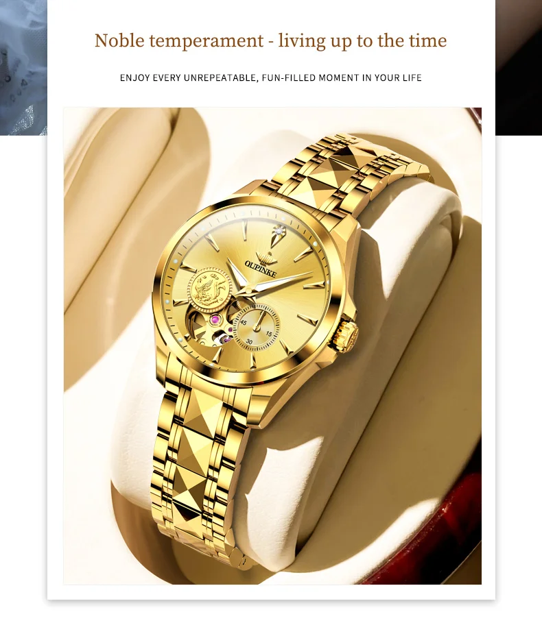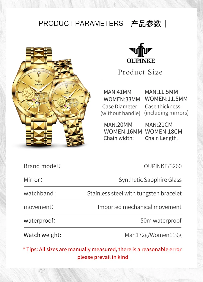 OUPINKE High Quality Couple Watch Tungsten Steel Strip True Gold Relief Dial Fully Automatic Mechanical Watch for Man and Women