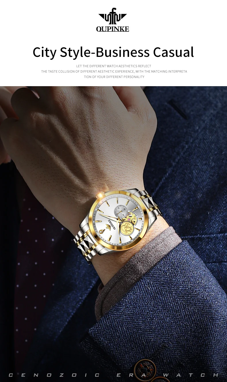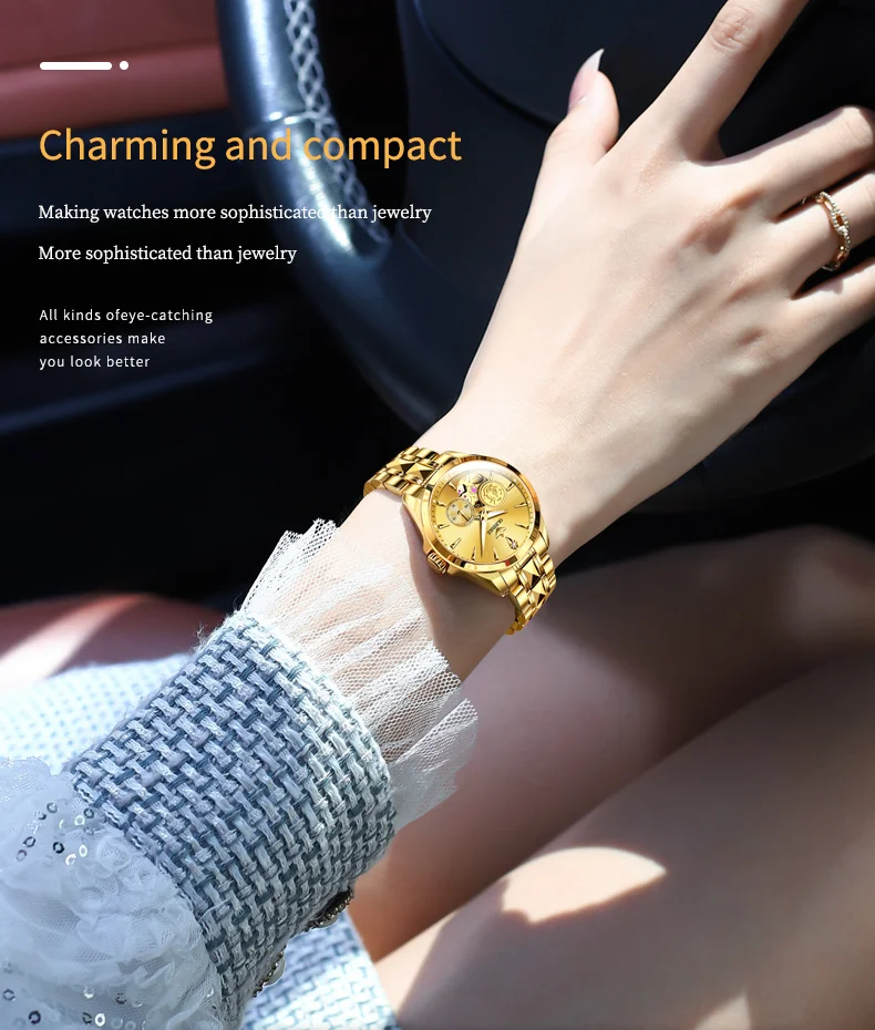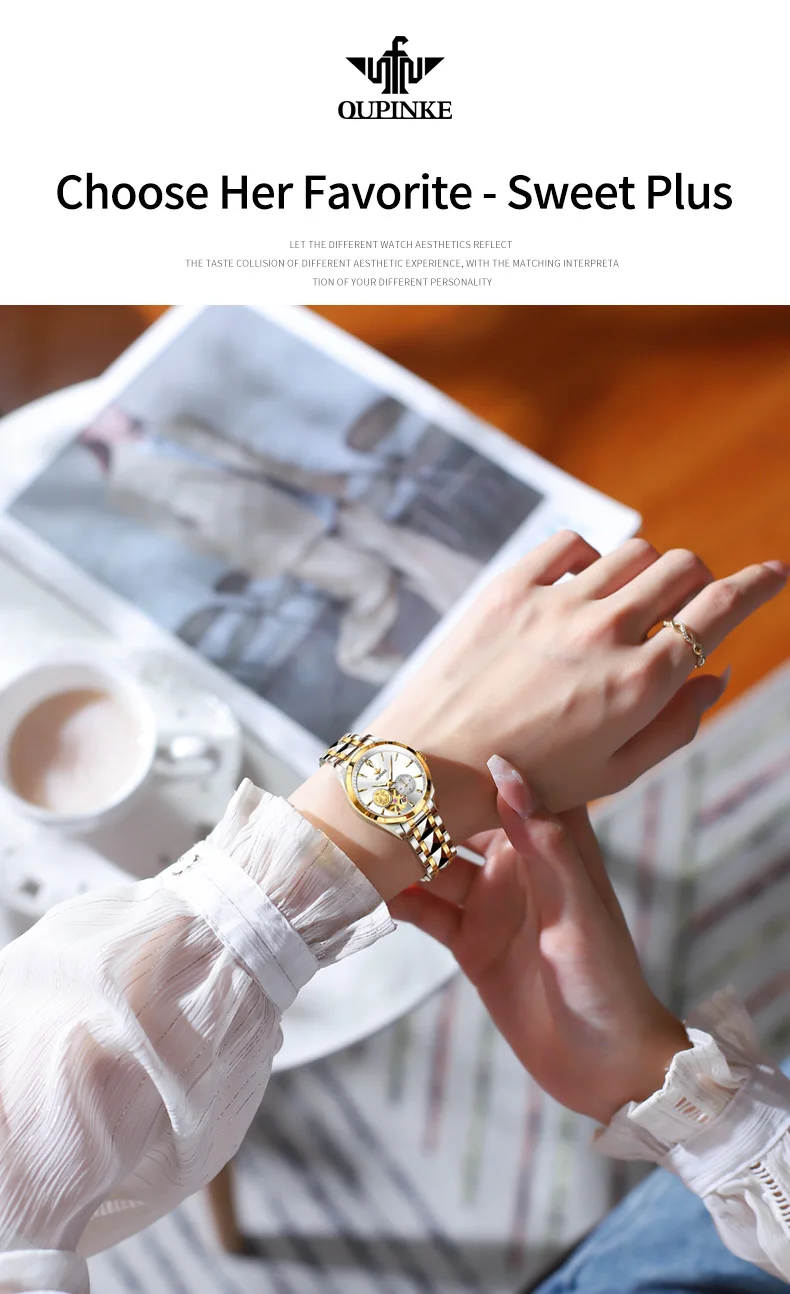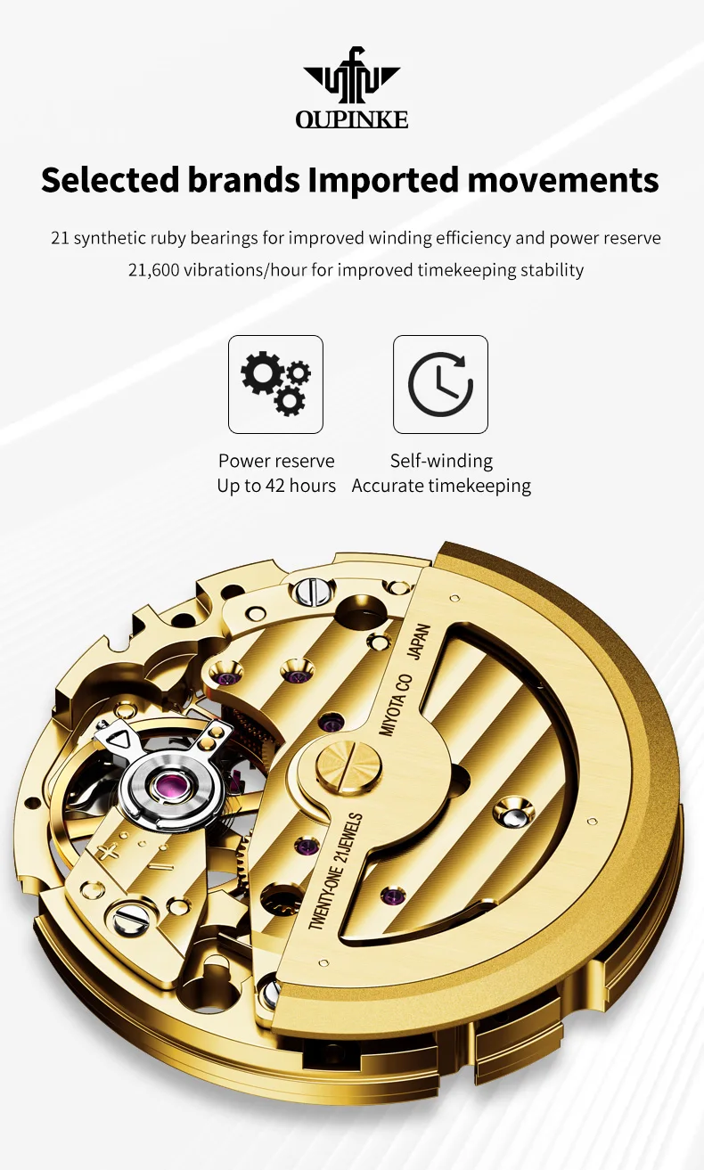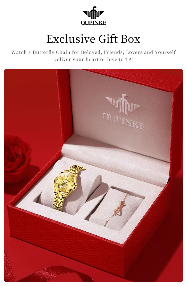 OUPINKE High Quality Couple Watch Tungsten Steel Strip True Gold Relief Dial Fully Automatic Mechanical Watch for Man and Women