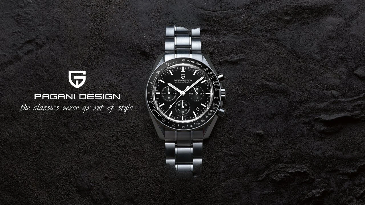 PAGANI DESIGN Moon Watch: PAGANI DESIGN presents the new Moonwatch, a watch that not only gives you the feeling of lightness and pleasure to operate a chronograph, but also the infinite imagination to experience an extraordinary adventure story. This watch will not give you the world, but it will give you the magnificent idea of a walk on the moon.