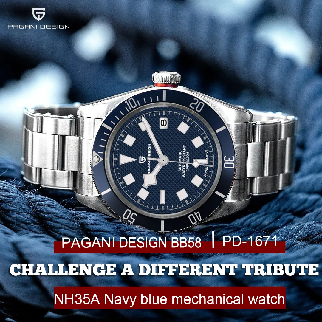 PAGANI DESIGN BB58 Automatic Watch Men Men's Watches Mechanical Watch For Men Luxury NH35 100M Waterproof Men's Watch