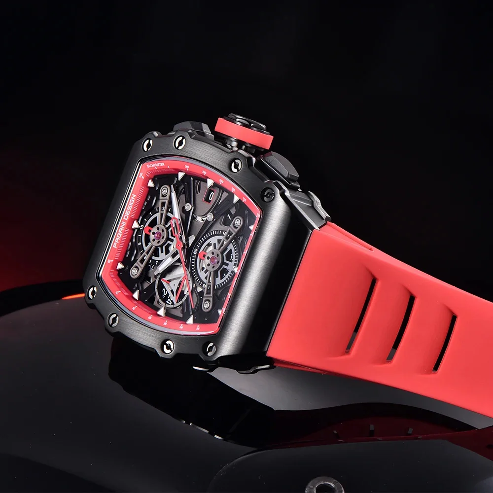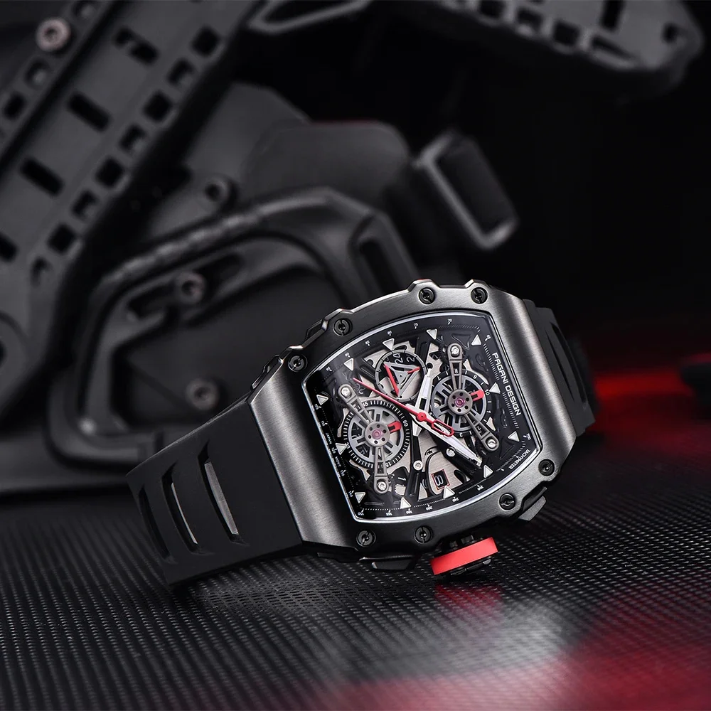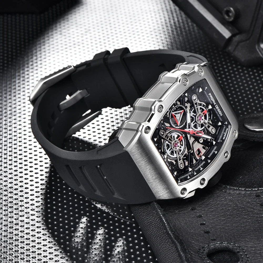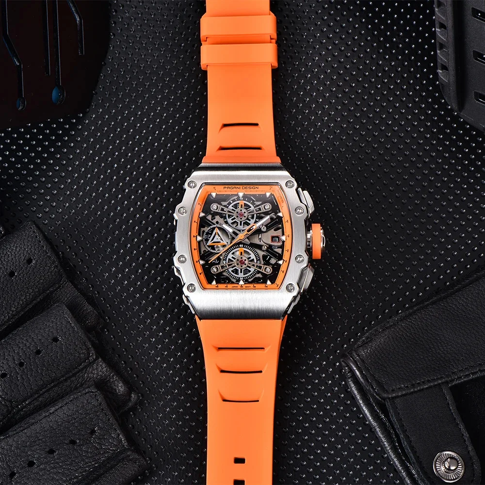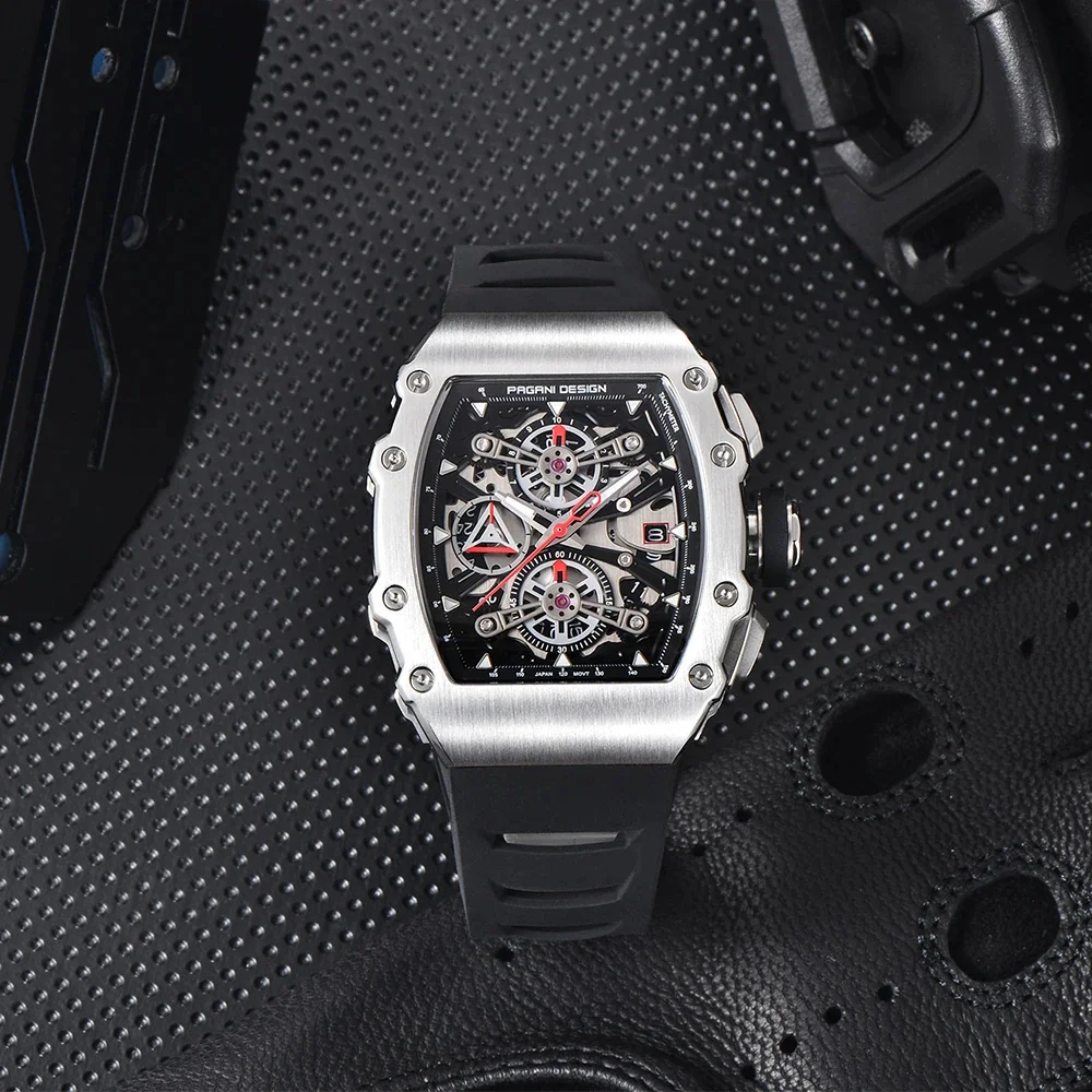Pagani Design Men's Quartz Watches Japan Movt Skeleton Dial Waterproof Sport Rectangle Sapphire Glass Chronograph Watch For Men