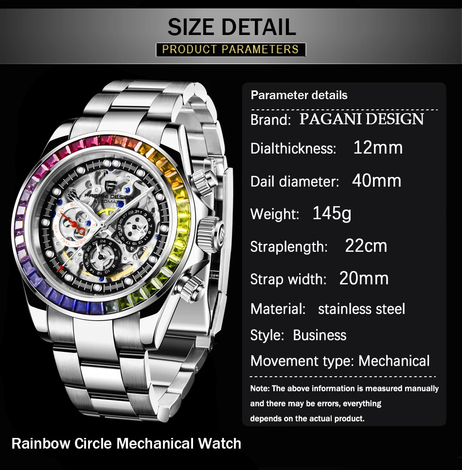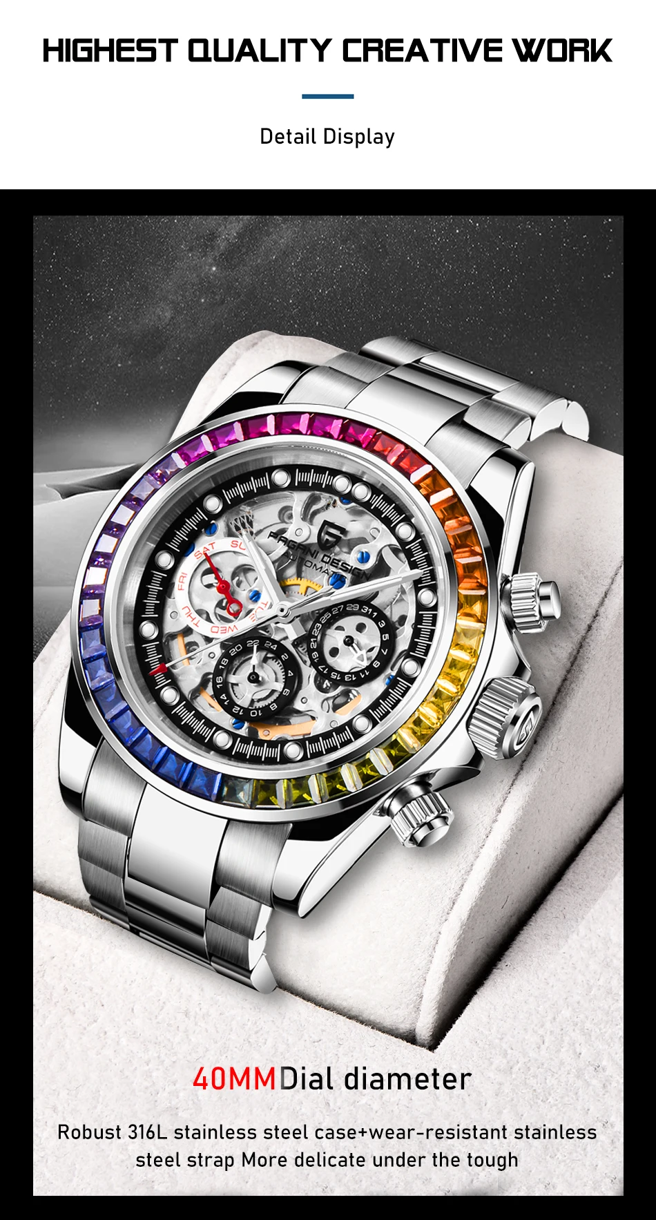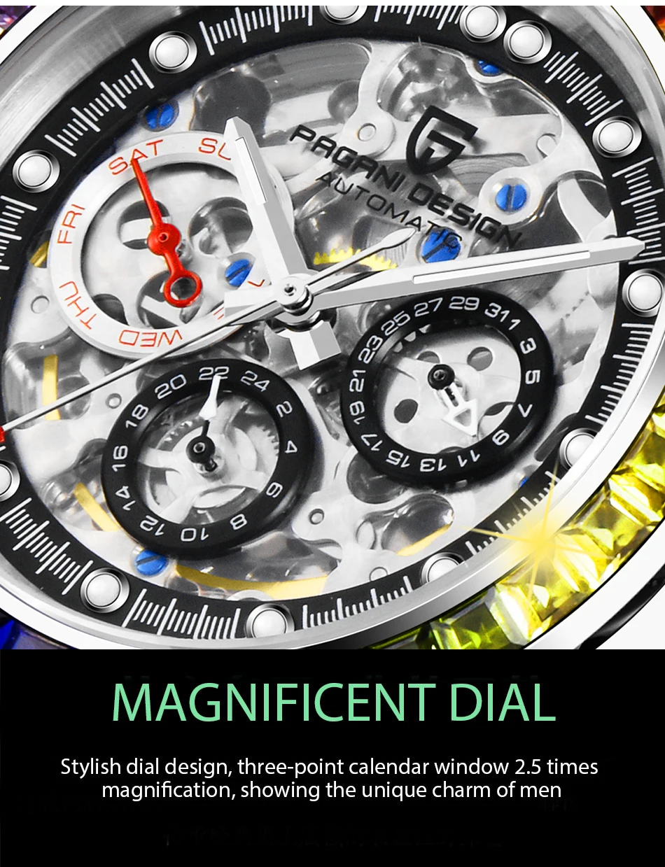 Pagani design top luxury brand mechanical automatic watch men ceramic bezel Rainbow business waterproof watch Relogio Masculino