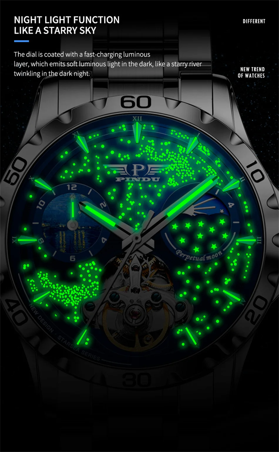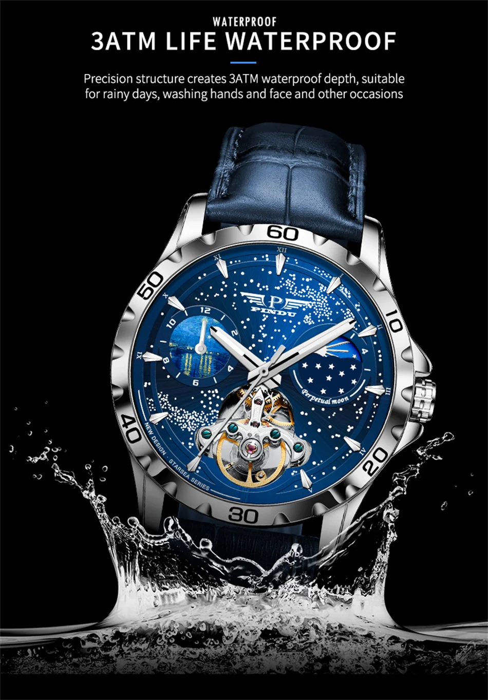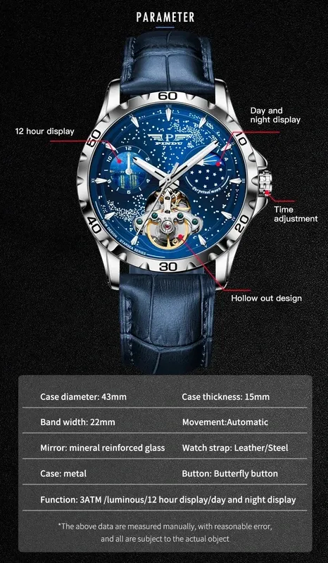 PDU design mens watches top brand luxury fashion business automatic watch men's waterproof mechanical watch montre Homme