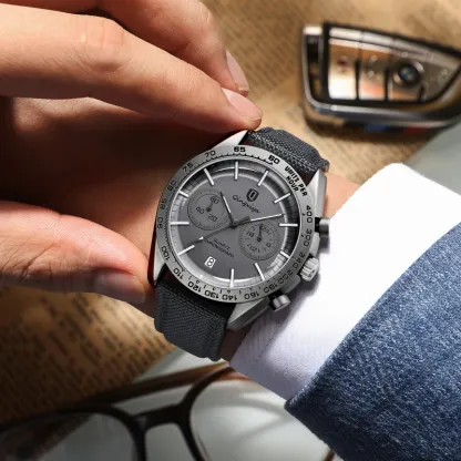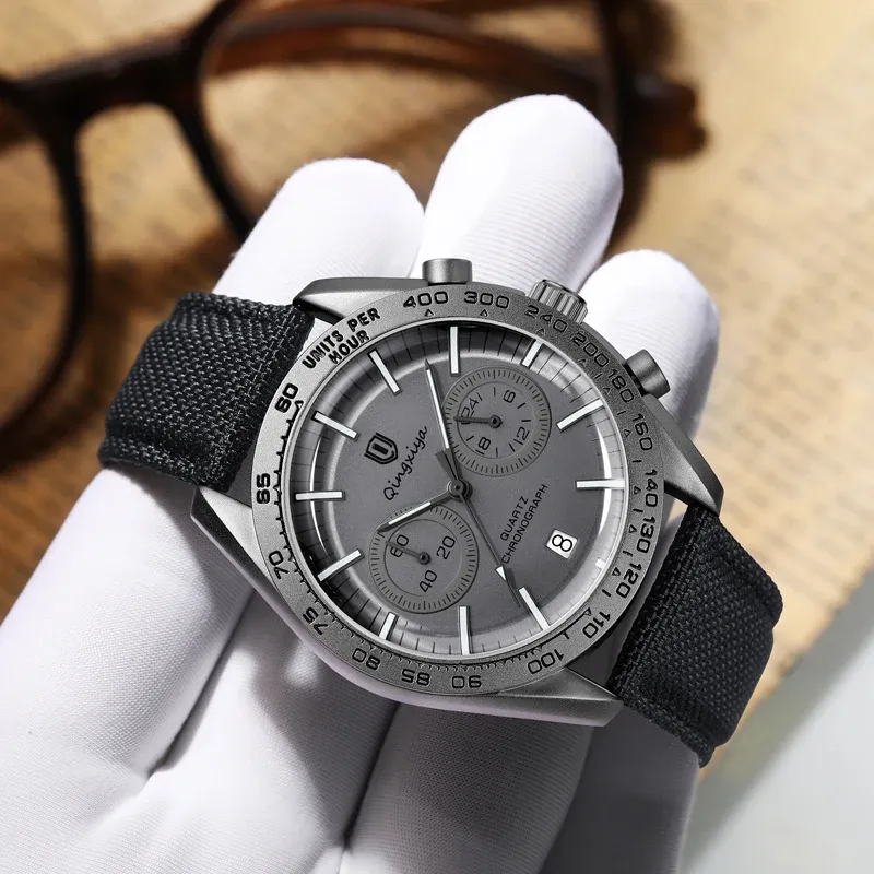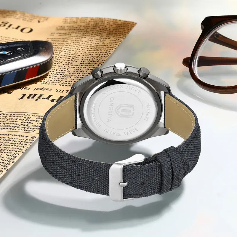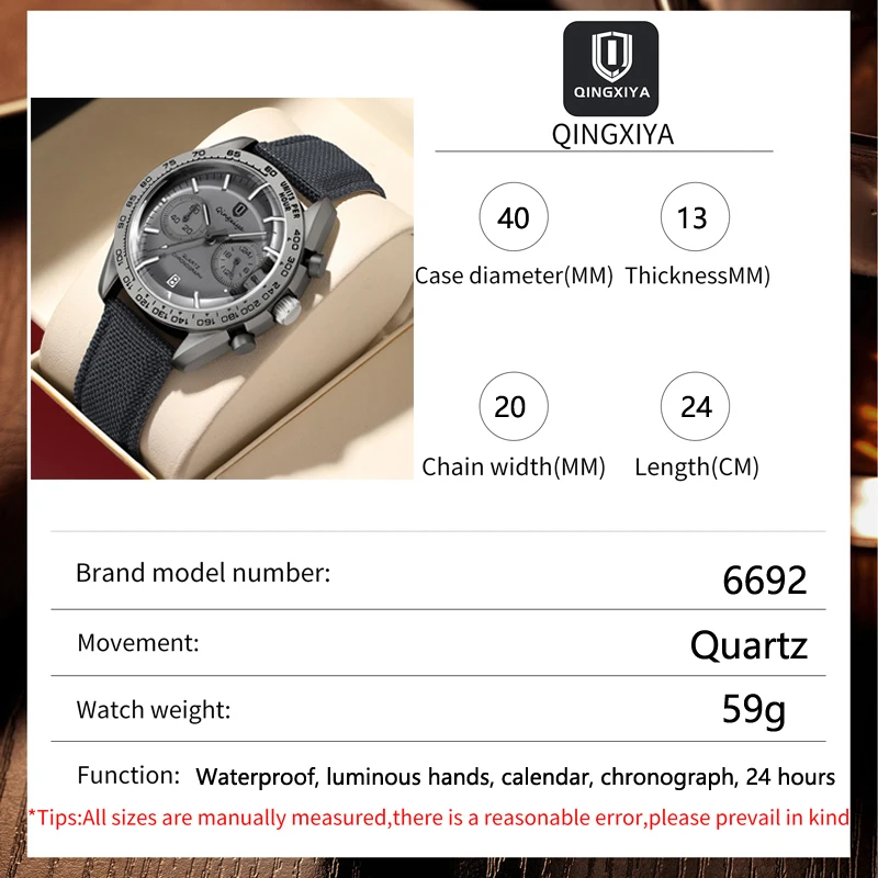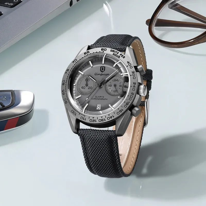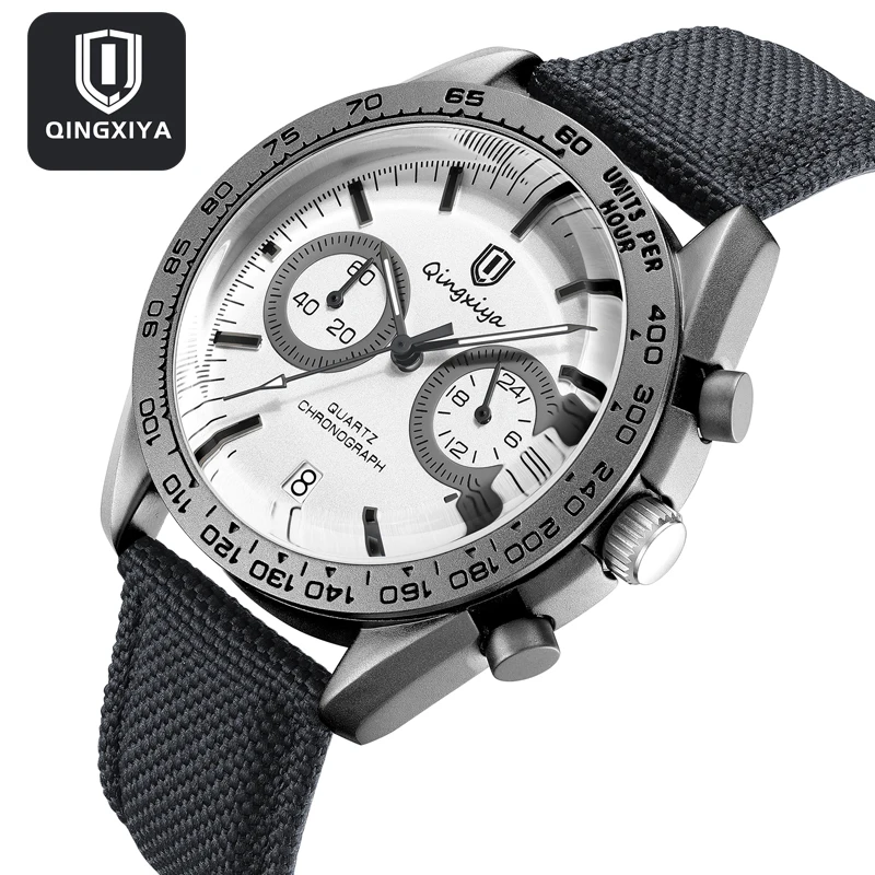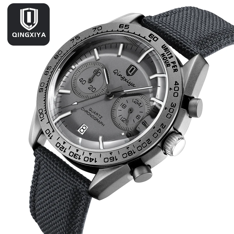 QINGXIYA Brand Luxury Chronograph Quartz Watch for Men Sports Leather Strap Waterproof Calendar 24 Hours Fashion Mens Watches