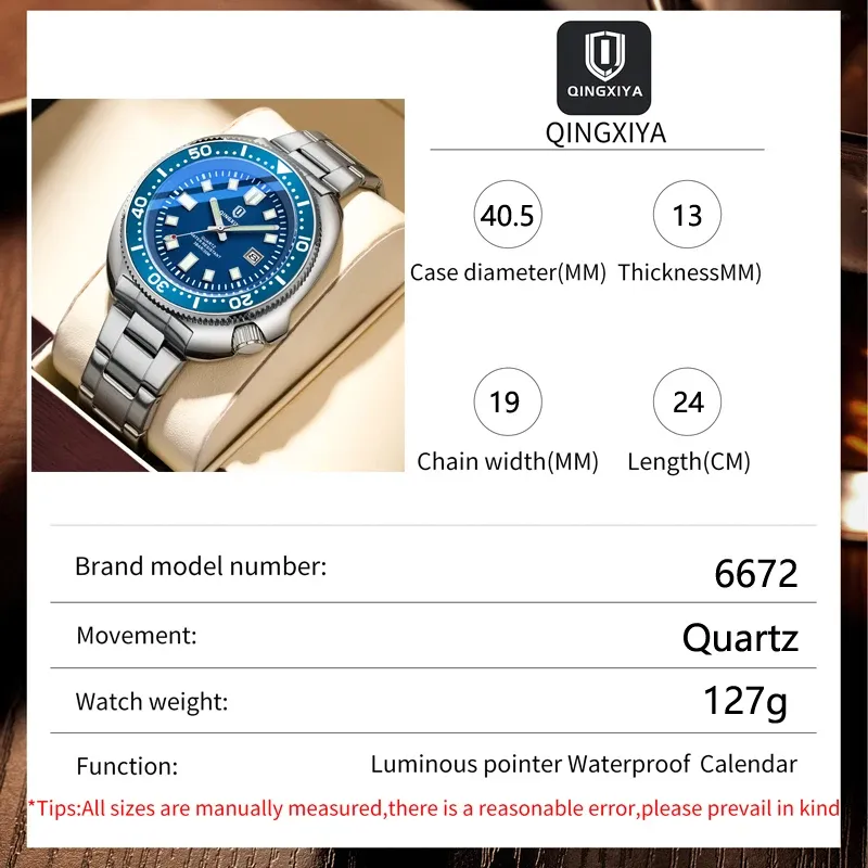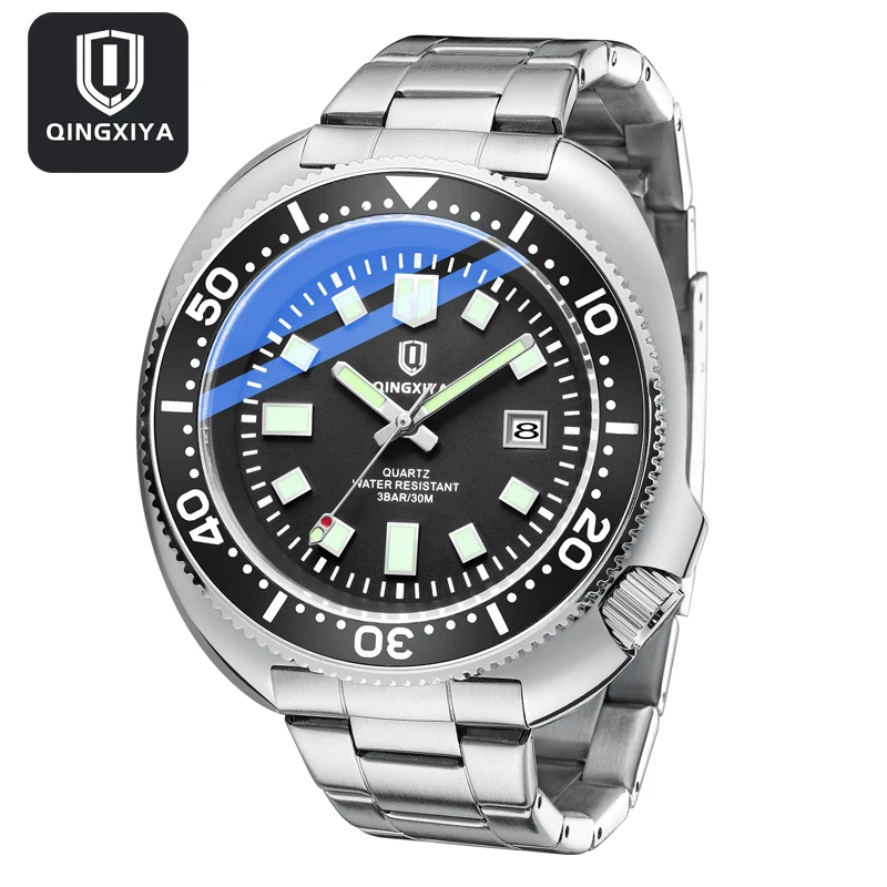 Qingxiya fashion blue quartz watch men stainless steel waterproof luminous date mens watches top brand luxury Relogio Masculino