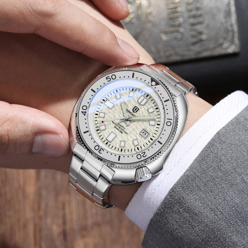 Qingxiya luxury quartz man wristwatch sport men watches waterproof luminous date stainless steel Mens Watch Relogio Masculino