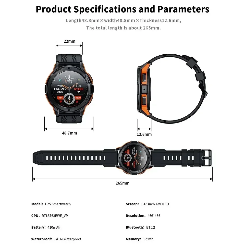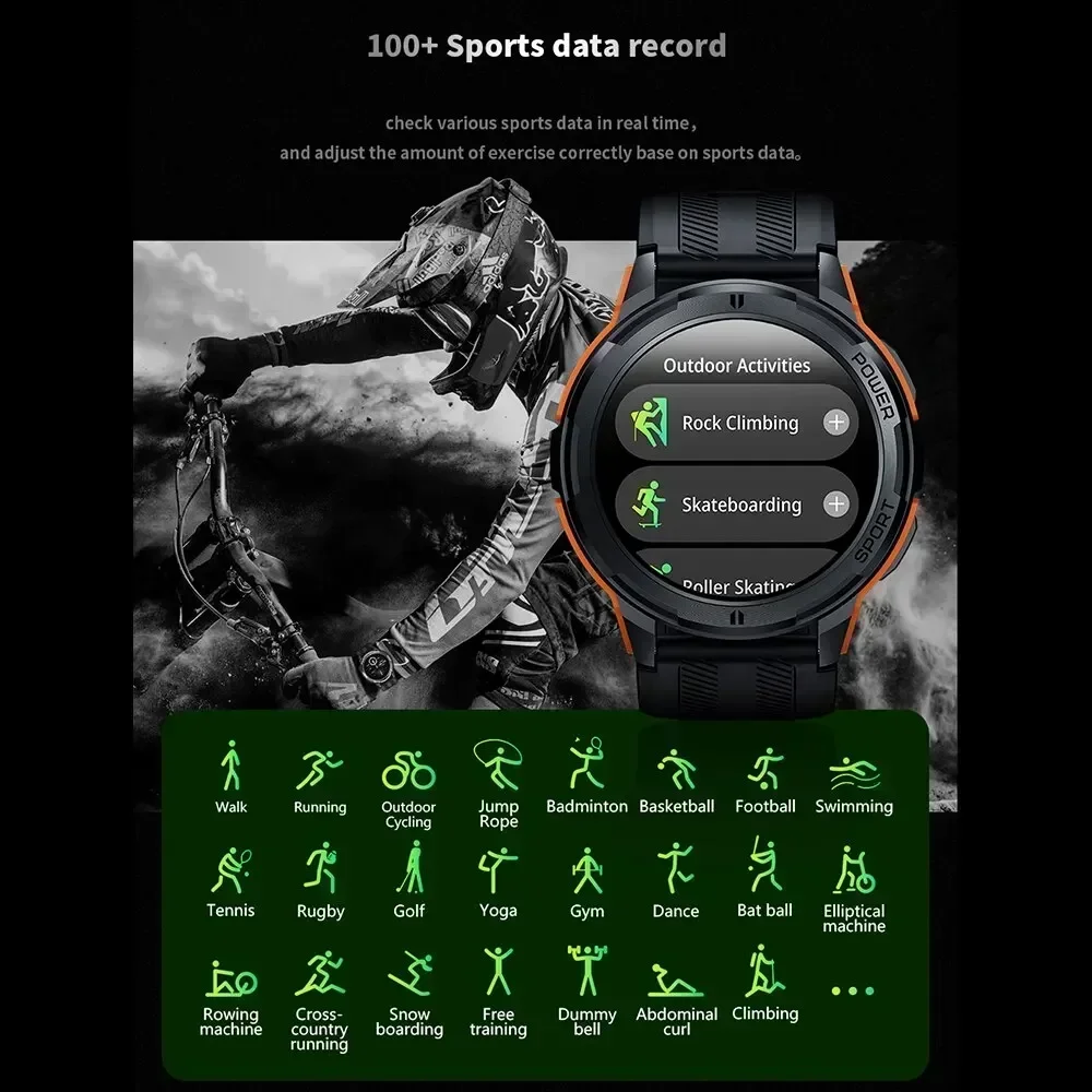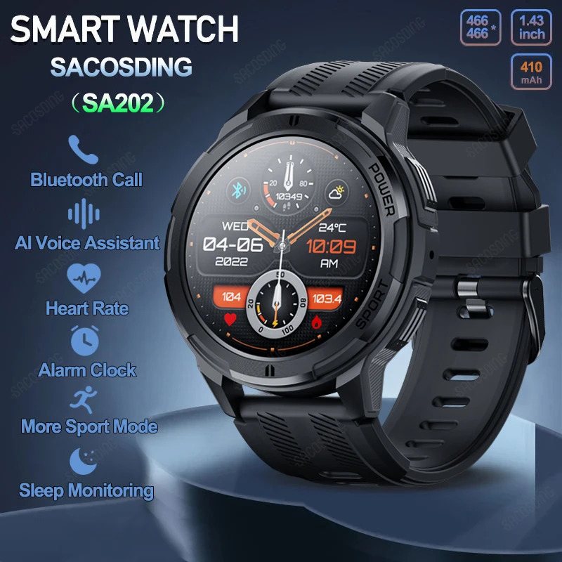 Saosding sa202 military smart watch men 1atm waterproof sports watch Bluetooth call 466*466 AMOLED always on display smartwatch