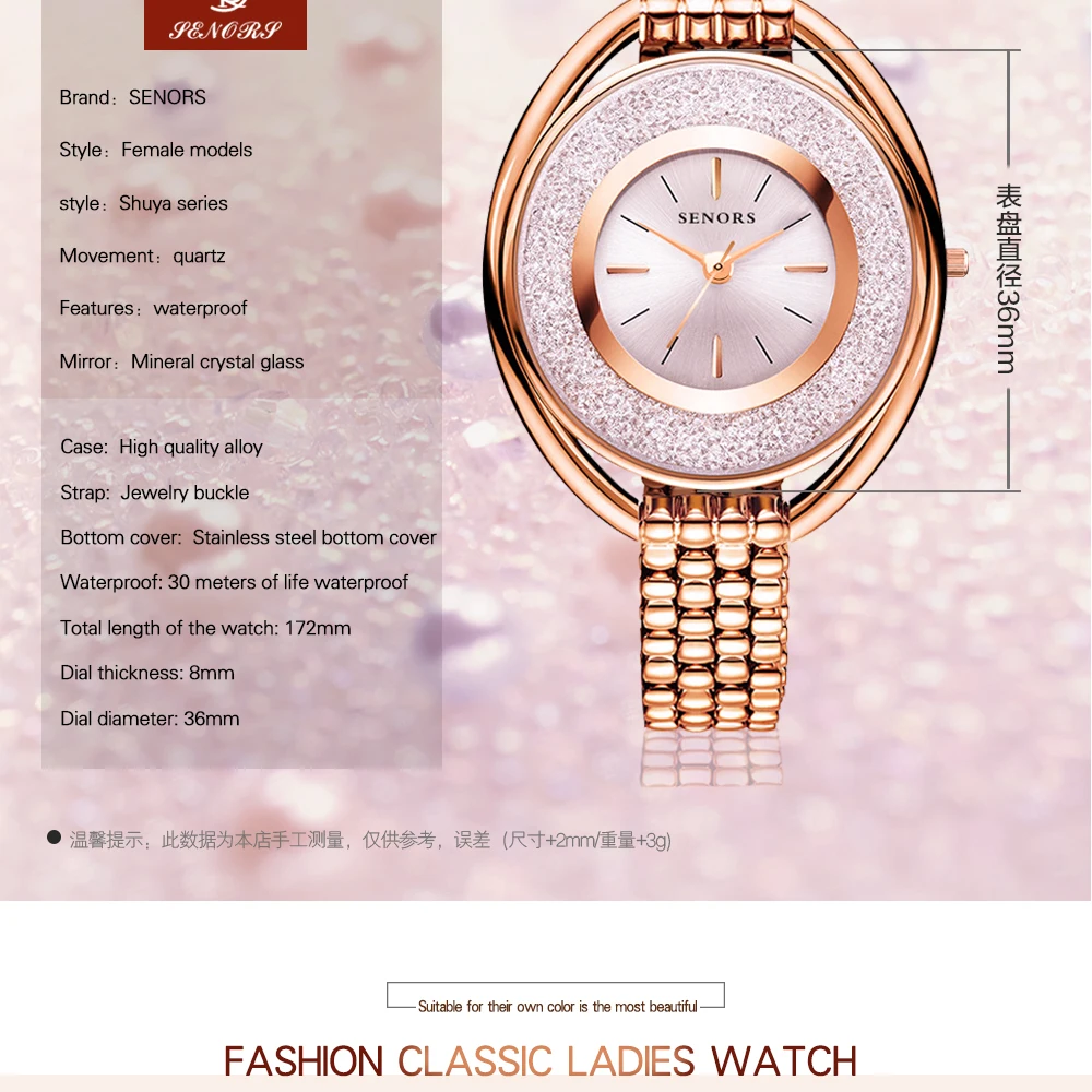 SENORS Jewelry watch waterproof fashion simple ladies quartz watch women's watches saat women wrist watches clock hour