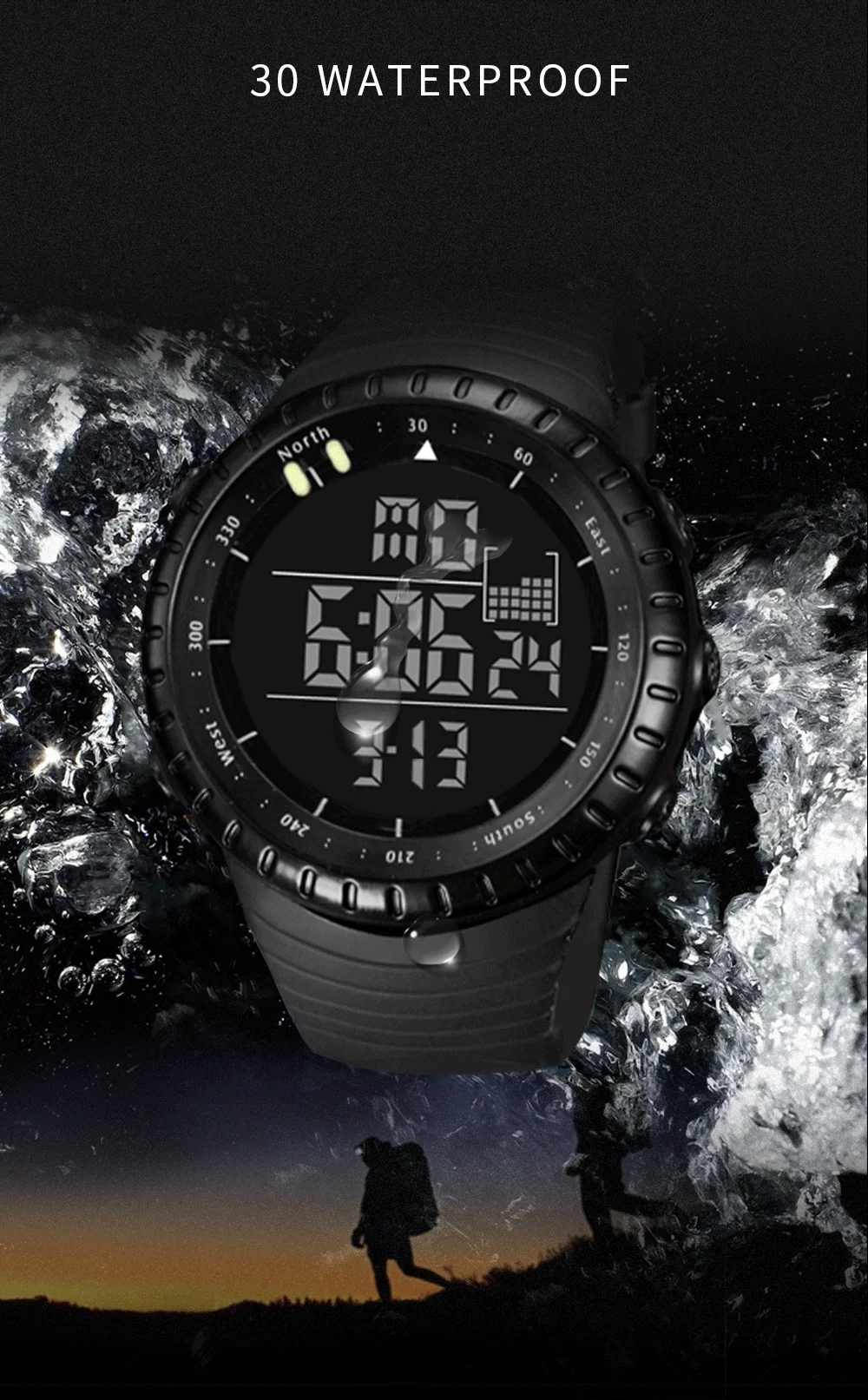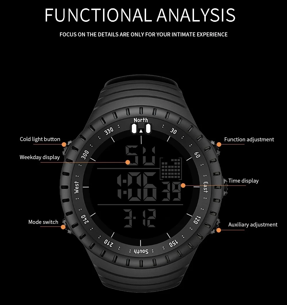 SENORS Outdoor Men Watches Sport Digital Woman Military Watch Male Watch Fashion Wristwatch Silicone Strap LED Clock Electronic