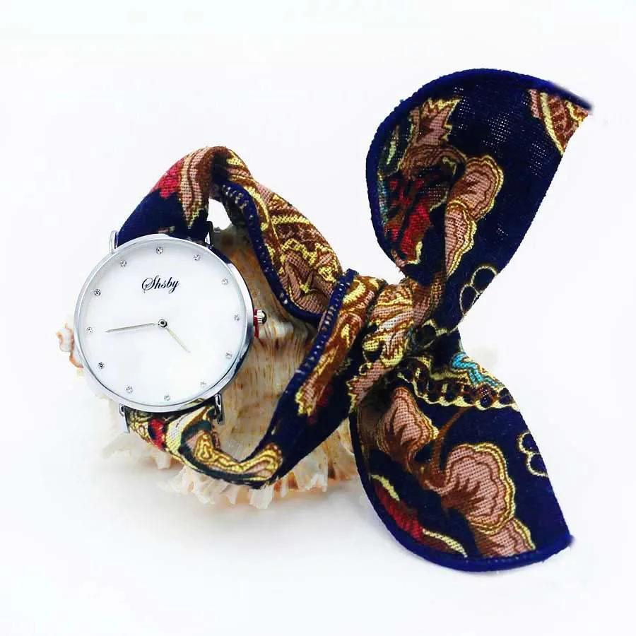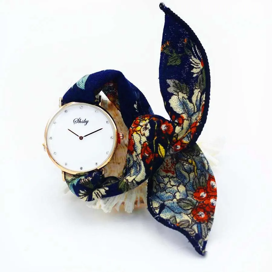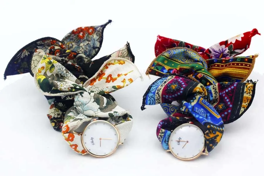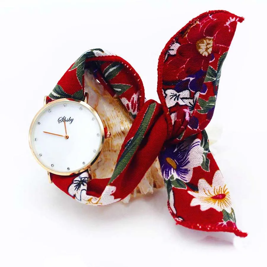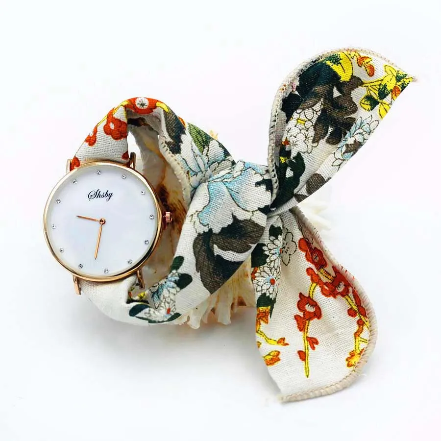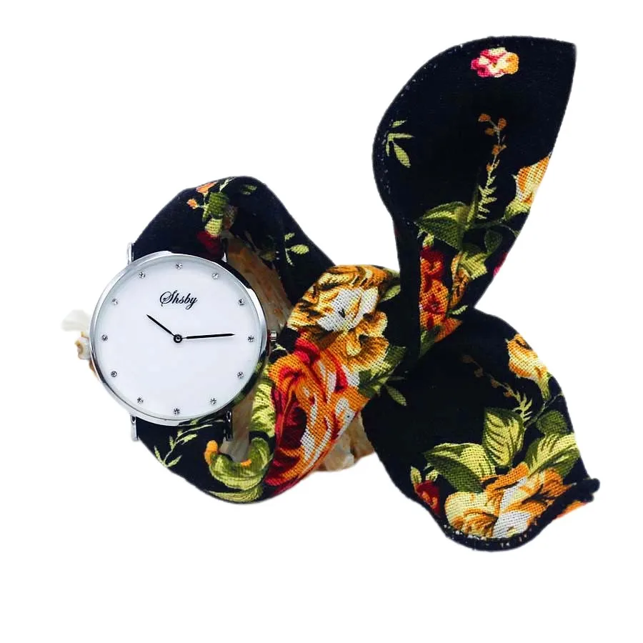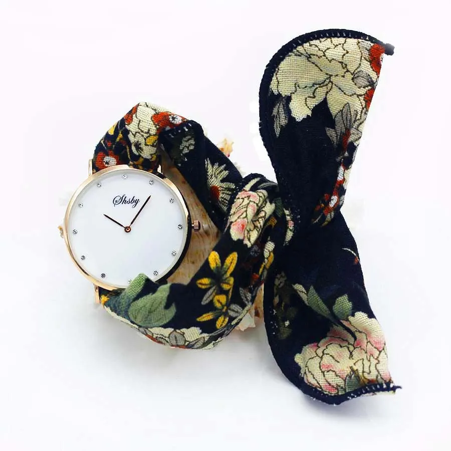 Shsby Ladies Flower Cloth Wristwatch Women Dress Watch Fashion Girl Casual Quartz Watch Big Dril Dial Fabric Clock Birthday Gift