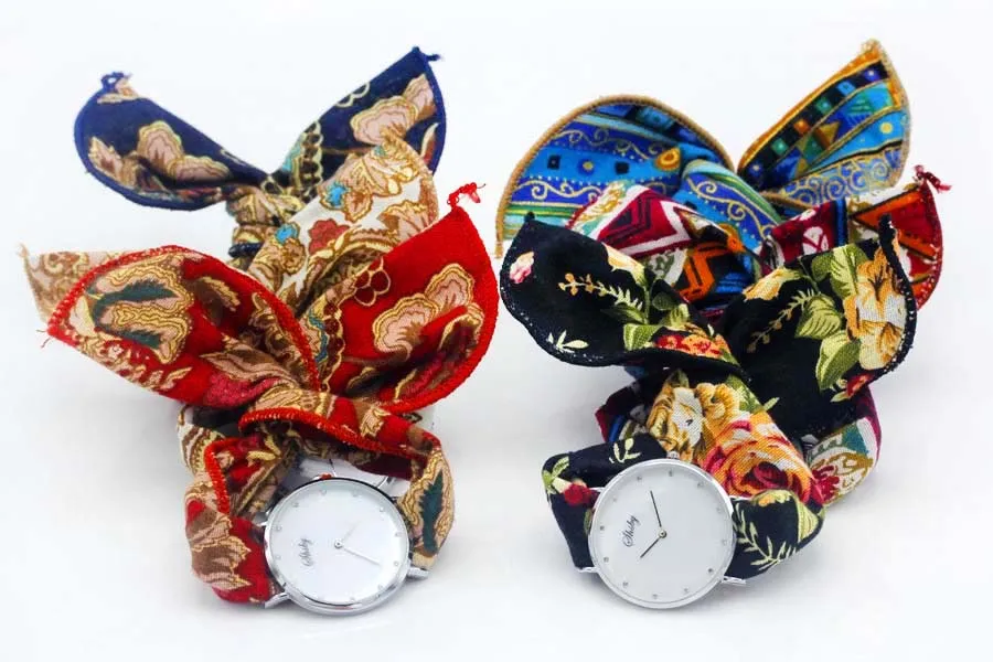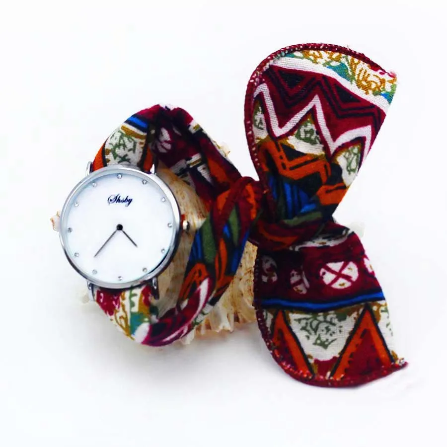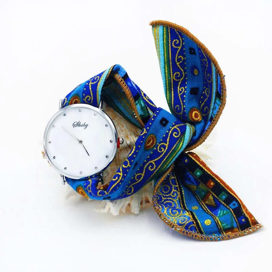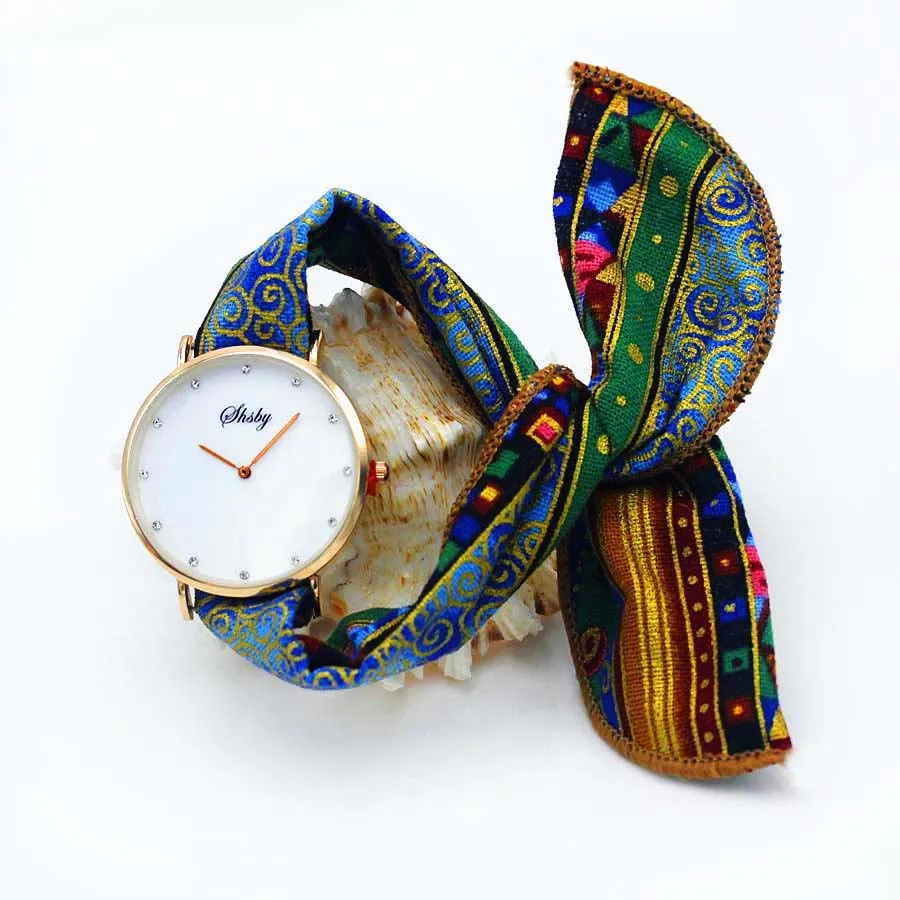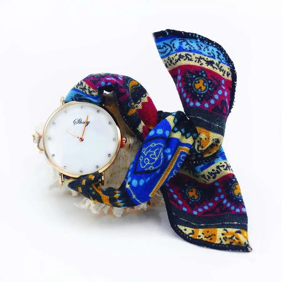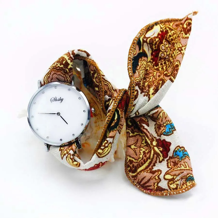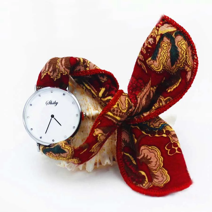 Shsby Ladies Flower Cloth Wristwatch Women Dress Watch Fashion Girl Casual Quartz Watch Big Dril Dial Fabric Clock Birthday Gift