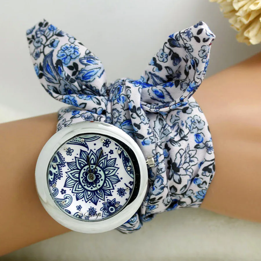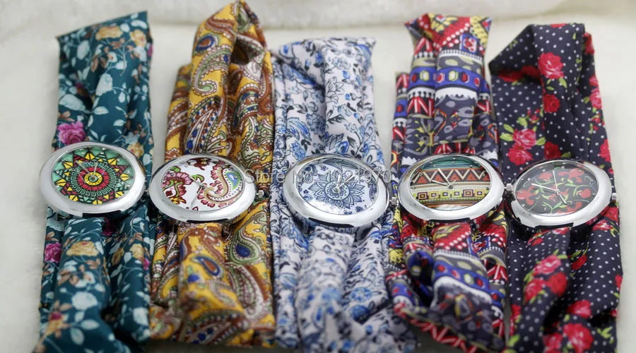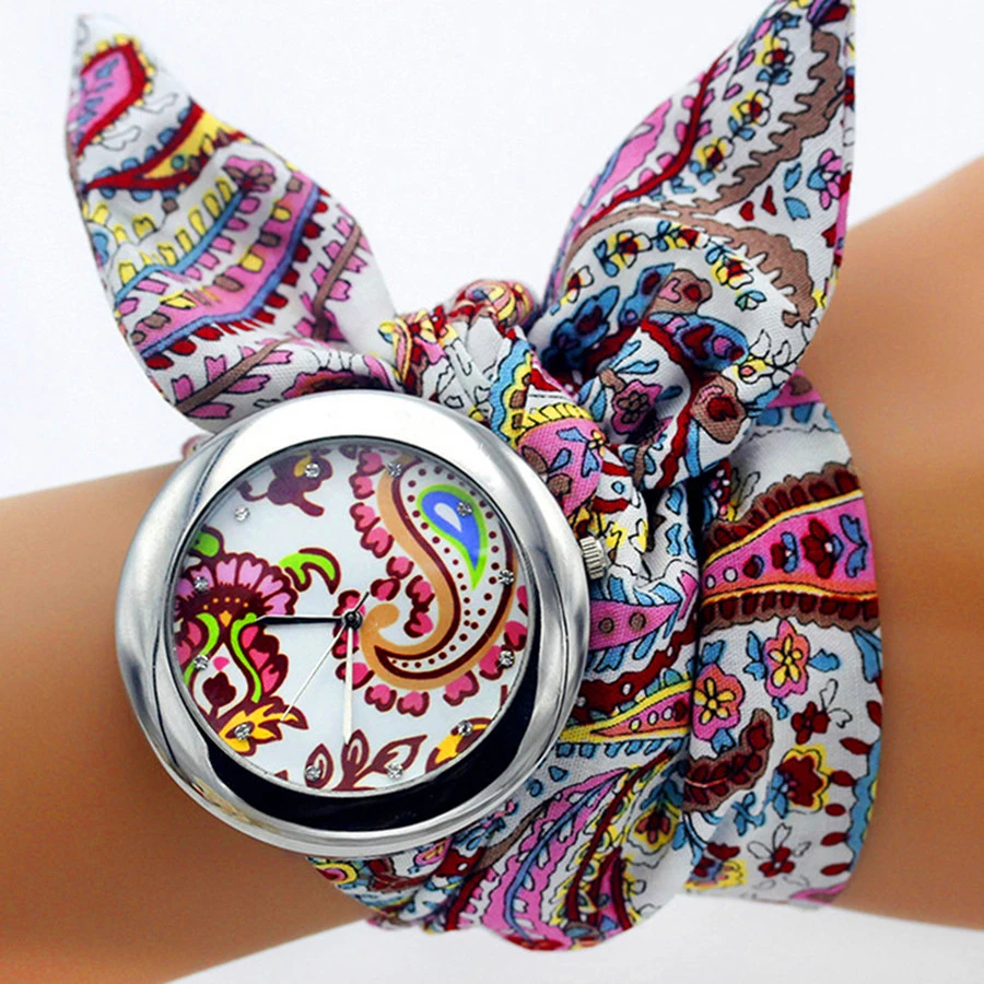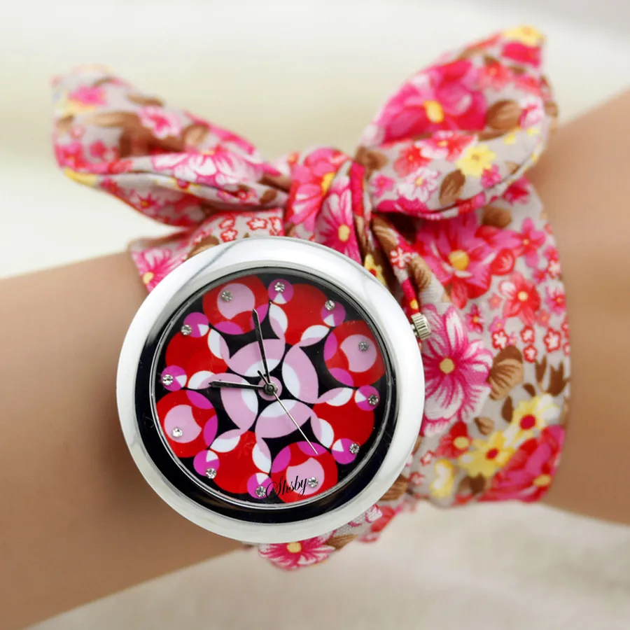 Shsby New Ethnic Floral Chiffon Sweet Girls Watch Flower Cloth Watches Women Dress Watches Fashion Quartz Female Ladies Gift
