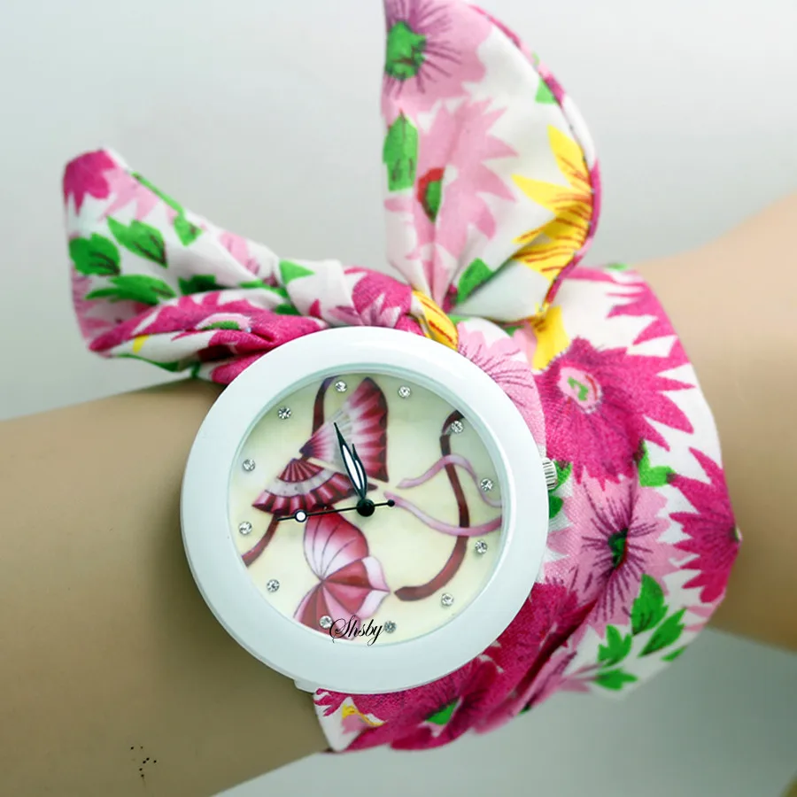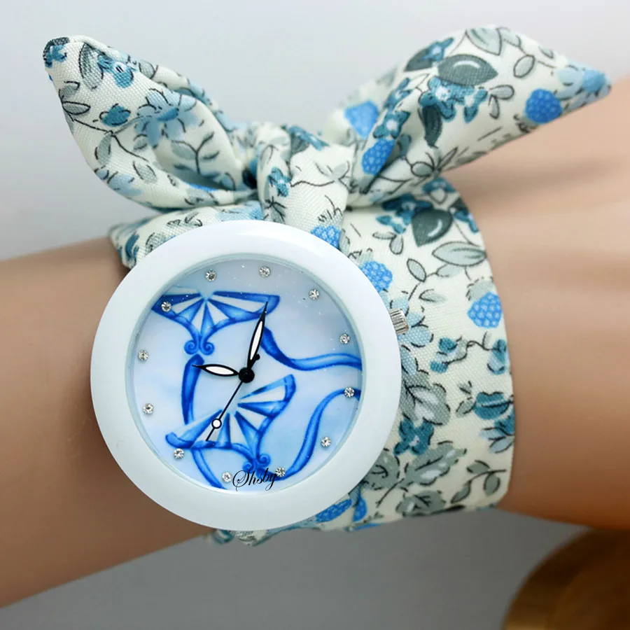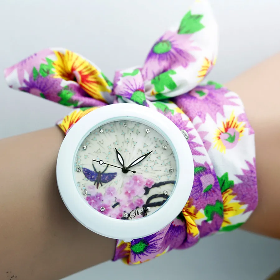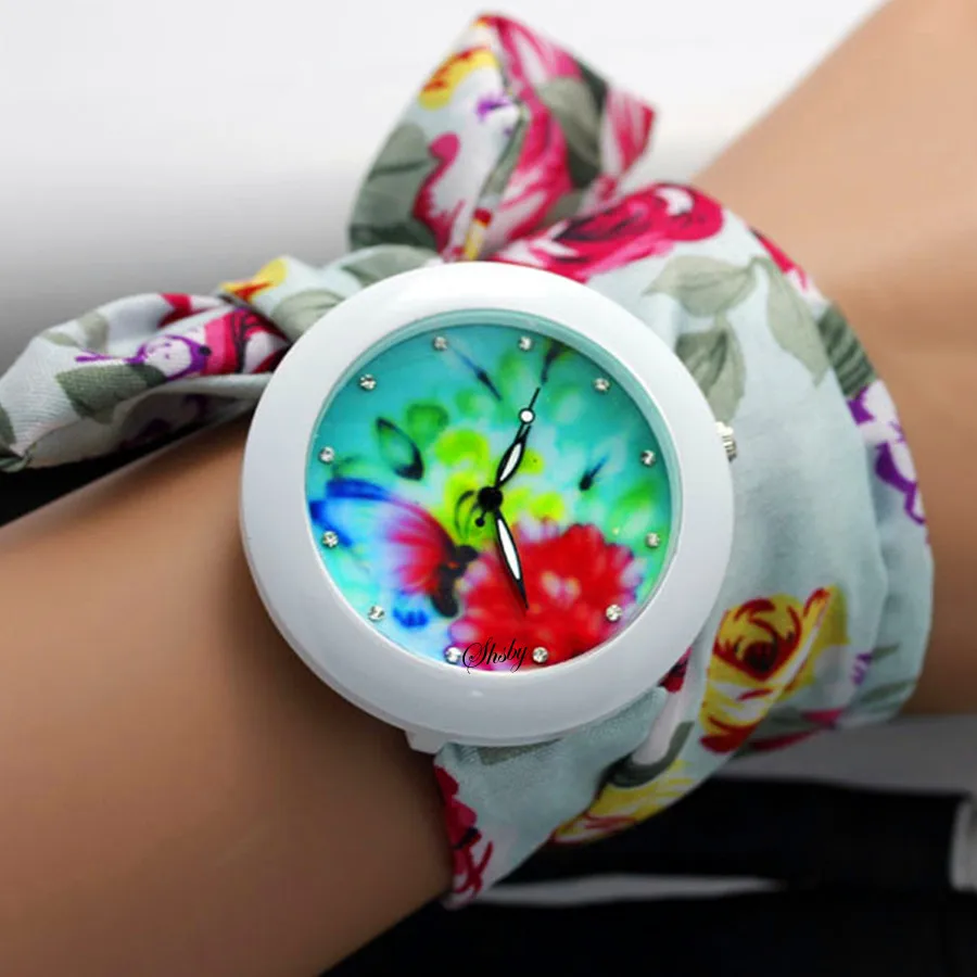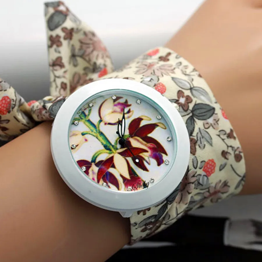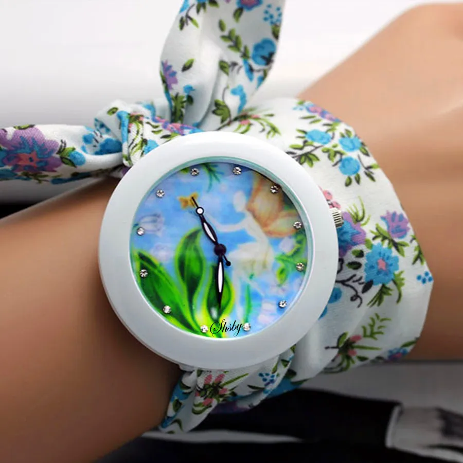 shsby new floral chiffon sweet girls watch Sweet chiffon fabric women dress watches fashion Ladies flower cloth wrist watch