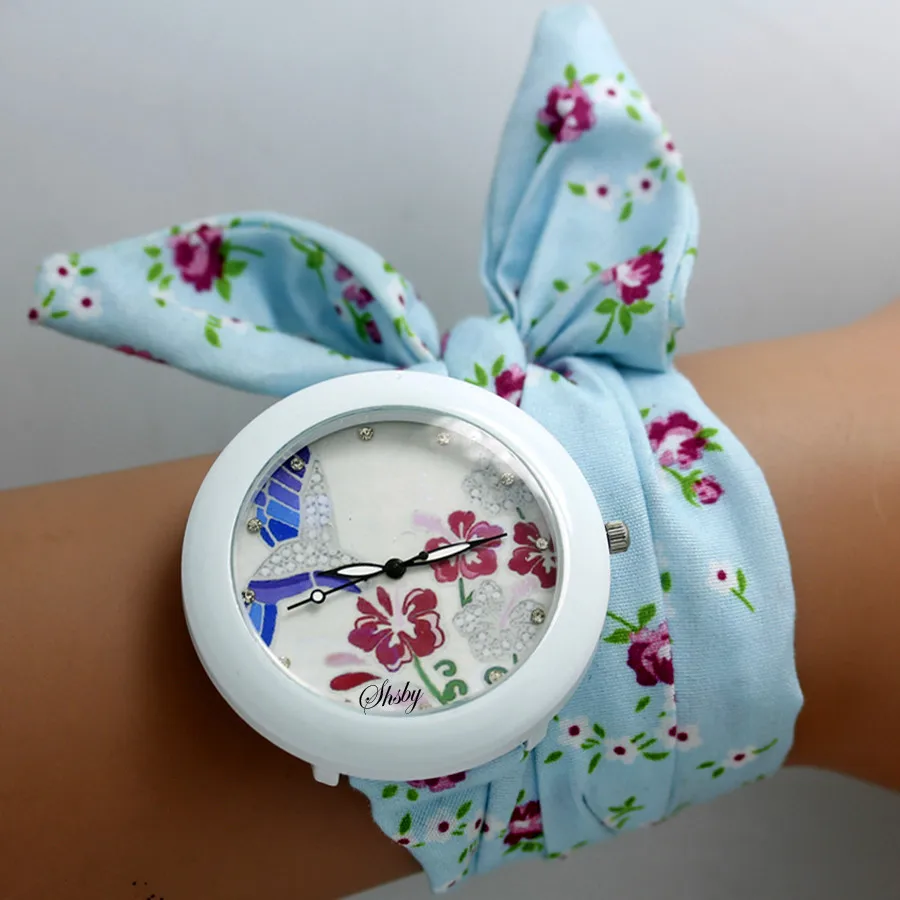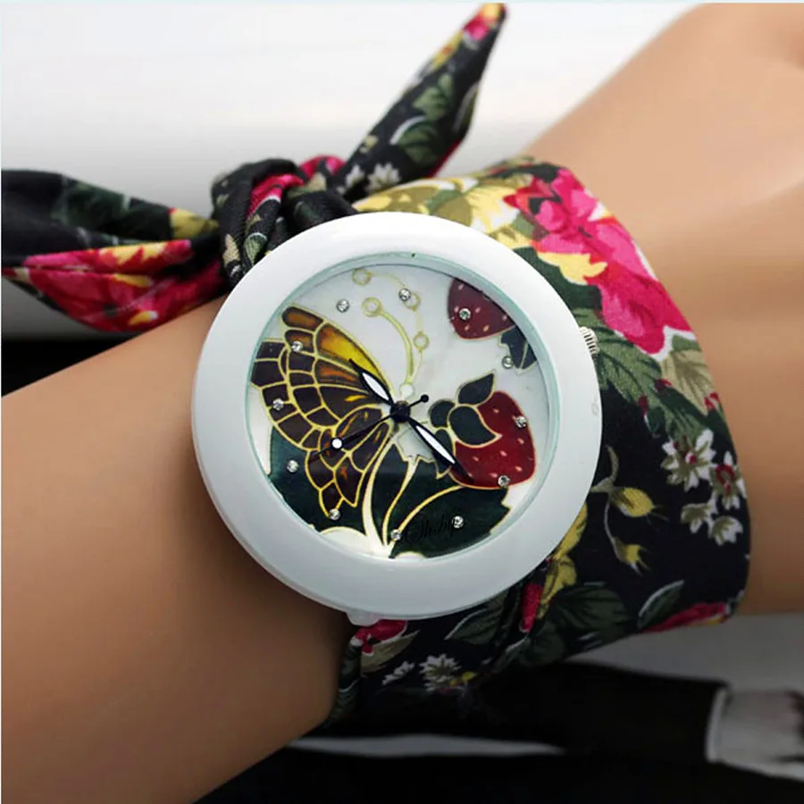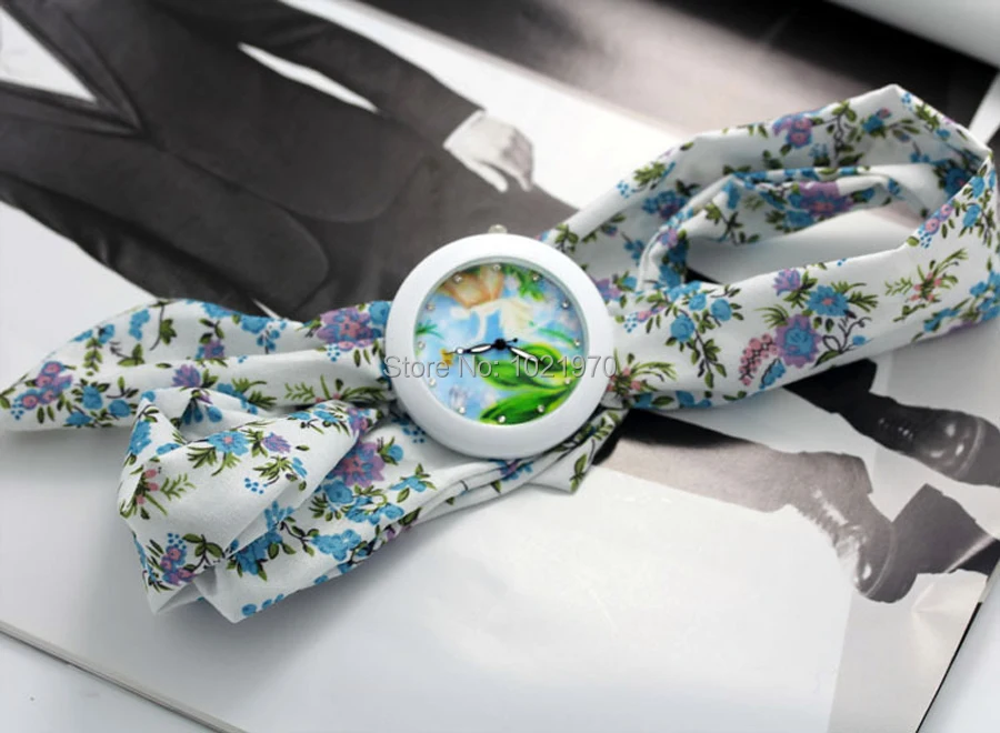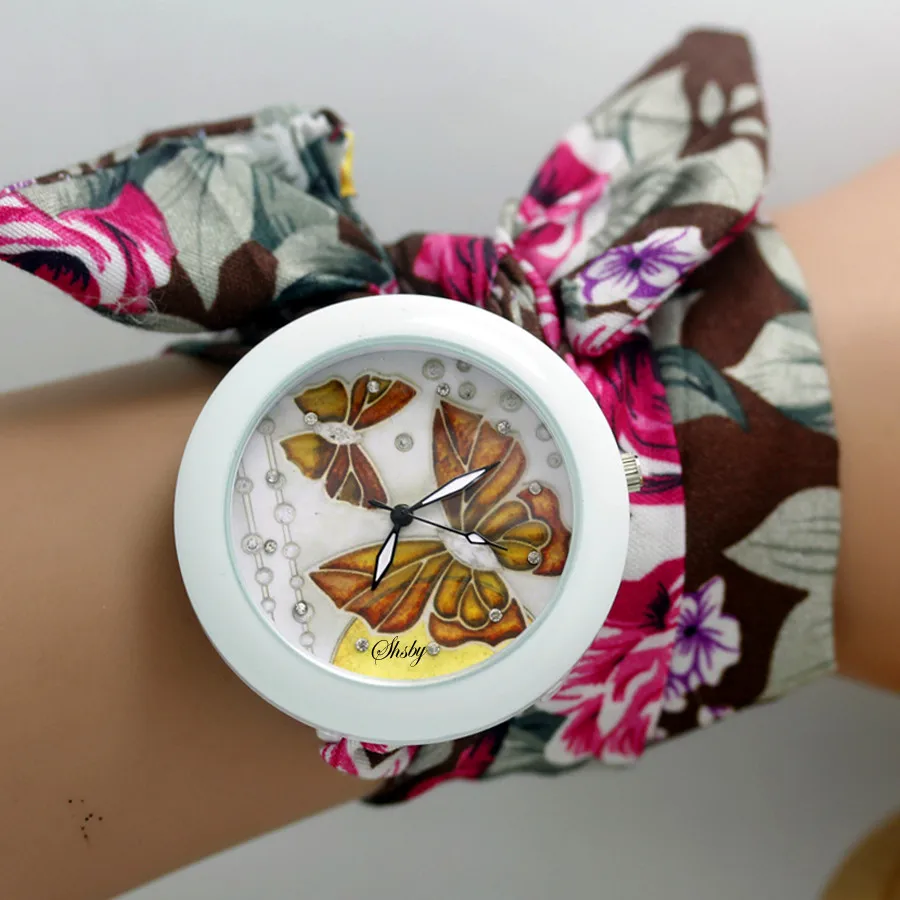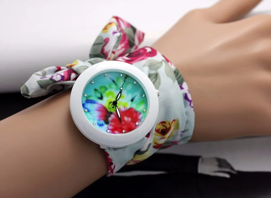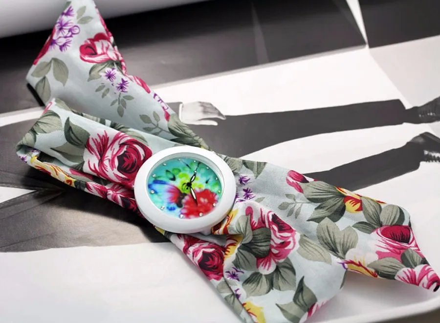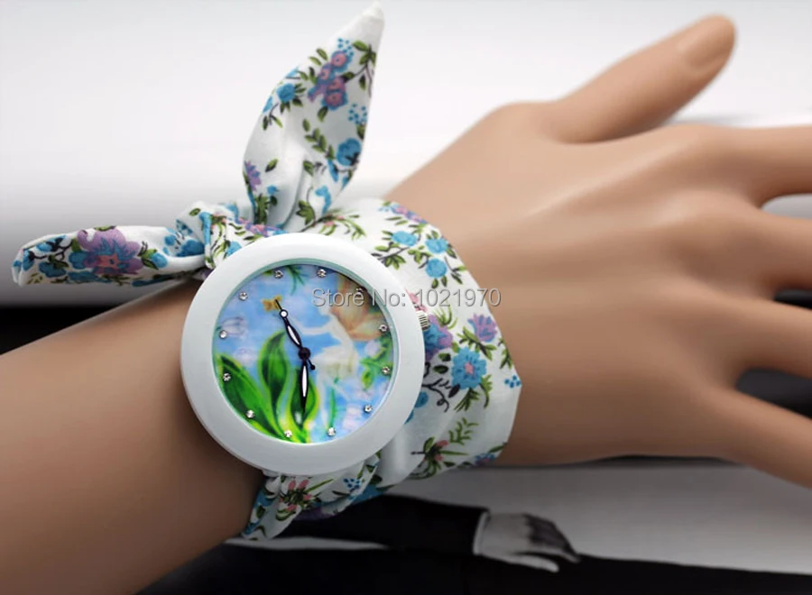 shsby new floral chiffon sweet girls watch Sweet chiffon fabric women dress watches fashion Ladies flower cloth wrist watch