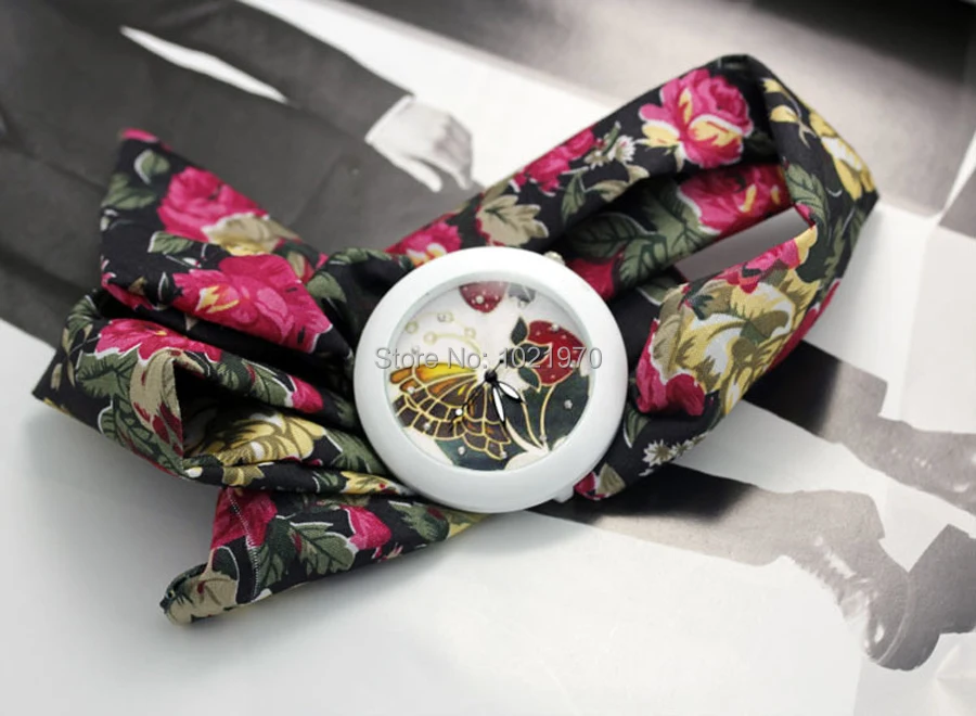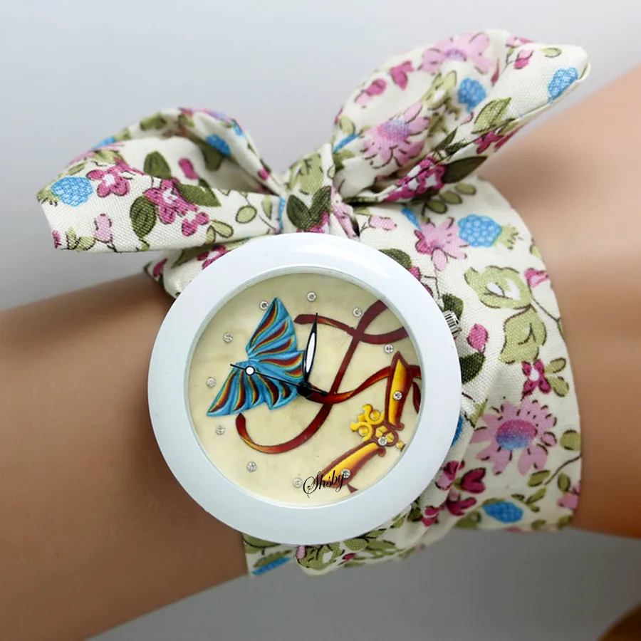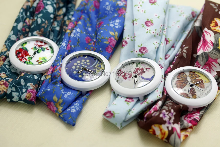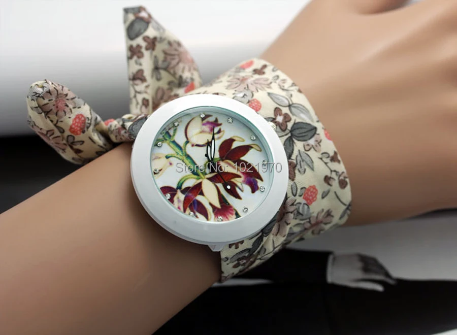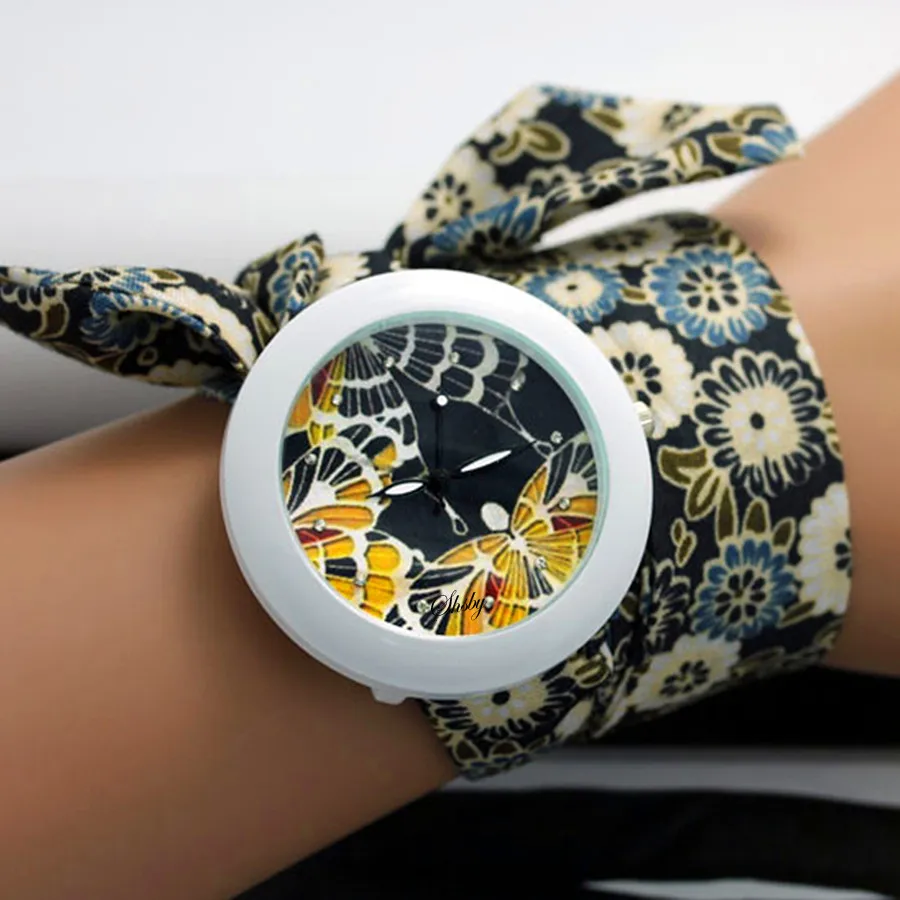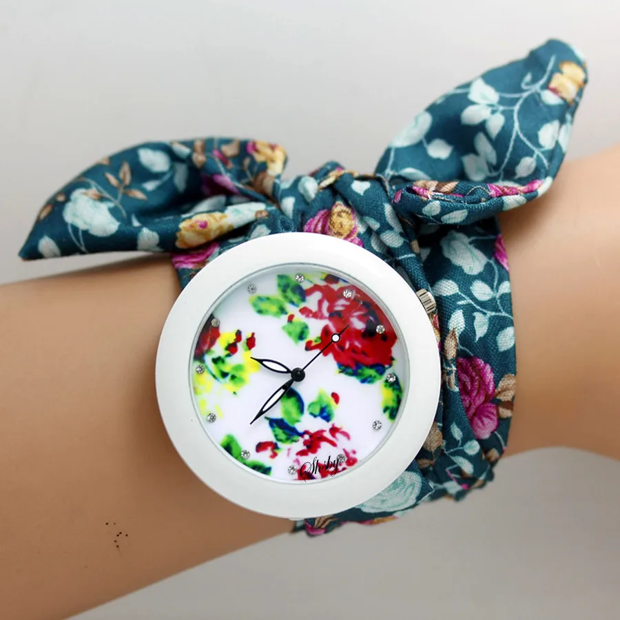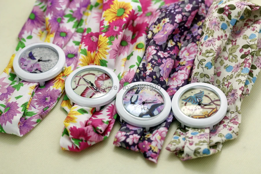 shsby new floral chiffon sweet girls watch Sweet chiffon fabric women dress watches fashion Ladies flower cloth wrist watch