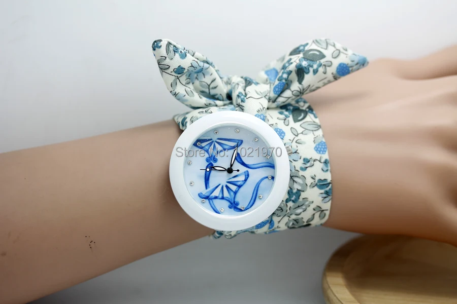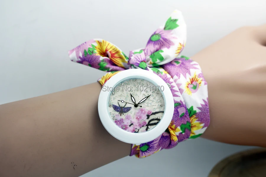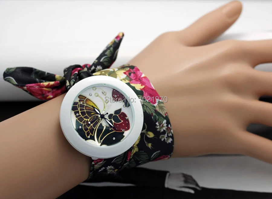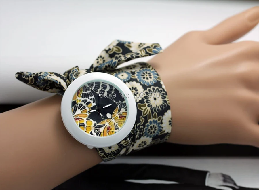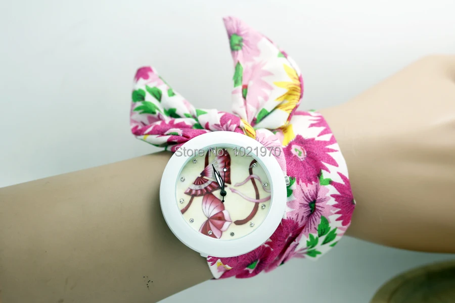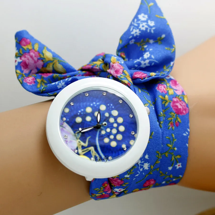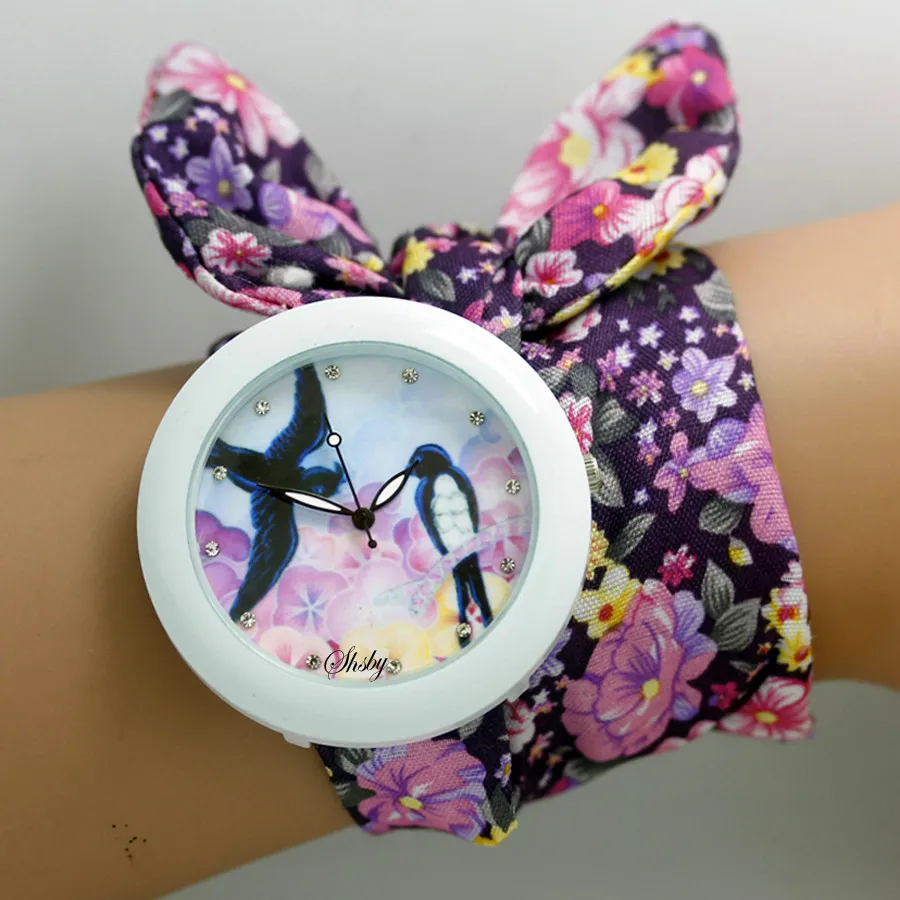 shsby new floral chiffon sweet girls watch Sweet chiffon fabric women dress watches fashion Ladies flower cloth wrist watch