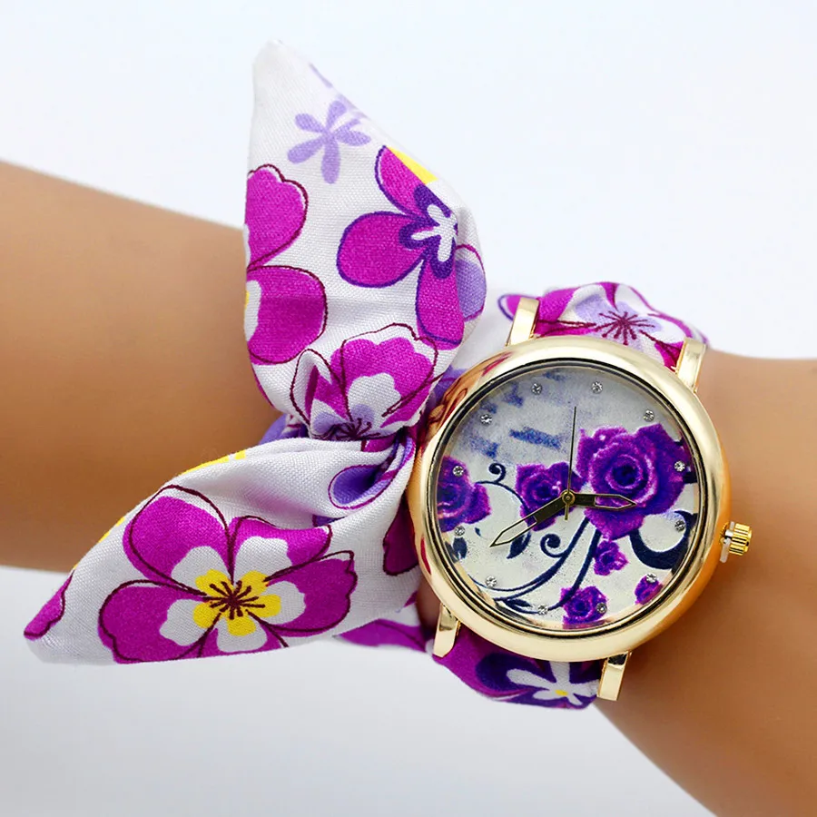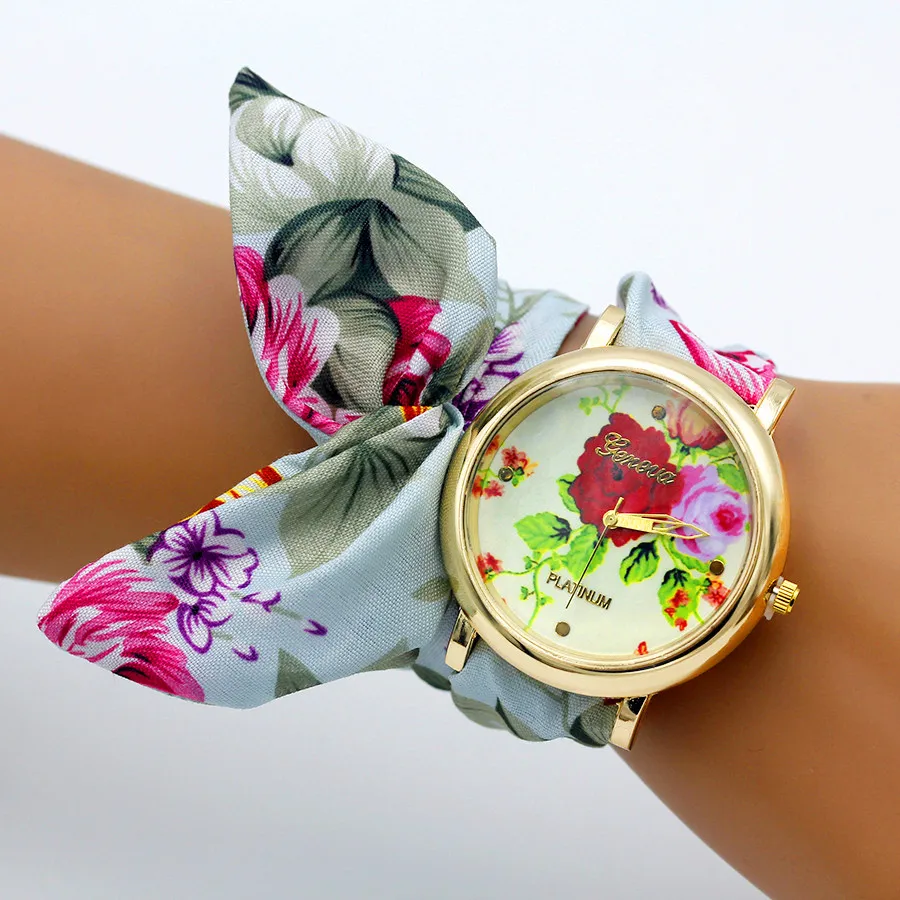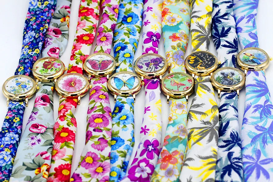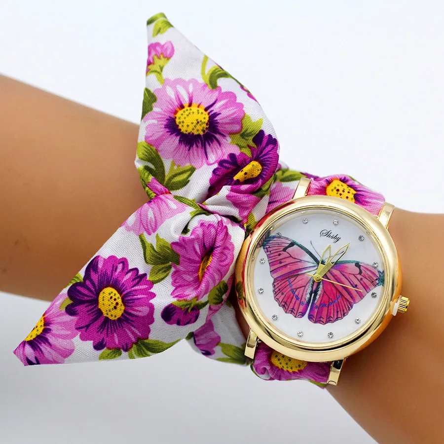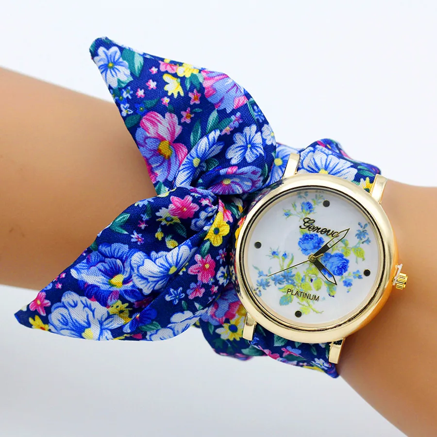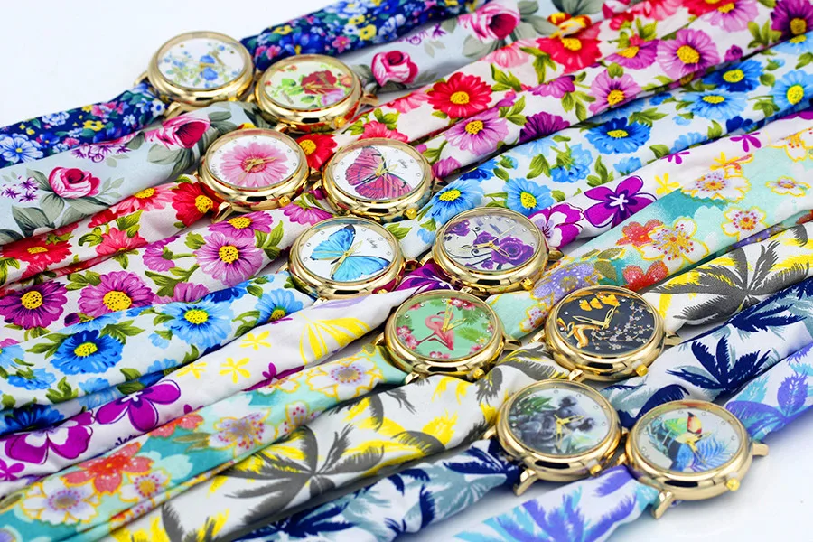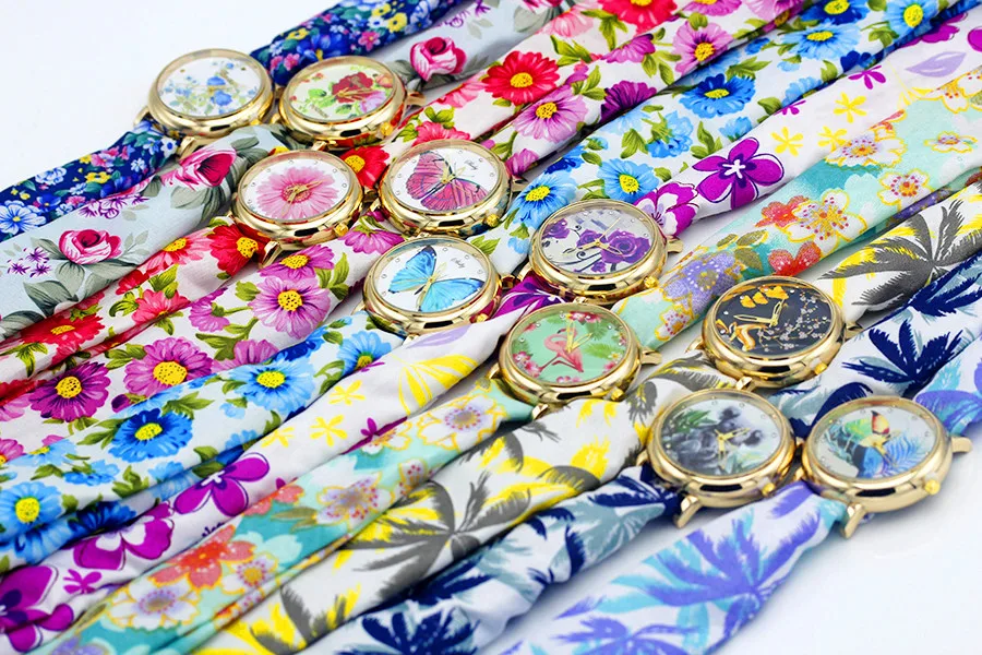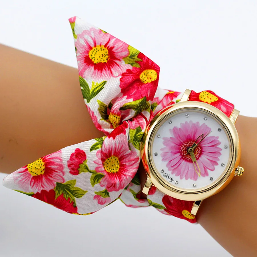 Shsby New Ladies Flower Cloth Wrist Watch Fashion Women Dress Watch High Quality Quartz Watch Sweet Girls Watch Fabric Clock