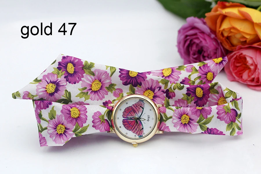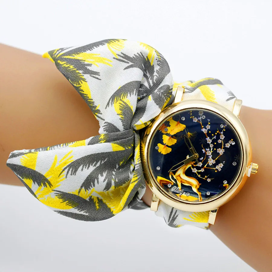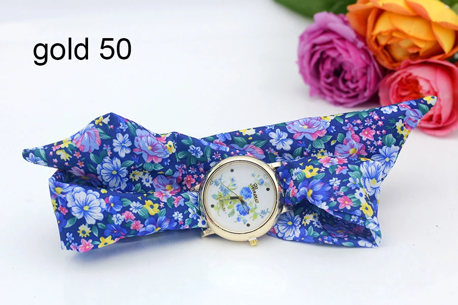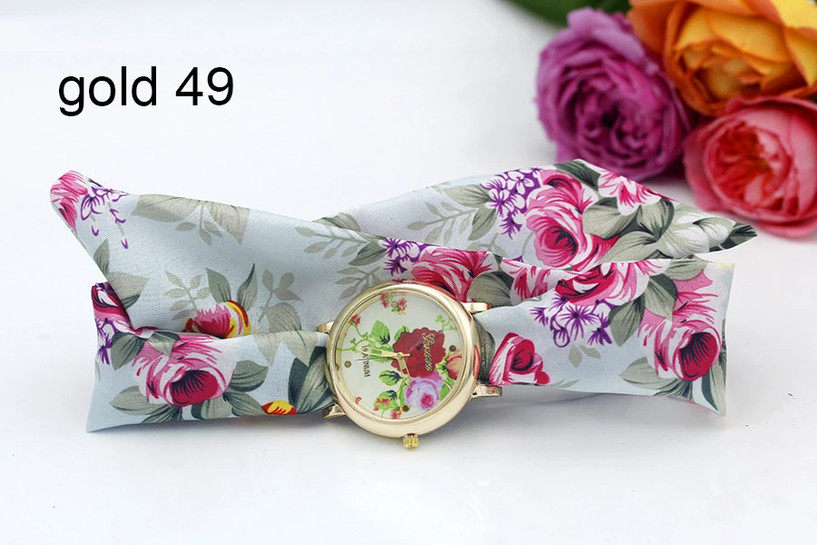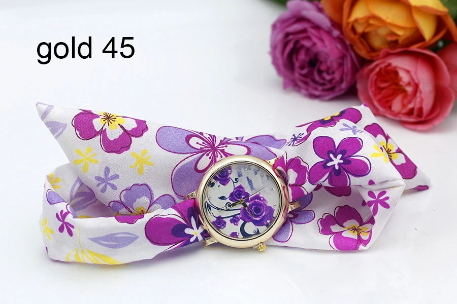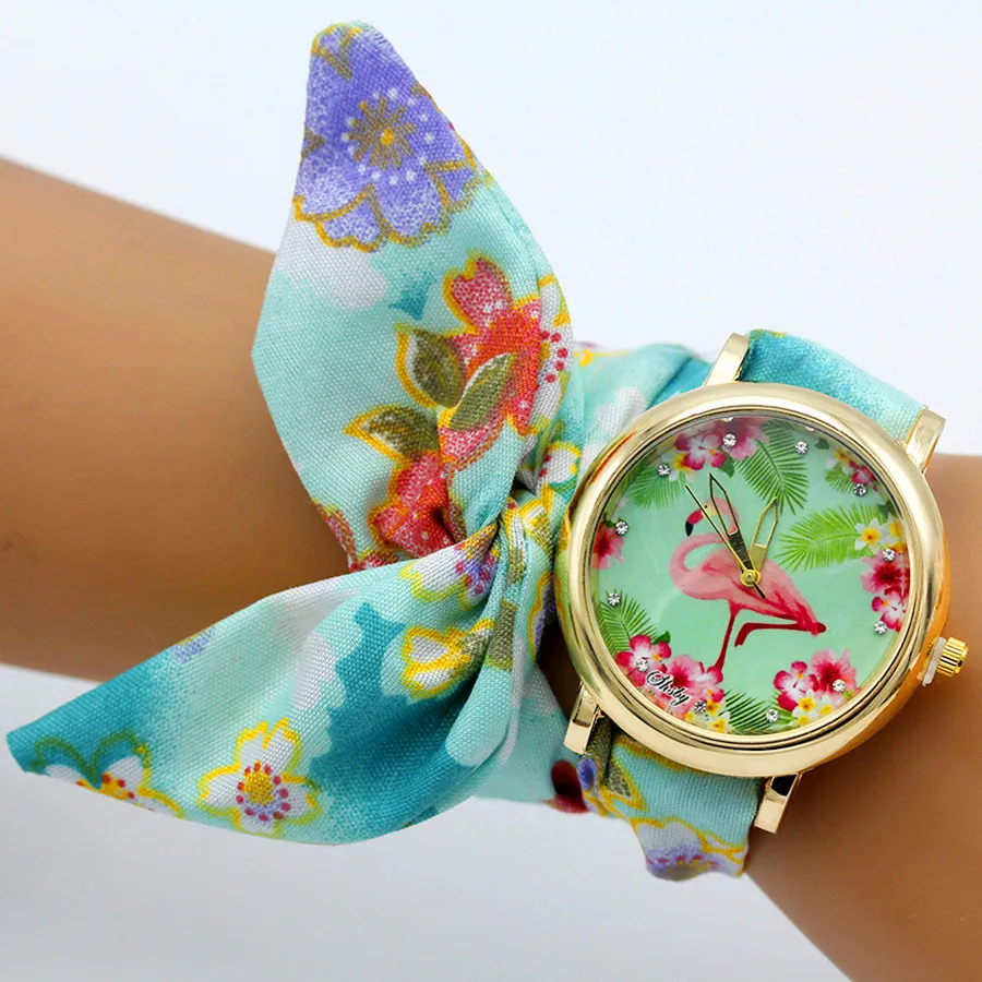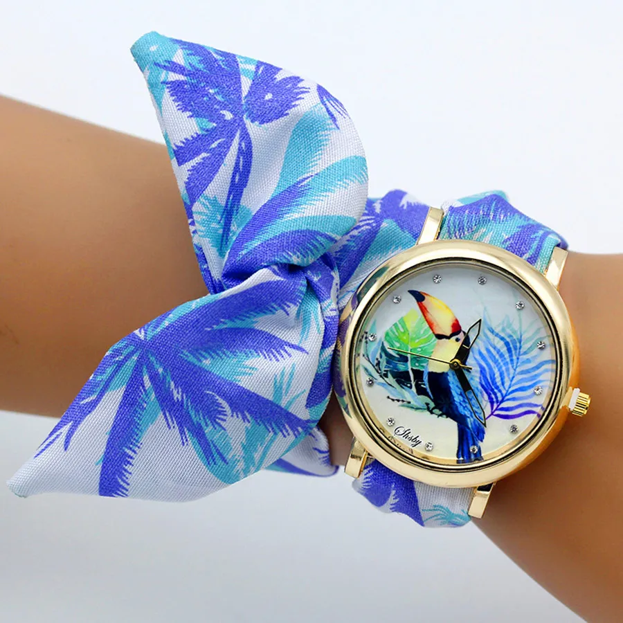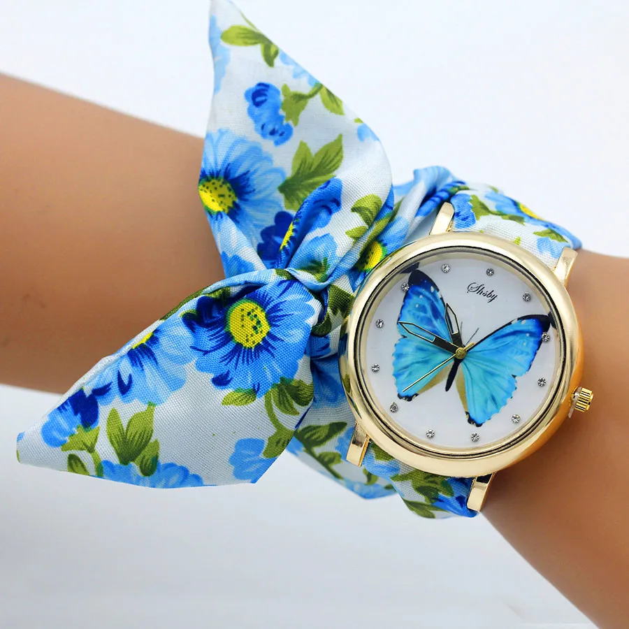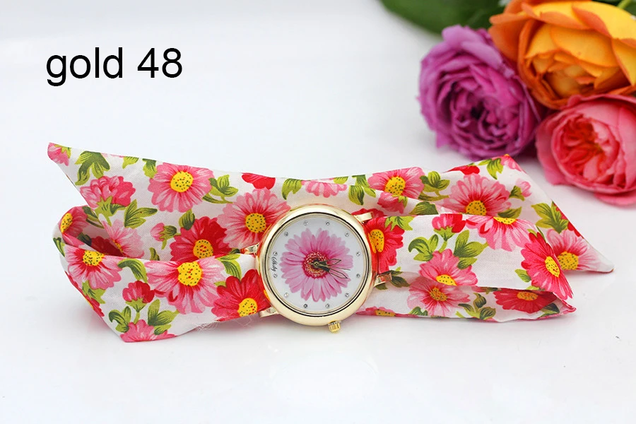 Shsby New Ladies Flower Cloth Wrist Watch Fashion Women Dress Watch High Quality Quartz Watch Sweet Girls Watch Fabric Clock