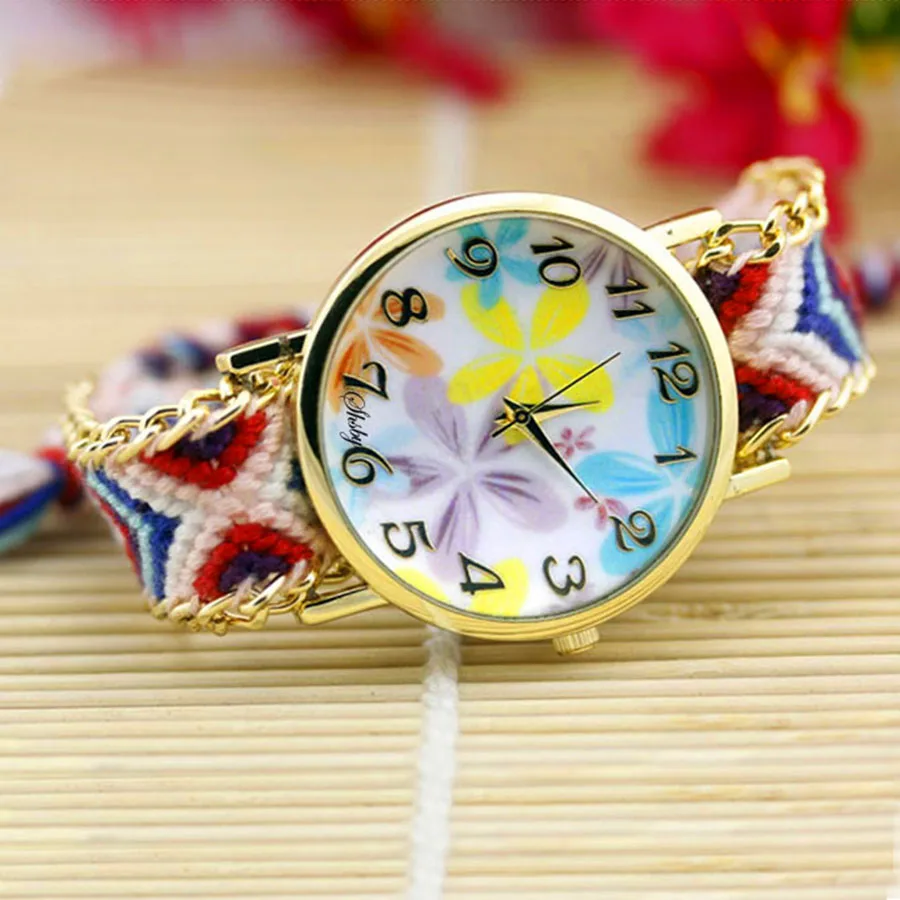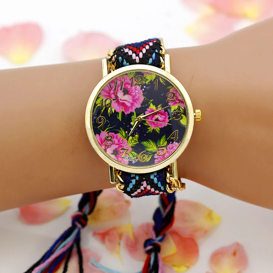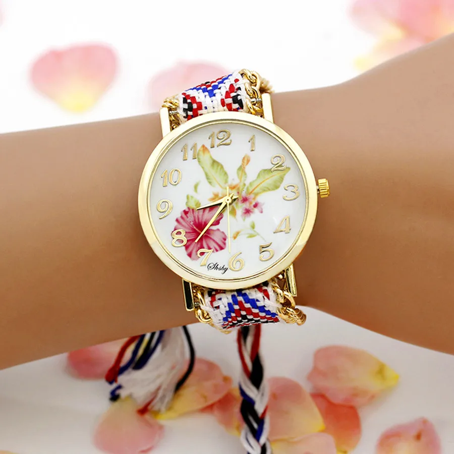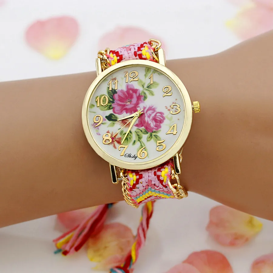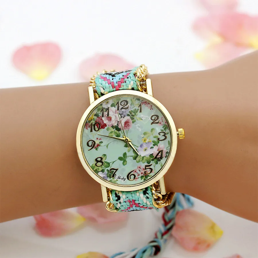 shsby New Ladies flower Woven nylon rope wrist watch fashion women dress watch high quality quartz watch sweet girls watch