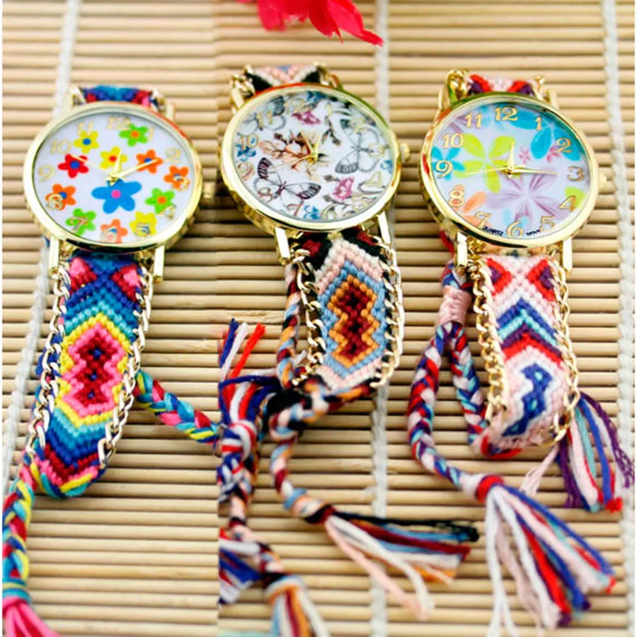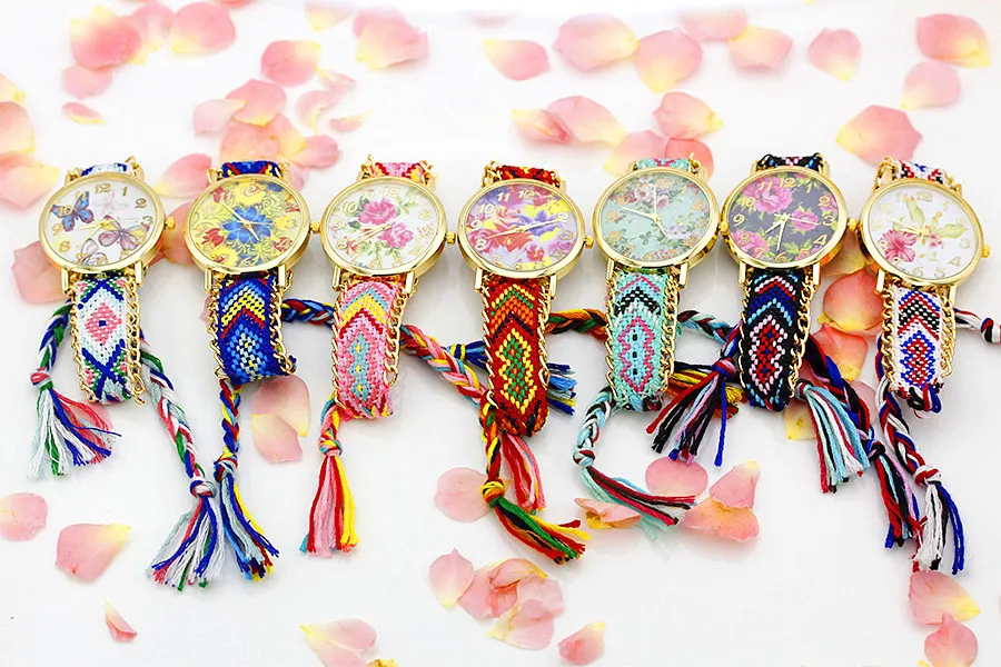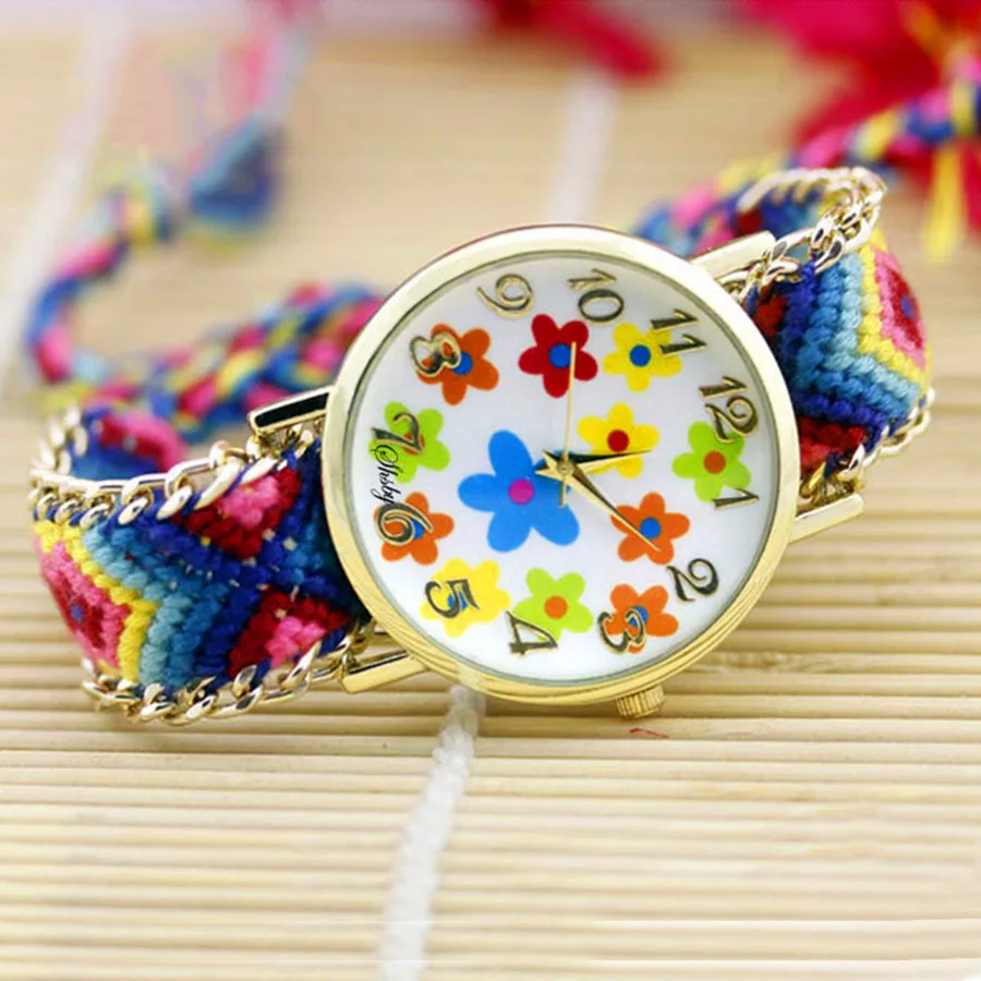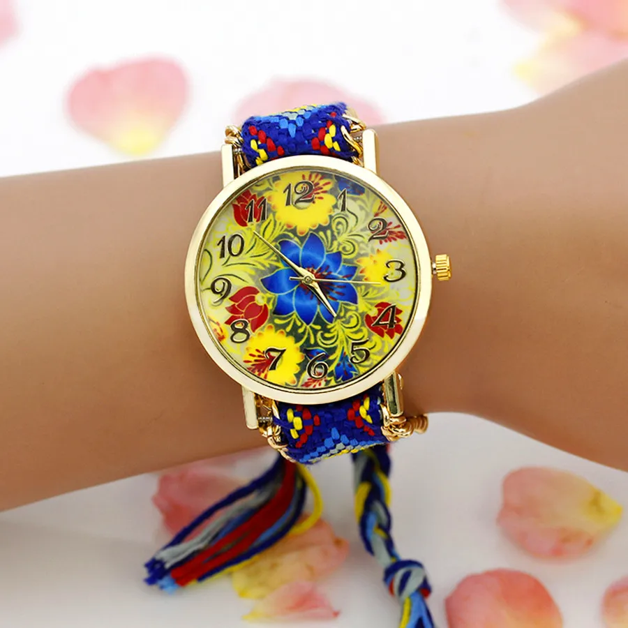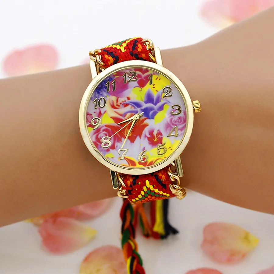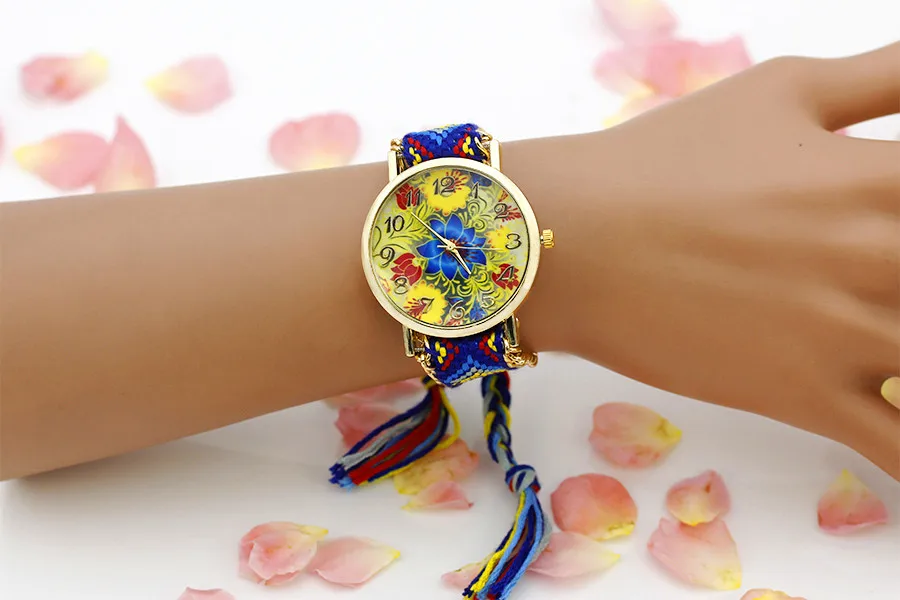 shsby New Ladies flower Woven nylon rope wrist watch fashion women dress watch high quality quartz watch sweet girls watch