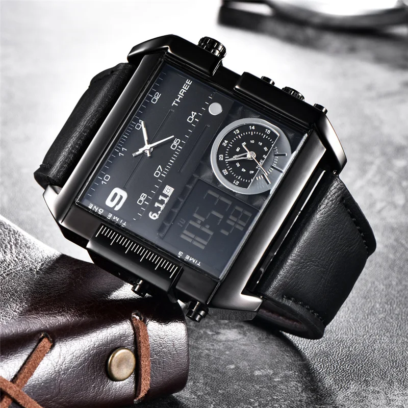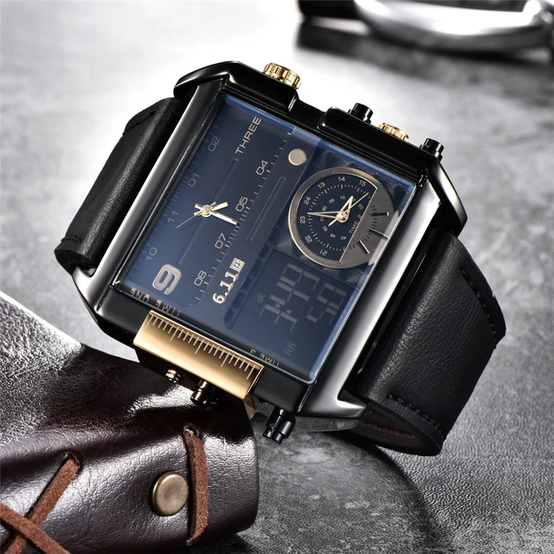 Square Watches Men LED Waterproof Multiple Time Zone Mens Watches Luxury Brand Relogio Masculino Montre Homme Sport Watch