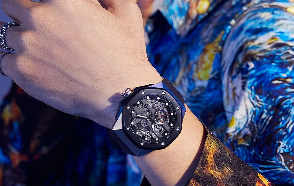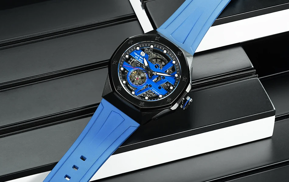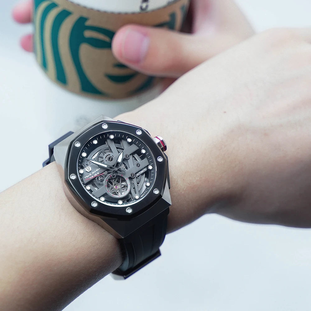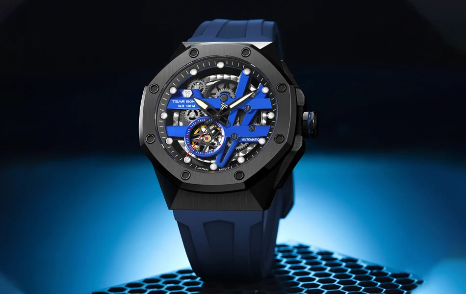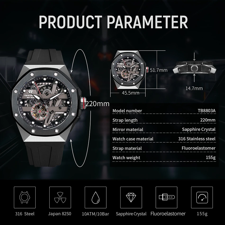 TSAR BOMBA Octagon Mens Automatic Watches Luxury Mechanical Watch Big Dial Water Resistant Sapphire Clock Wristwatch for Men