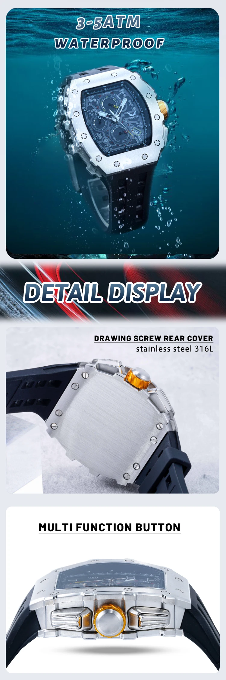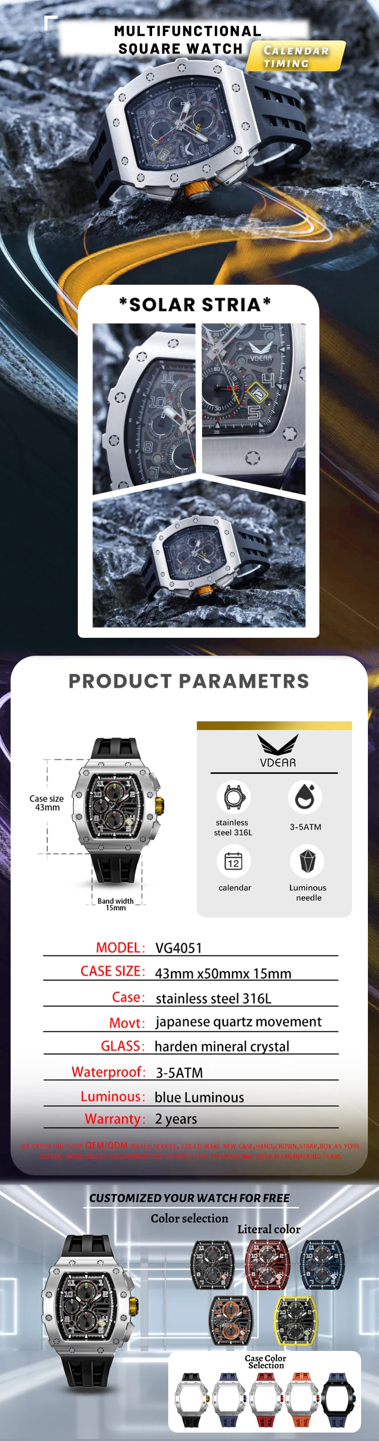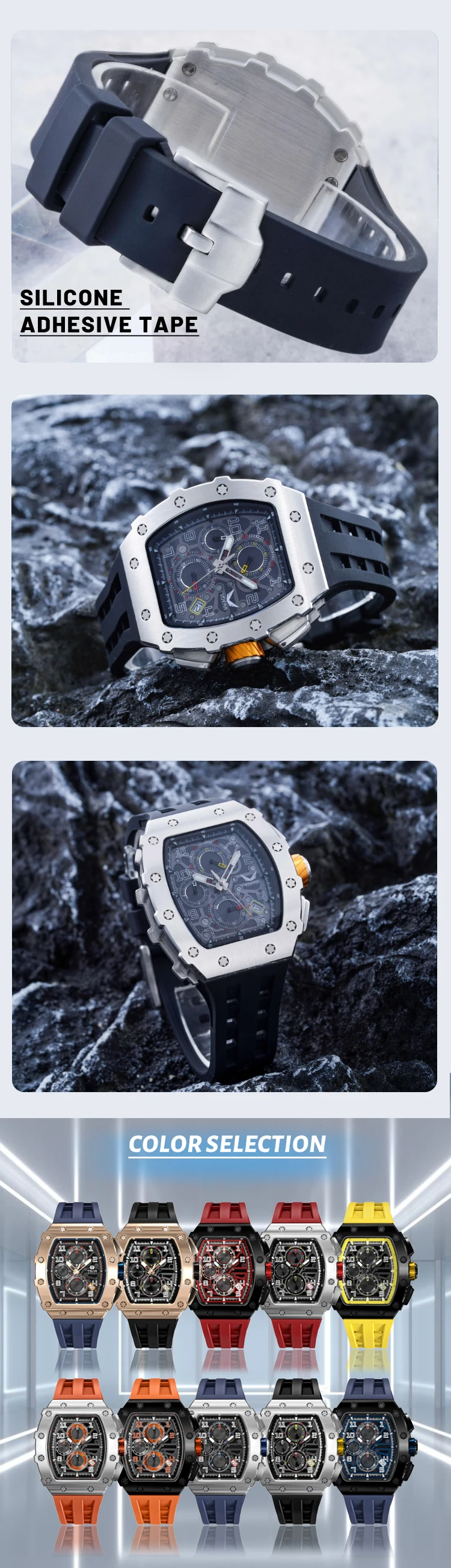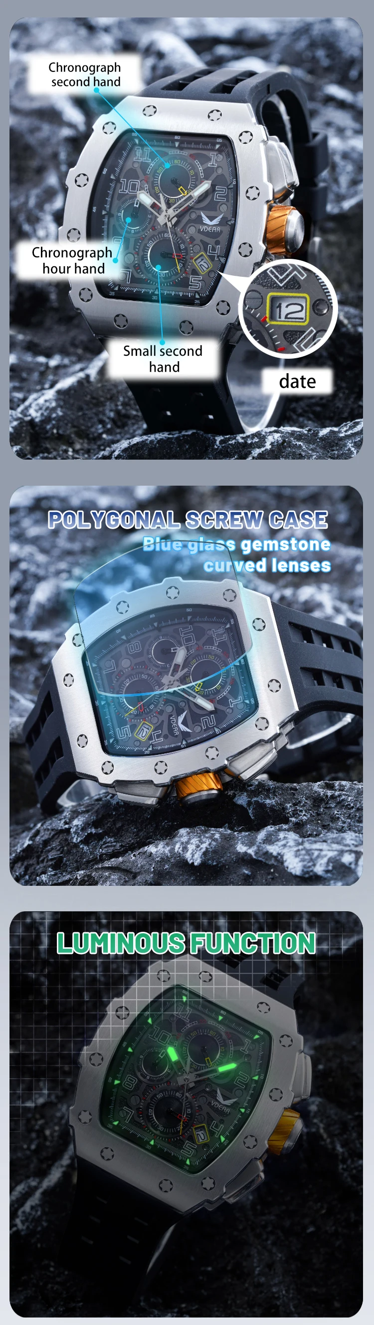Wholesale Male Quartz Luxury Chronograph Wristwatches With Luminous Reloj Personalizado Silicone Watch Strap Black Man Watches