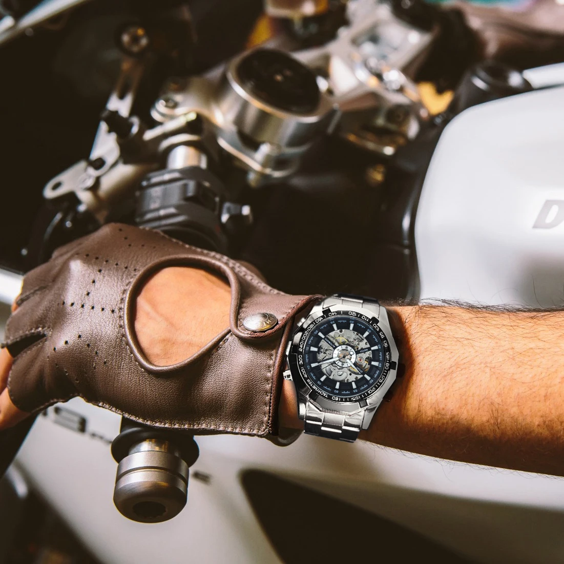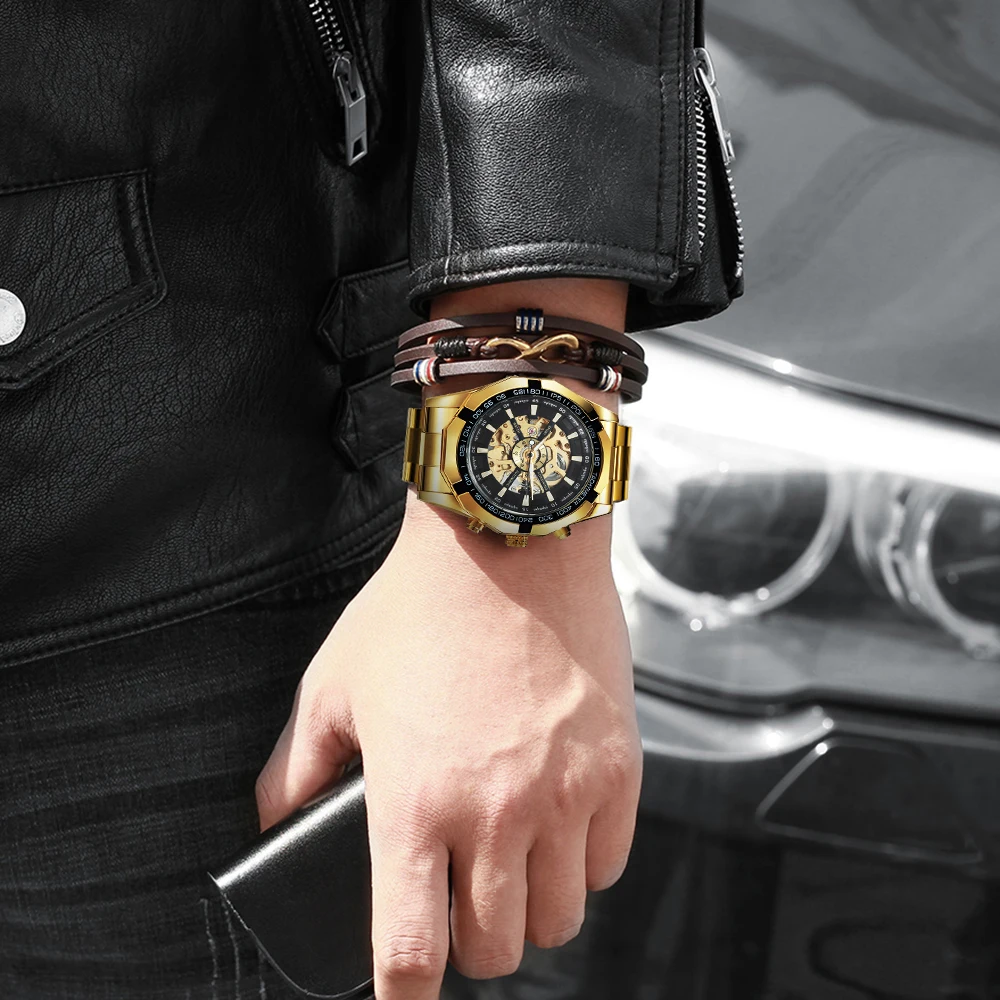 WINNER Classic Skeleton Automatic Watch for Men Luminous Hands Luxury Stainless Steel Strap Gold Mechanical Watches Forsining