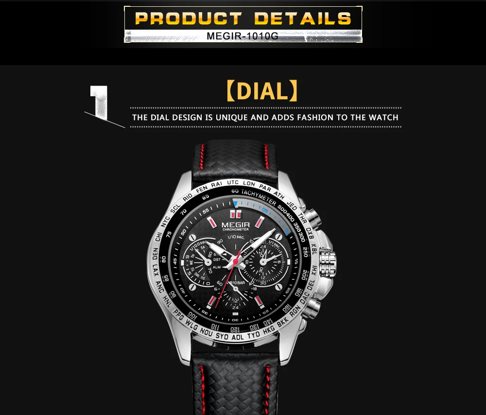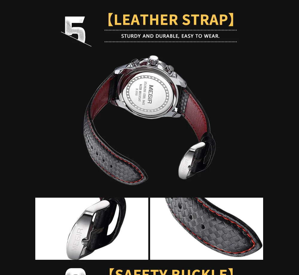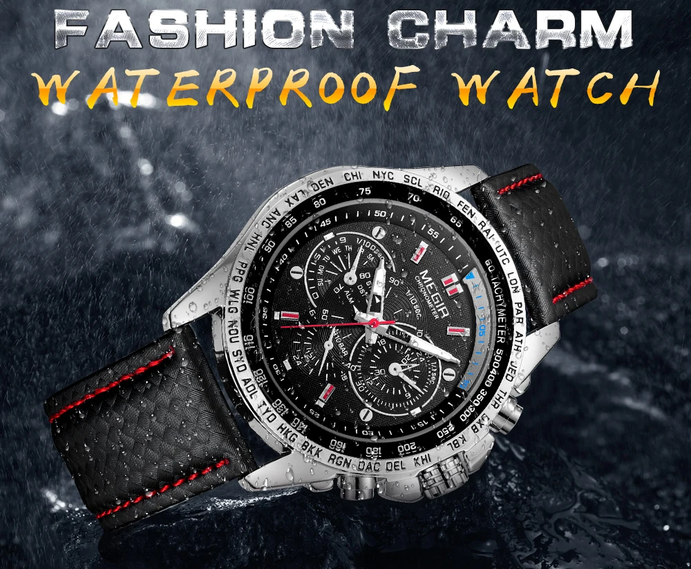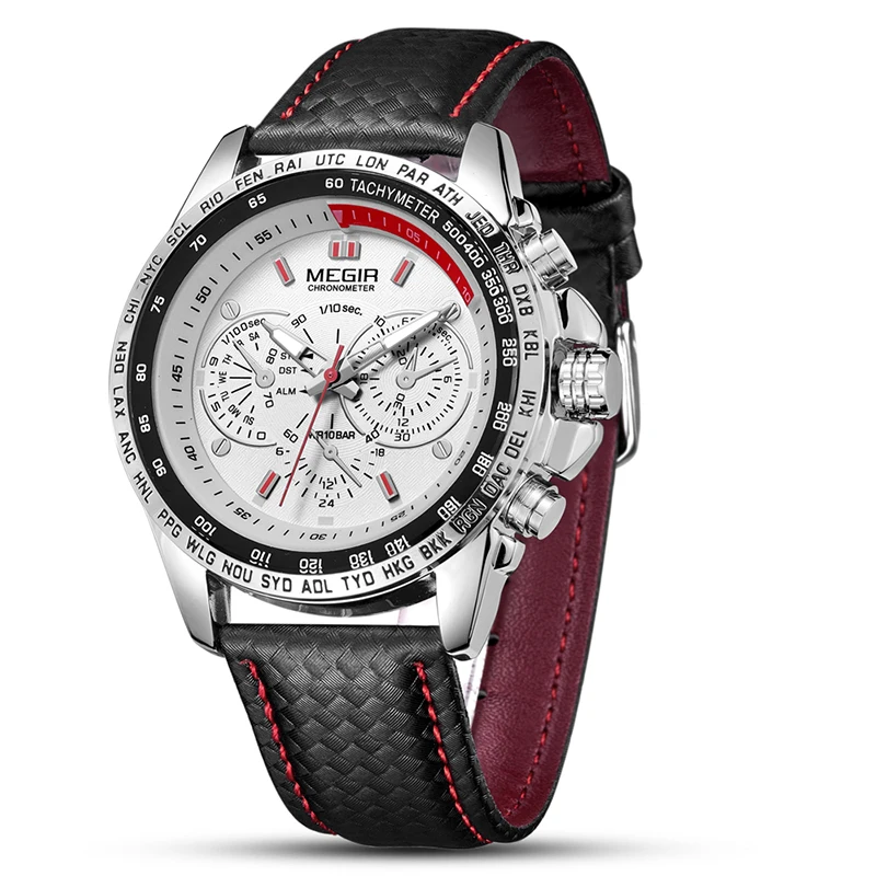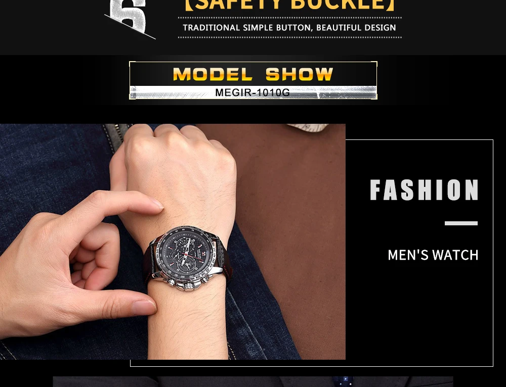 Wrist Watch Supplier Megir 1010 Men Analog Quartz Wristwatch Elegance Watches Genuine Leather Strap Men Timepiece OEM
