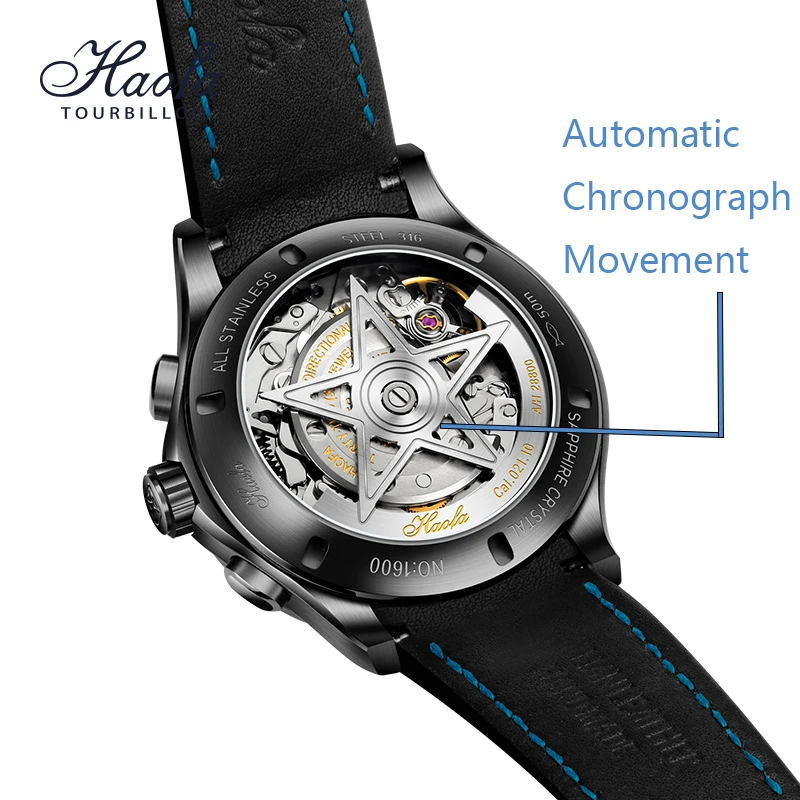 Haofa Automatic Chronograph Watches for Men Sapphire Bule Pilot Mechanical Watch 40mm Sport Man Wristwatches montre homme 1600