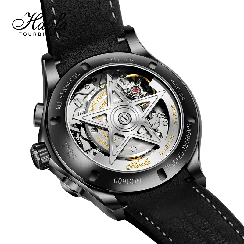 Haofa Men's Luxury Skeleton Automatic Chronograph Movement Watch Men Mechanical Sapphire Pilot 40mm Mens Watches orologio uomo