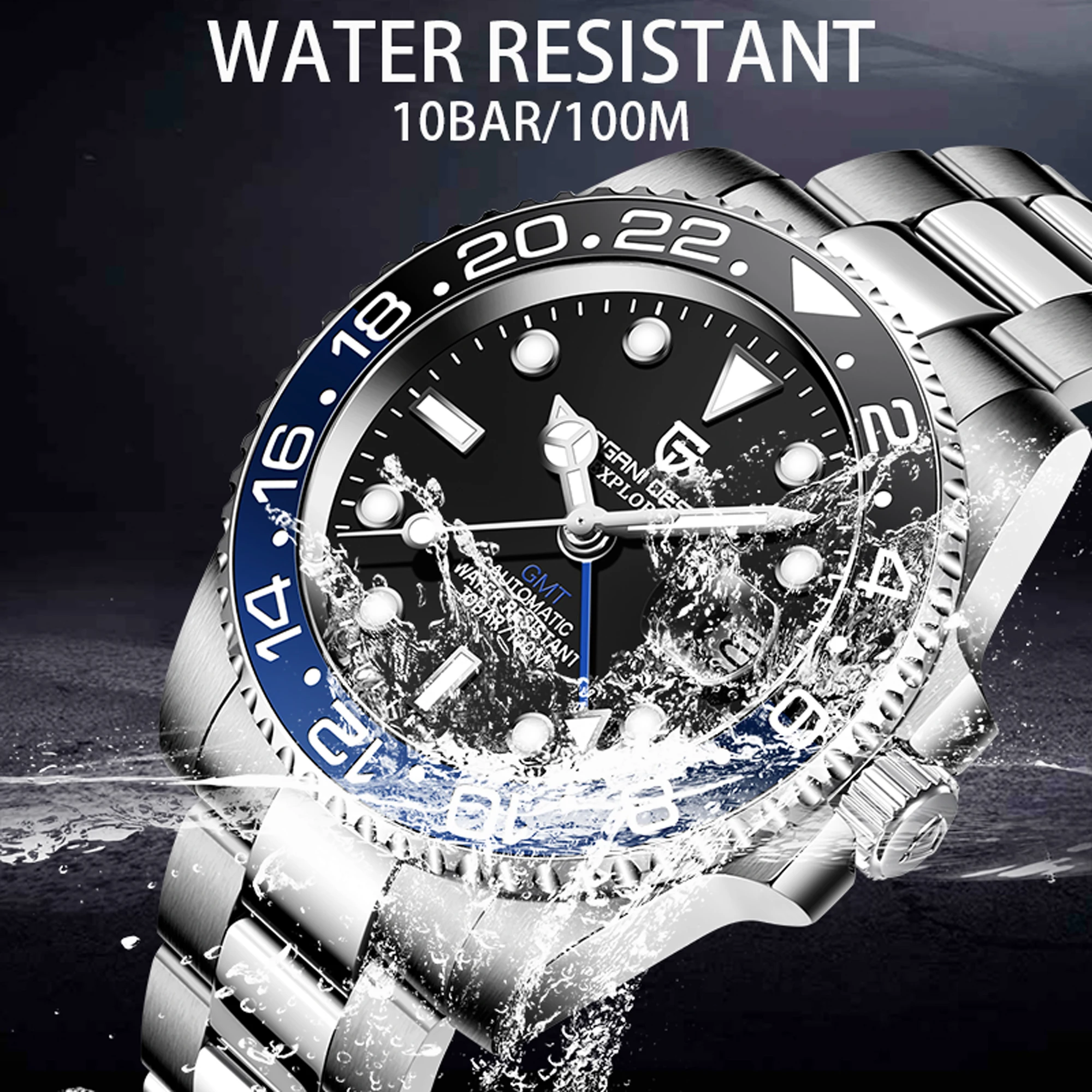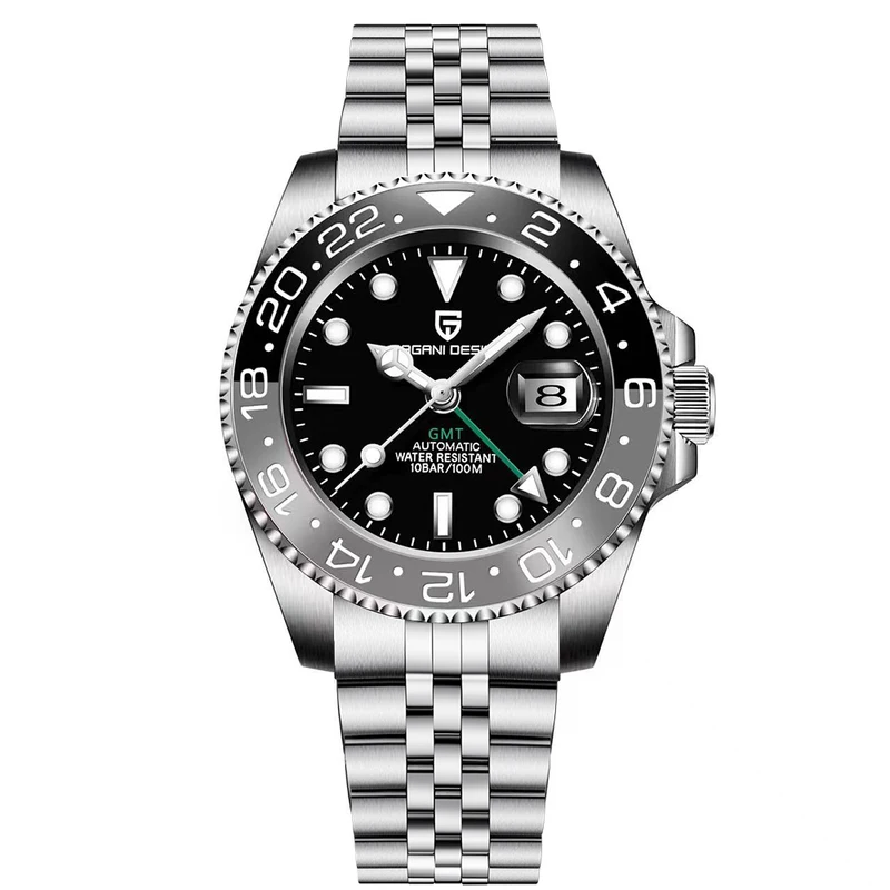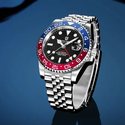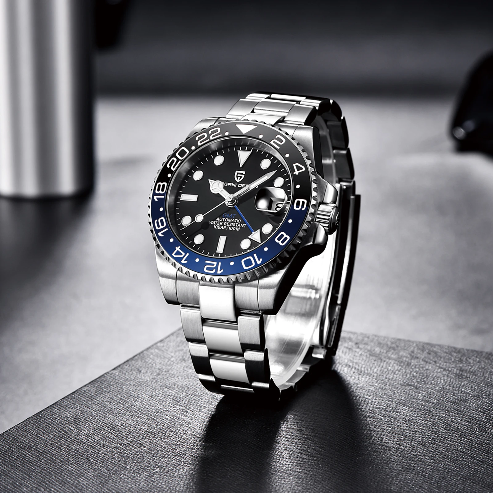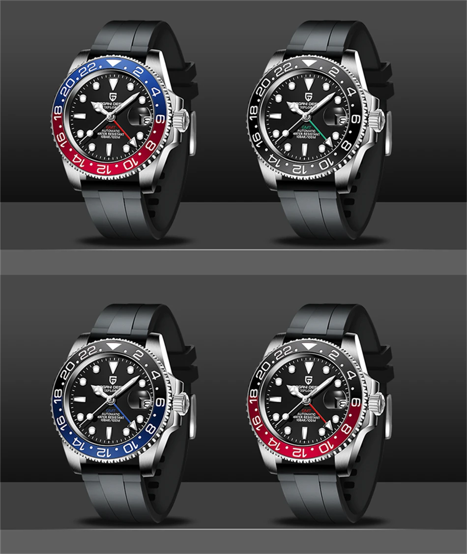 You can quickly view calendar dates and times without buttons or menus. This elegant timepiece is equipped with high-quality Pearl DG5833GMT mechanical movement, which complements fashion, sportswear and casual wear.