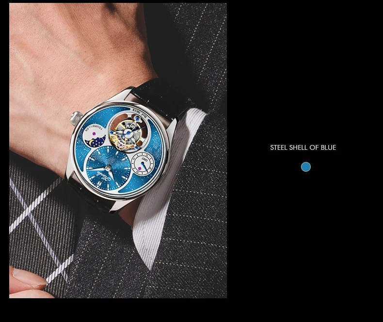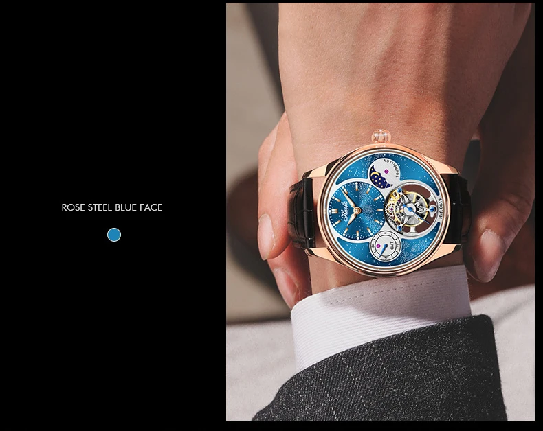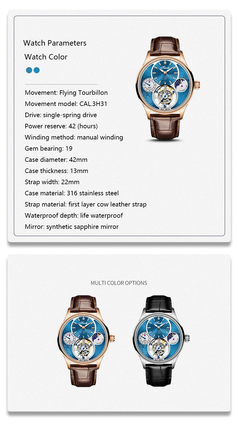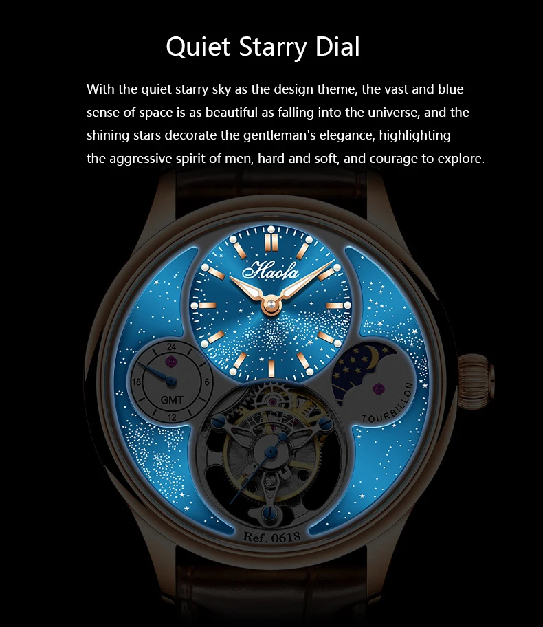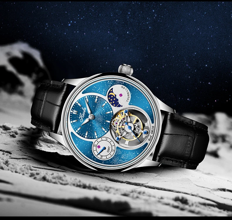 Haofa Luxury Skeleton Tourbillon Sapphire Watch for Men Manual Mechanical GMT Moonphase Wristwatches Casual Business 0618