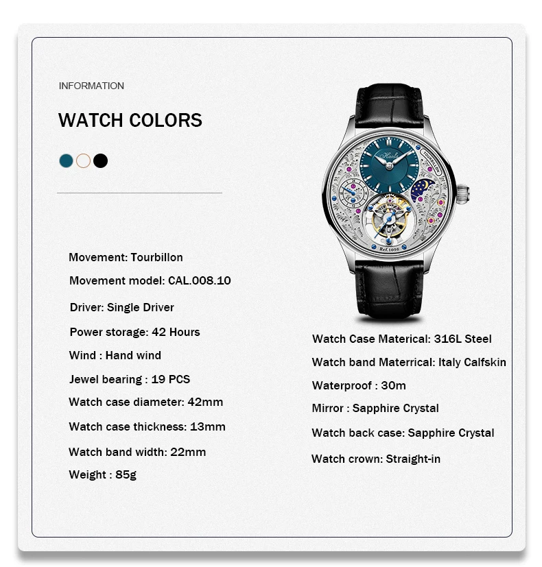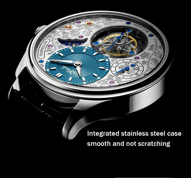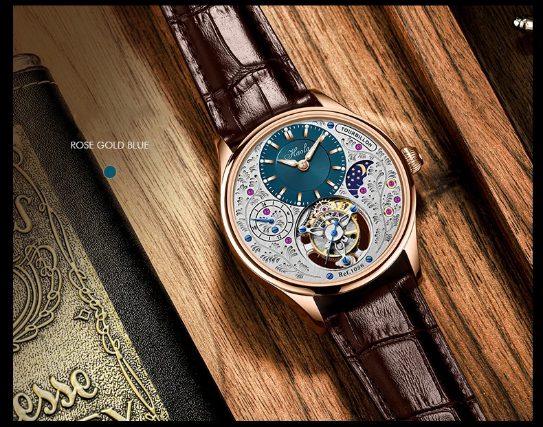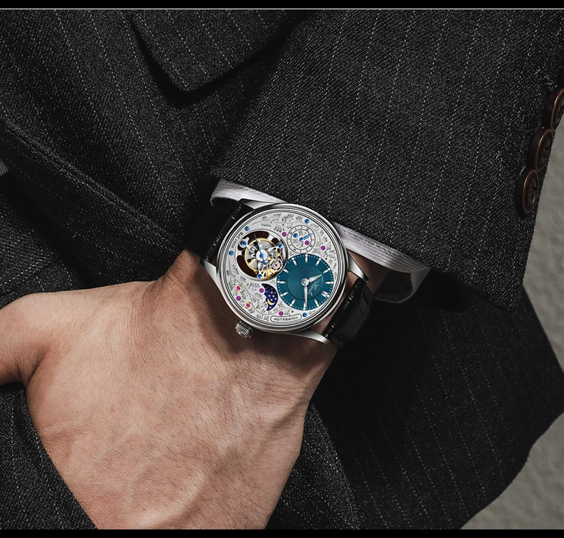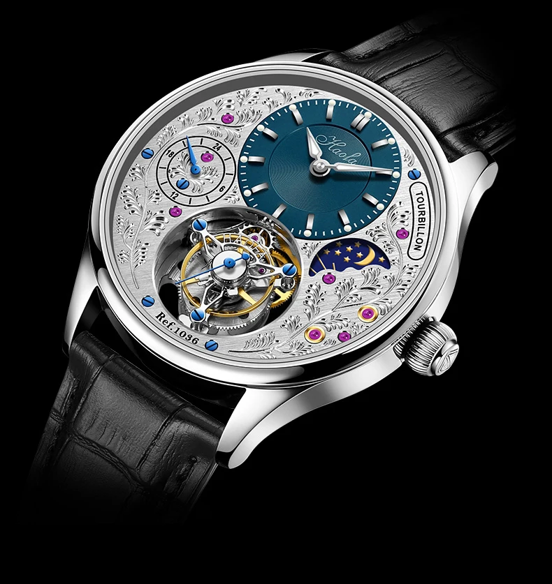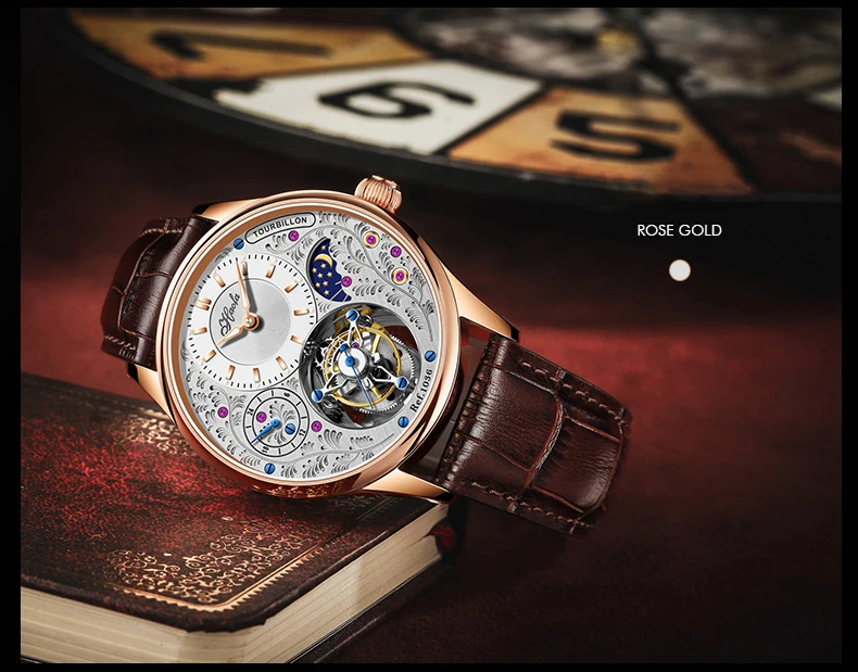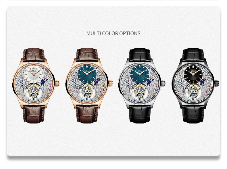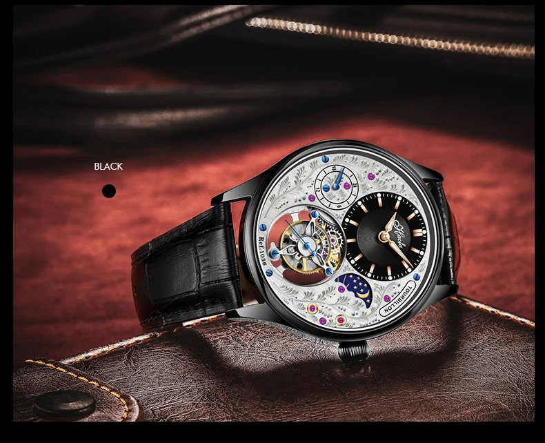 Haofa Manual Skeleton GMT Tourbillon Movement Watch for Men Rotating Sapphire Mechanical Watches Mens Day And Night Casual 1036