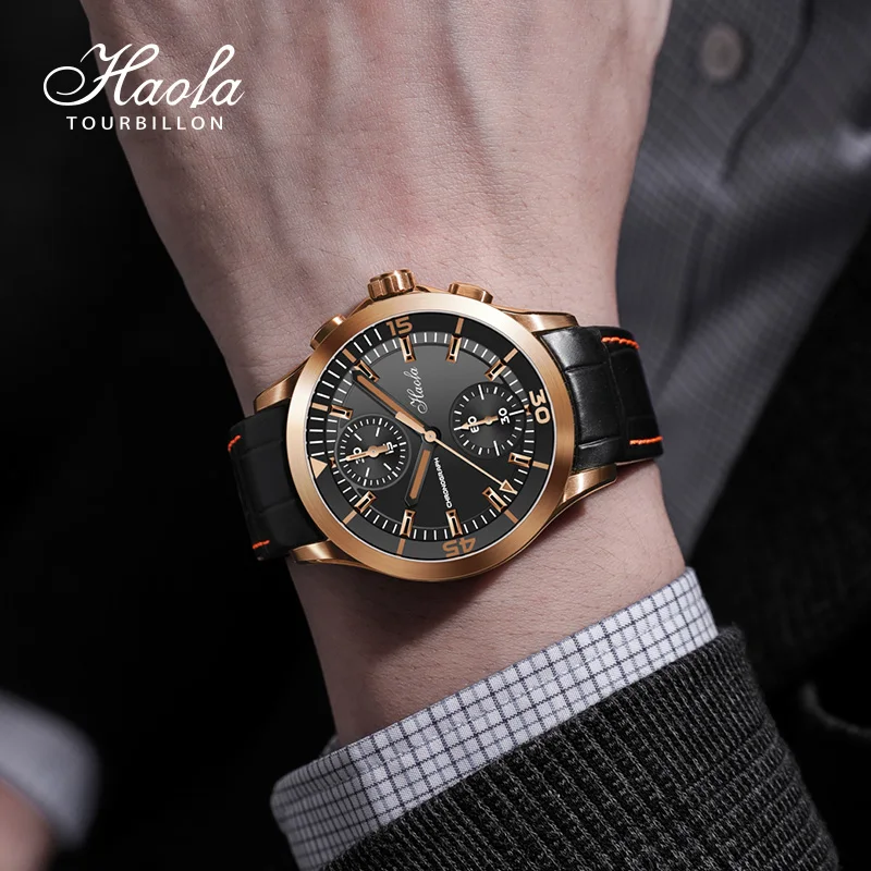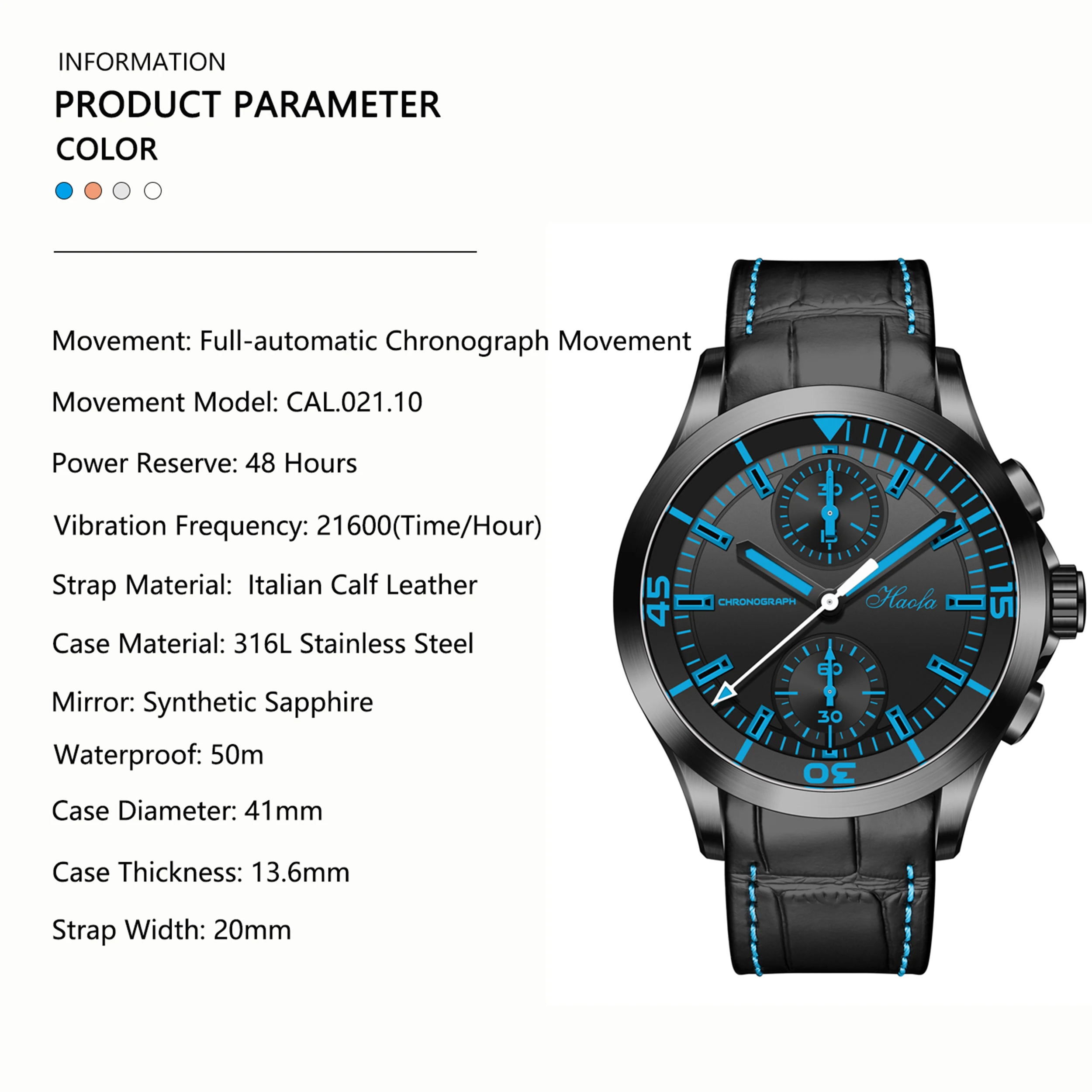 Haofa Men's Luxury Skeleton Automatic Chronograph Movement Watch Men Mechanical Sapphire Pilot 40mm Mens Watches orologio uomo