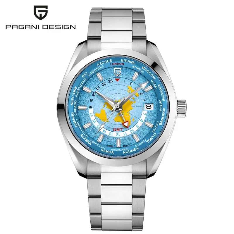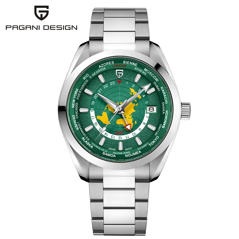 PAGANI DESIGN 2024 New World time GMT Men's Watches Luxury Automatic Watch Men Japan NH34A Mechanical Wristwatch Men